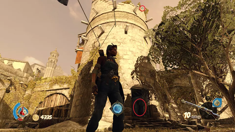 瓮(1/4) 圣物(1/6) 在城市中巨大的双扇门左侧有一座塔,塔内有一个谜题,塔顶则有一个瓮。