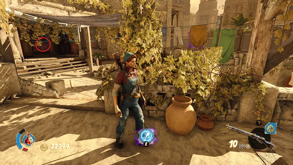 陶罐(1/4) 在第一个定居点(我会这样称呼类似的地方),你需要找到圣甲虫钥匙。穿过这个定居点,你会发现游戏中的第一个带有旋转刀片的陷阱,陷阱上方就是陶罐。