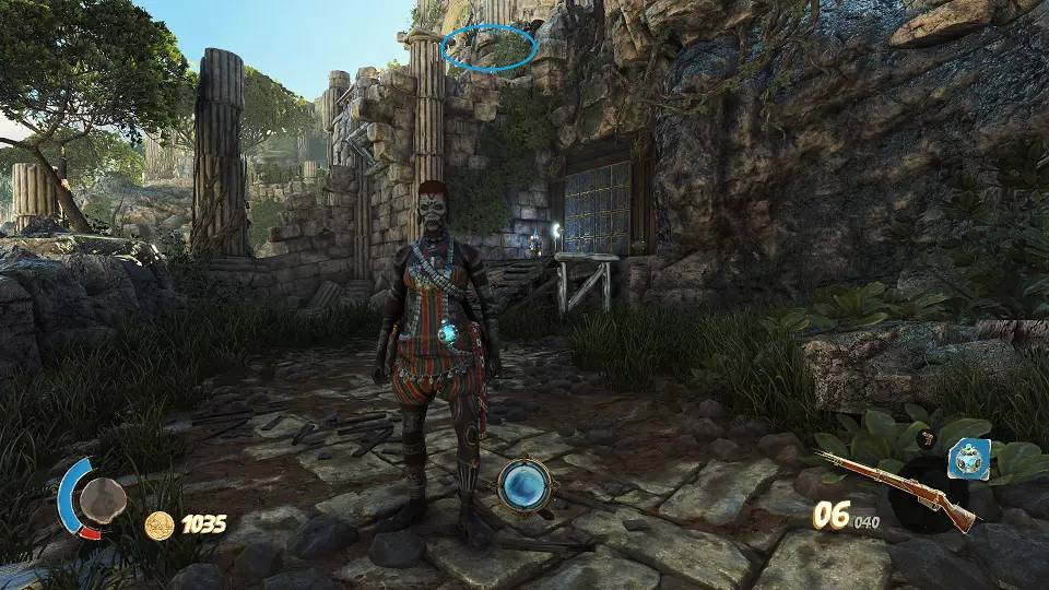 猫咪雕像(3/6) 击败海盗头目后,穿过大门,猫咪就会出现在你头顶。