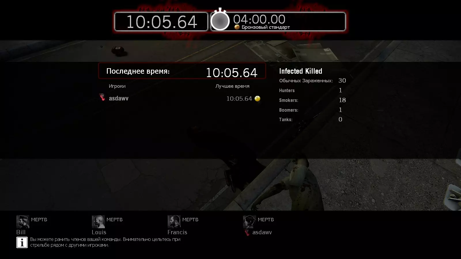 有时候你可能想加快获取金牌的进度,但并不总能找到能坚持10分钟的队伍。本指南包含10个可以单人获得金牌的地点,而且只需要你付出最少的努力。 毫不留情 【医院】 首先需要打破通往通风井的门。拿起管道炸弹,等待敌人出现,把管道炸弹扔到桌子底下,然后立刻站上去开始疯狂跳跃。需要以最快速度按键,或者更简单的方法是在设置里将跳跃功能绑定到鼠标滚轮上。 当10分钟过去后,要离开电梯门,等着吸烟者(Smoker)愿意过来“好心”地把你掐死。