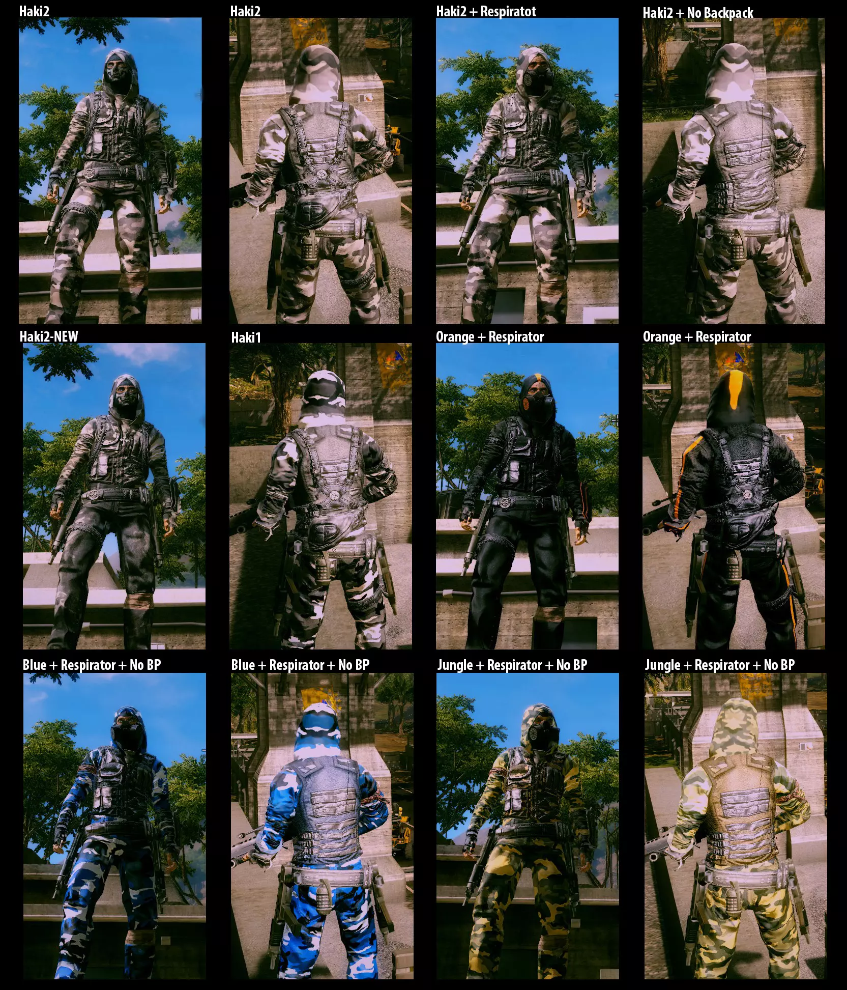 皮肤文件在“Orange”文件夹中,即HST皮肤,其他皮肤是我基于其他模组制作的。在HST皮肤中,我还将连指手套改成了露指手套。 安装方法:将以下内容复制到“dropzone”文件夹中: - +Basic(包含皮肤的基本元素); - 从以下任一文件夹中选择:Orange、Haki1、Haki2、Haki1-NEW(其他裤子)、Haki2-NEW(其他裤子)或Post-Apocalyptic-v1。0、复制所需的【Base】; - 若希望游戏中不显示降落伞背带,请从对应选择的【No Backpack】文件夹中移动纹理文件; - 若希望游戏中显示防毒面具,请从对应选择的【Respirator】文件夹中复制文件。 可通过鼠标中键点击图片以查看更清晰的细节。如果你已购买【正当防卫2:黑市空中包】DLC,你可以下载此模组并替换文件夹中的文件。它不仅能将标准降落伞变为混乱降落伞,还会为其添加火箭发动机。 模组作者表示自己是模组制作爱好者,通过反复试验制作了该模组,因此部分玩家可能会遇到问题(例如降落伞可能会变得不可见)。如果发生这种情况,请将“parachuteparams.bin”文件替换回“JC2ModPack”压缩包中的原始文件,或者将其完全删除。 实用程序