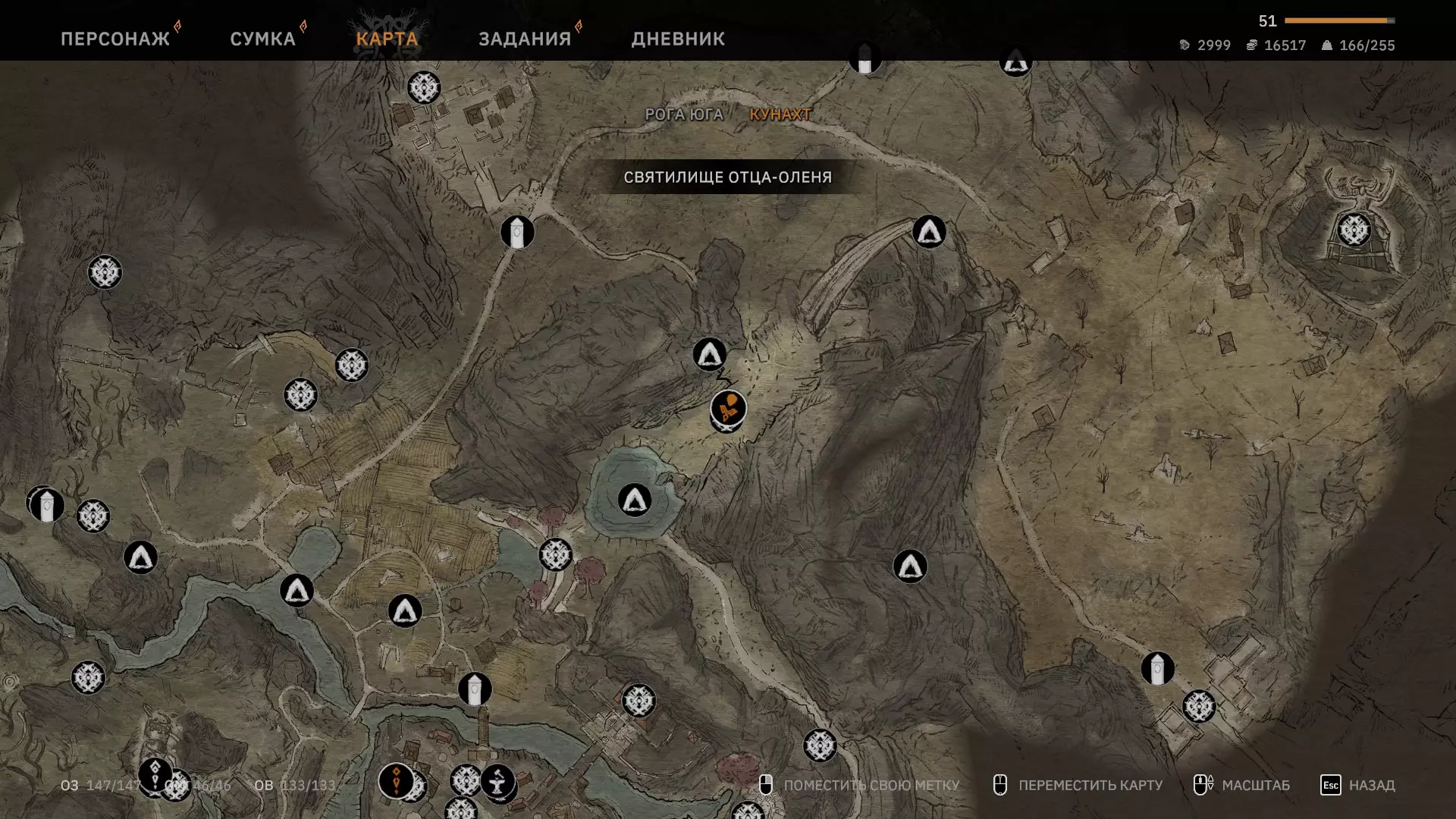 荒野朝圣者 - 拜访所有保存有鹿父存在的圣地。总共有9个,每幕3个。记得使用祭坛并击杀鹿之母。第一个圣地
