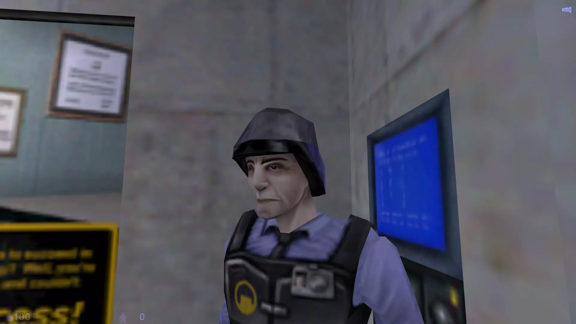 如何在《半条命:蓝色沸点》中造成软锁!不确定你为什么要这么做……但还是继续这个指南吧! 操作方法: 游戏开始时,当你走出电车,会有一个巴尼让你进入一个小房间。现在那里有一扇玻璃门,巴尼会走过去打开它。我们需要阻止这一行为来造成软锁。要阻止巴尼,你需要蹲跳至玻璃门右侧的小边缘上,就像这样。