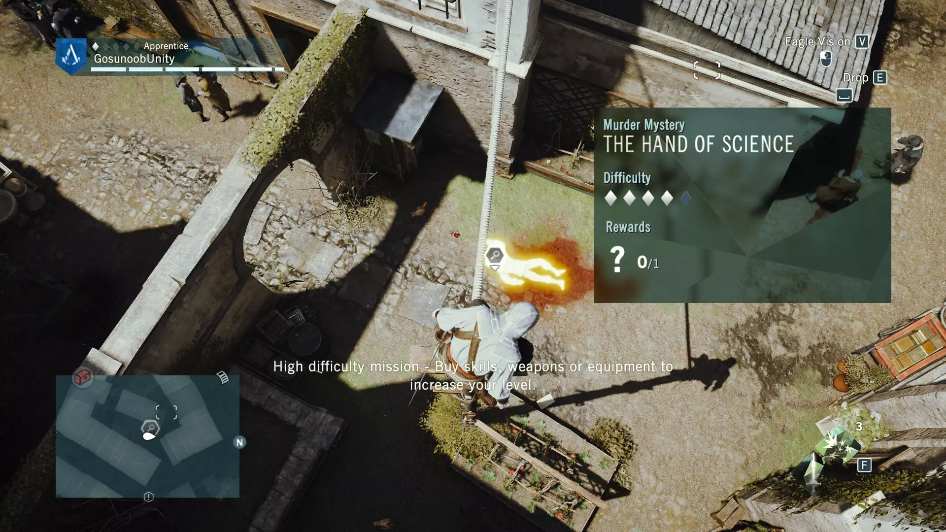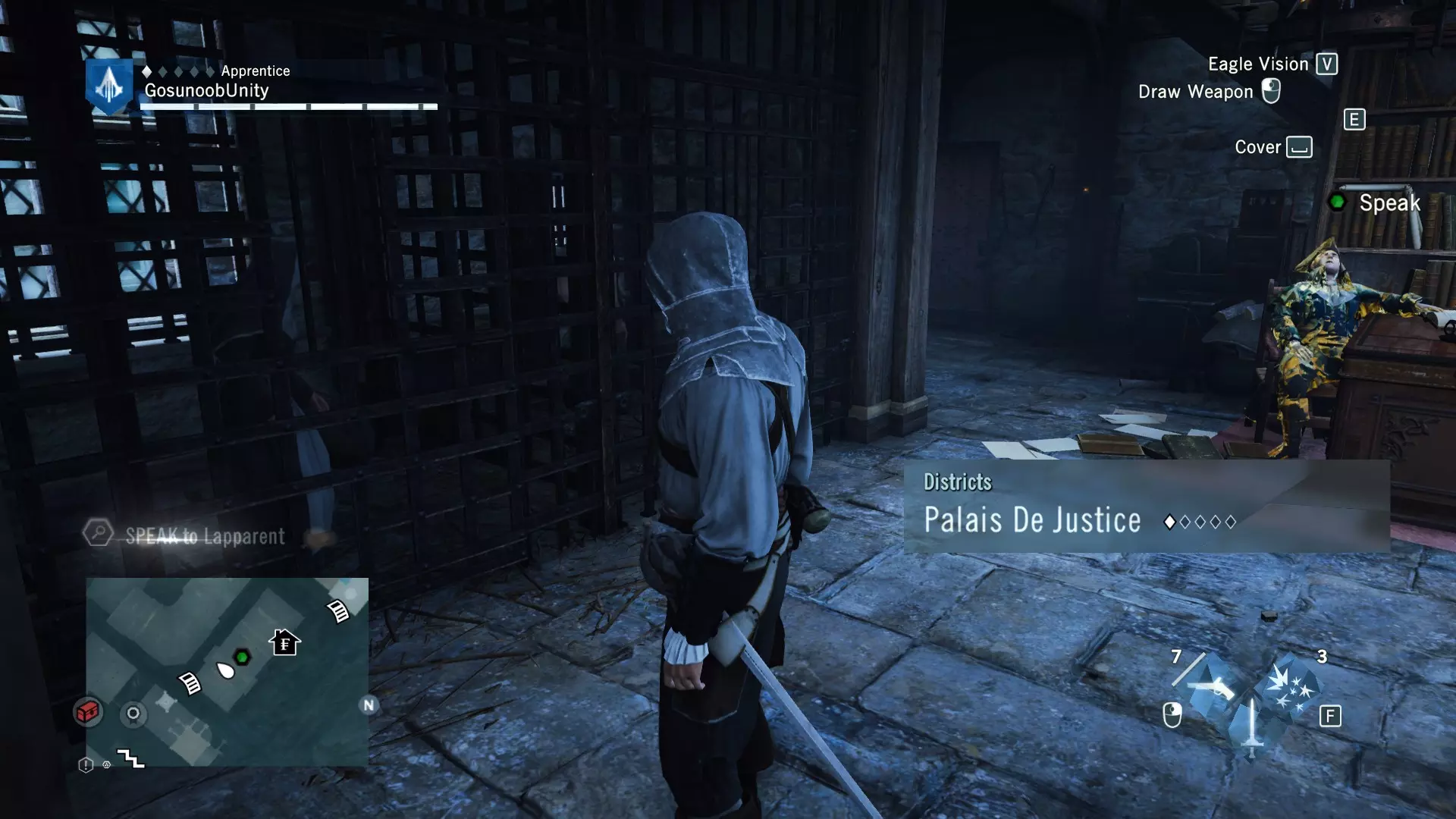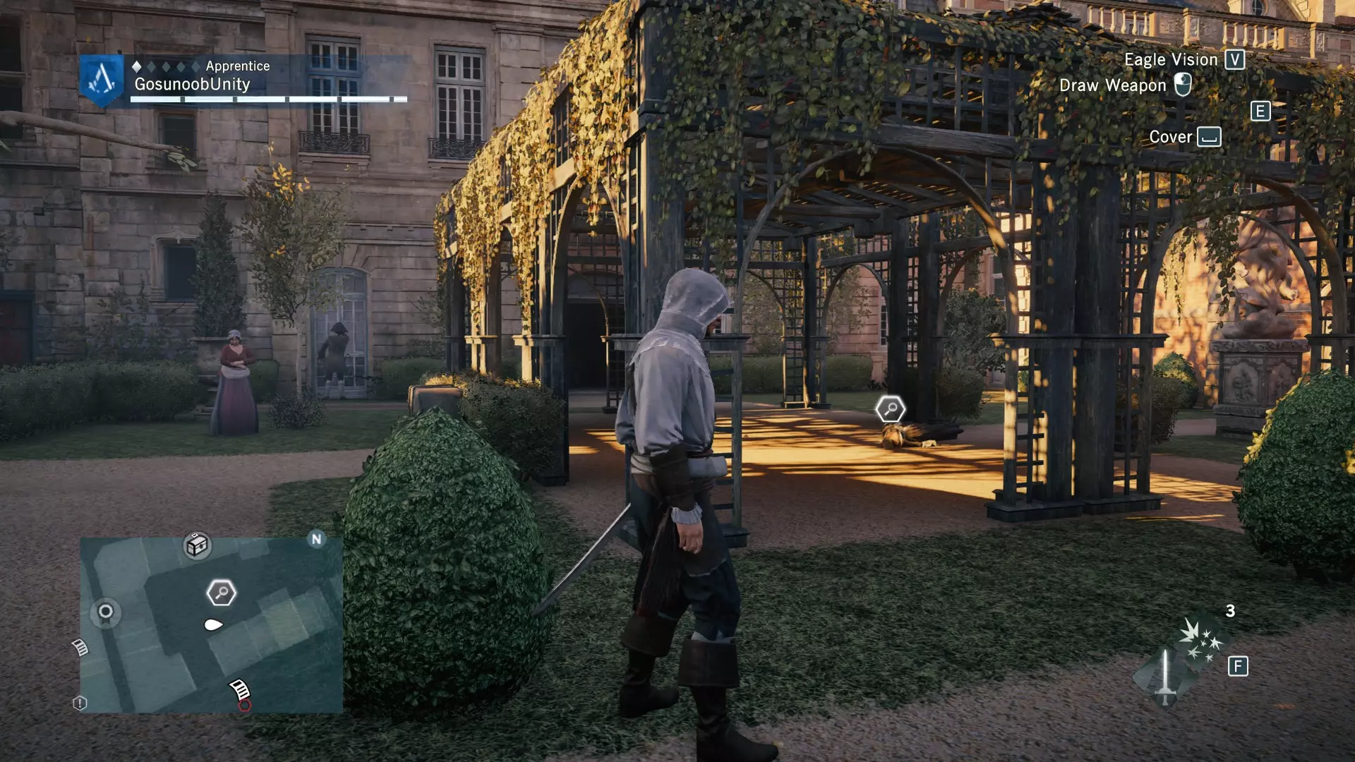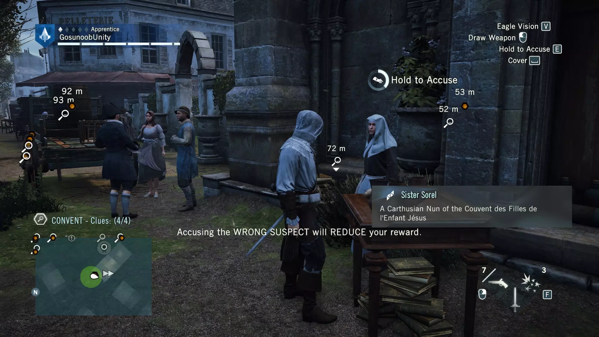 我还包含了法兰西亚德的谋杀案,数量不多,但由于该DLC已包含在主游戏中,所以我也将其收录进来,你得好好利用这一点。 Blind Justice ⧫◊◊◊◊ ⚰️ 神秘事件从哪里开始?事件发生在法兰西亚德北部的墓地区。完成序列13记忆3【过去的阴影】后,它会显示在地图上。这是《刺客信条:大革命》中最简单的谋杀之谜,因此难度等级为1/5。这也是为什么该谋杀之谜只奖励2500里弗尔,且没有装备奖励。相当令人失望且枯燥。