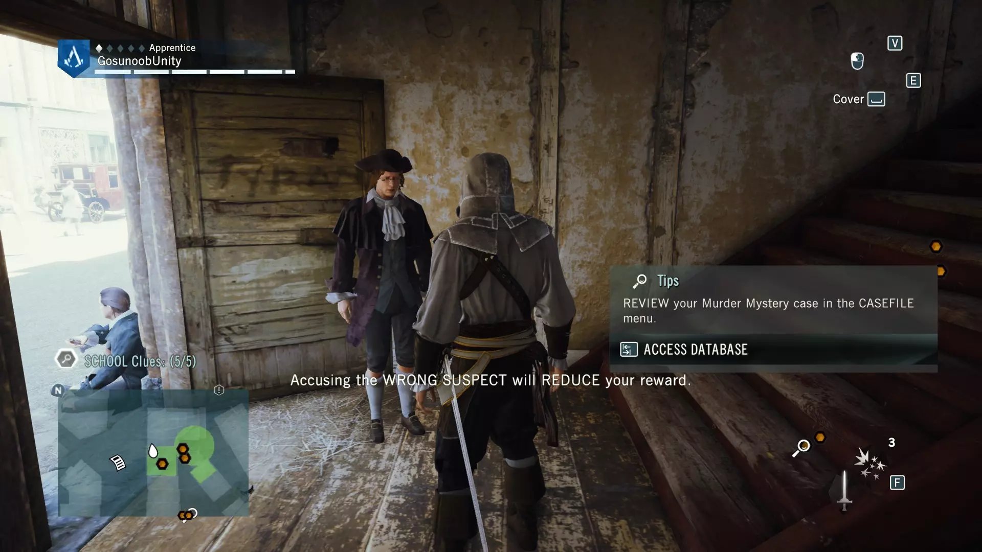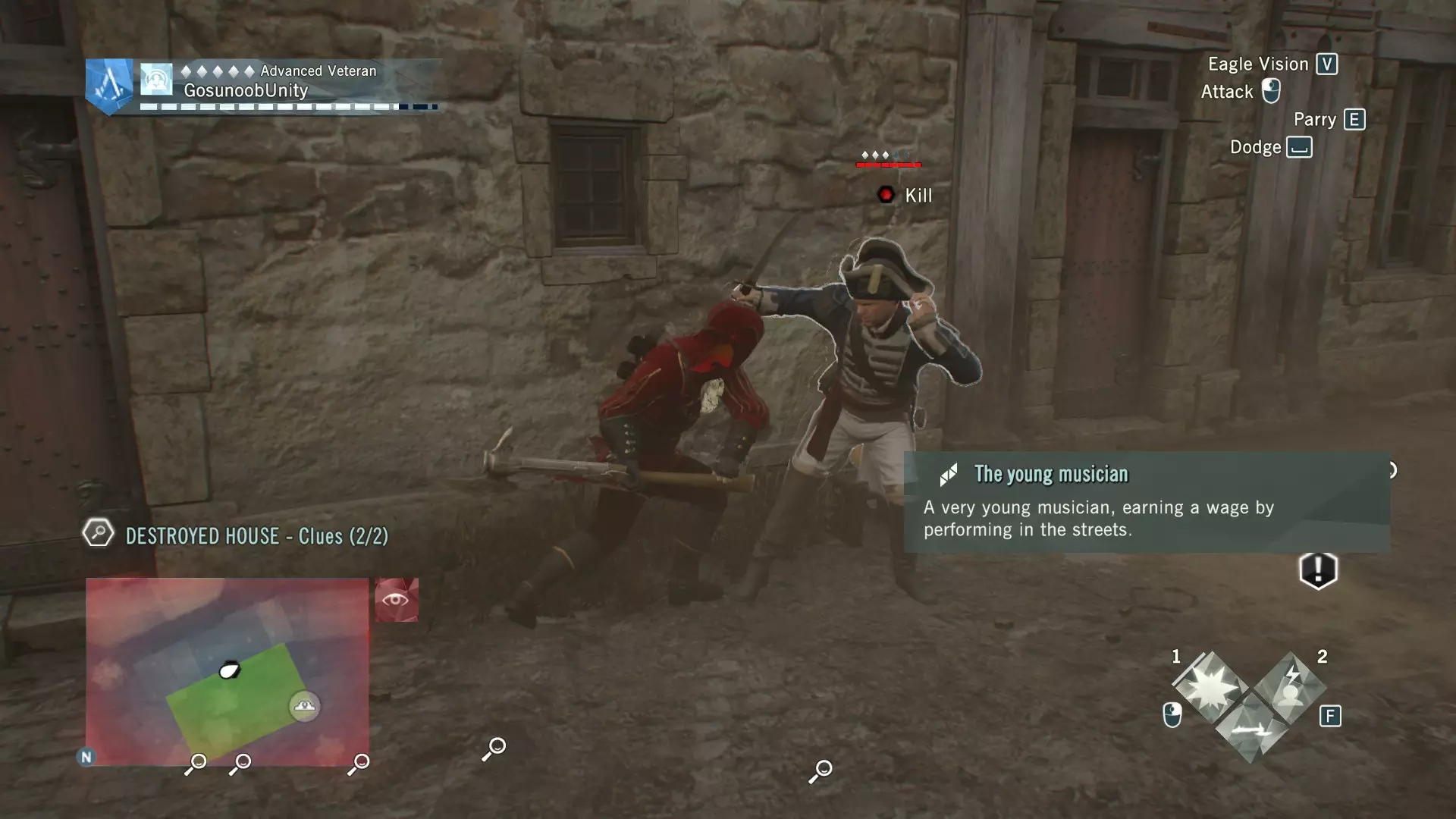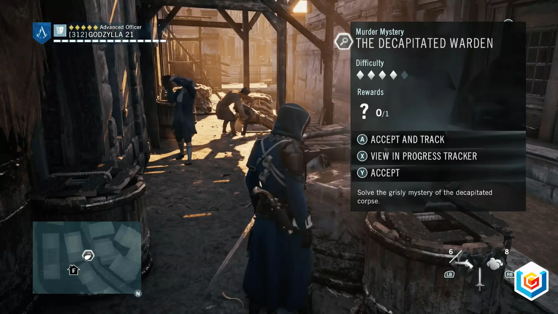 【开启谋杀之谜的尸体】 谁是凶手?是在市场发现的年轻乐师。一旦指控他,他就会变得敌对,你需要击败他。完成谋杀之谜后,你还将获得【女兵】数据库条目。其中讲述了革命时期妇女权利的一段不错的故事。