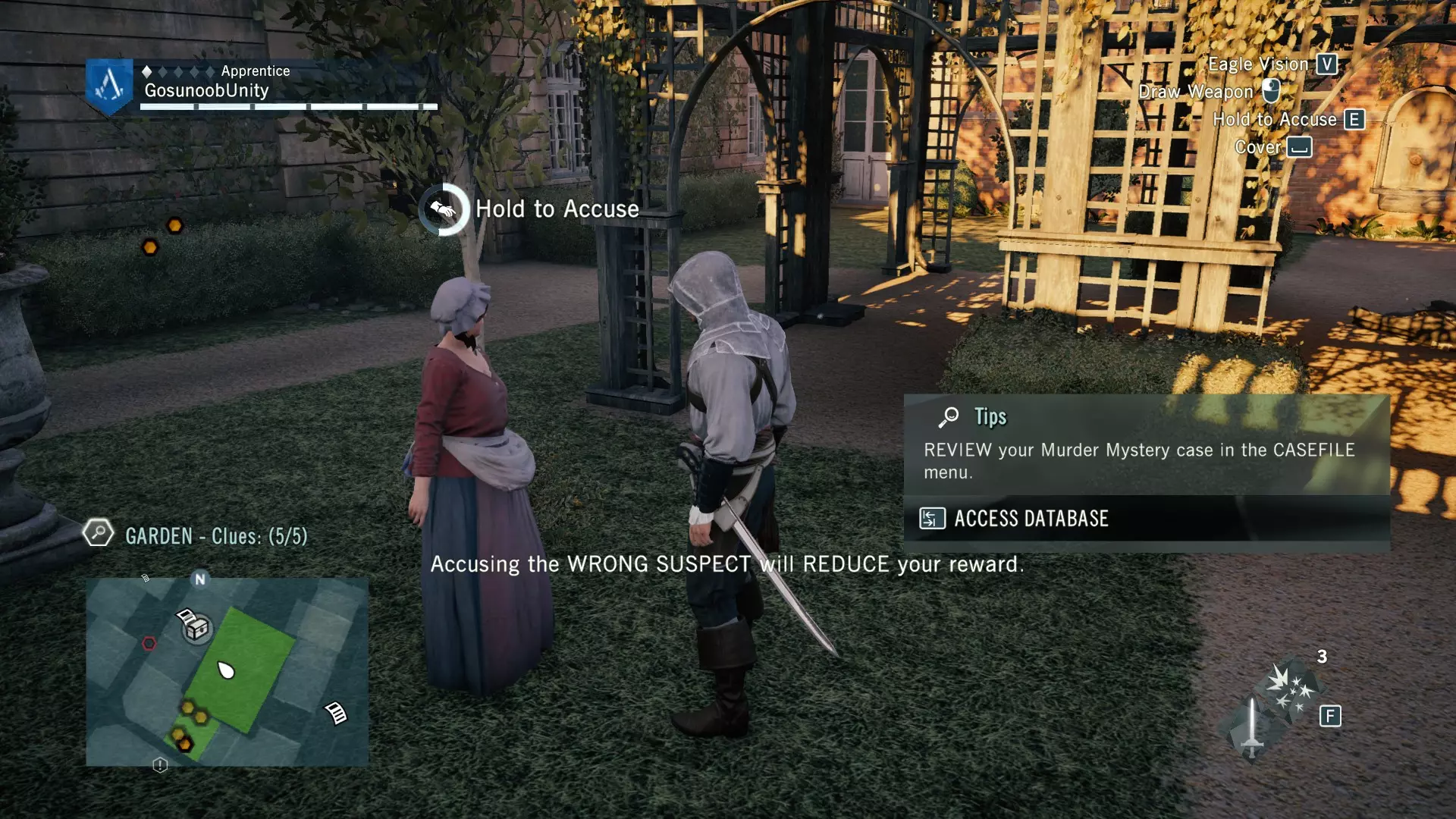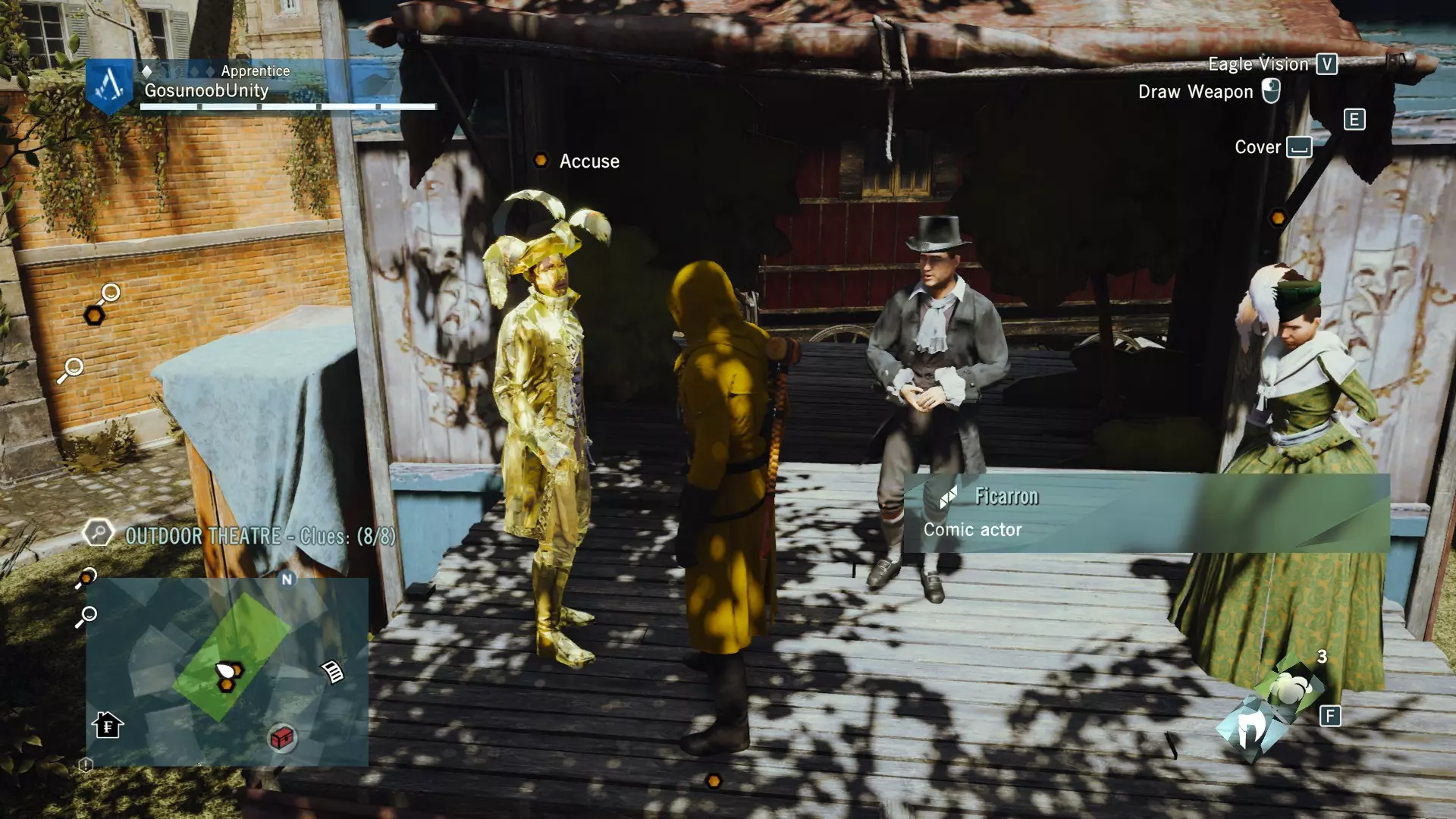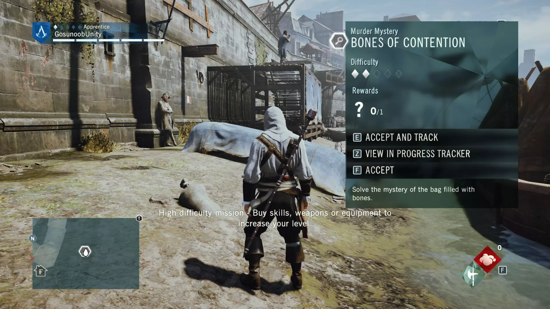 【开启谋杀之谜的尸体】 谁是凶手?是在市场发现的年轻乐师。一旦指控他,他就会变得敌对,你需要击败他。完成谋杀之谜后,你还将获得【女兵】数据库条目。其中讲述了革命时期妇女权利的一段不错的故事。