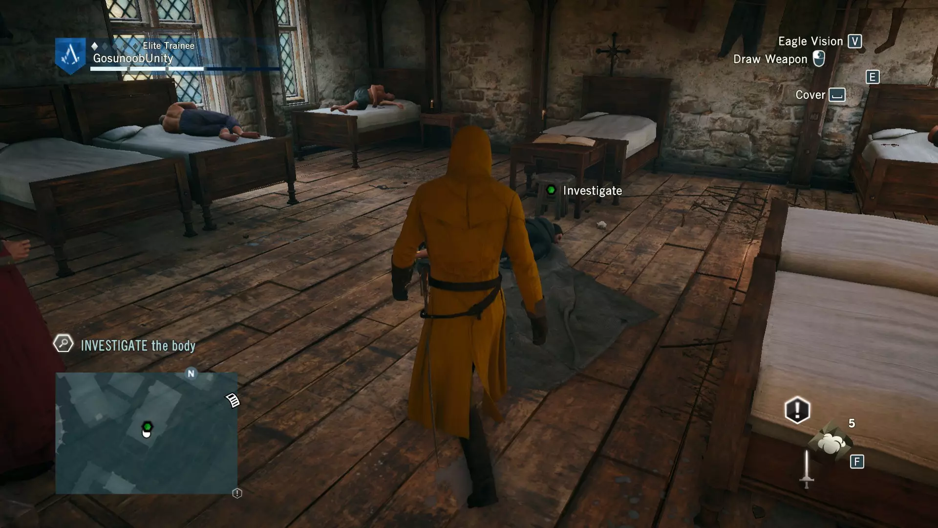 调查尸体:你需要调查的尸体位于巴黎市中心的西岱岛区,在一个小型修道院院落内,具体在修道院建筑的一楼。