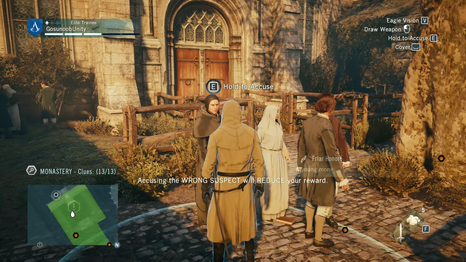 ❓谁是凶手?收集到所有线索后,返回至修士奥诺雷处指控他为凶手。