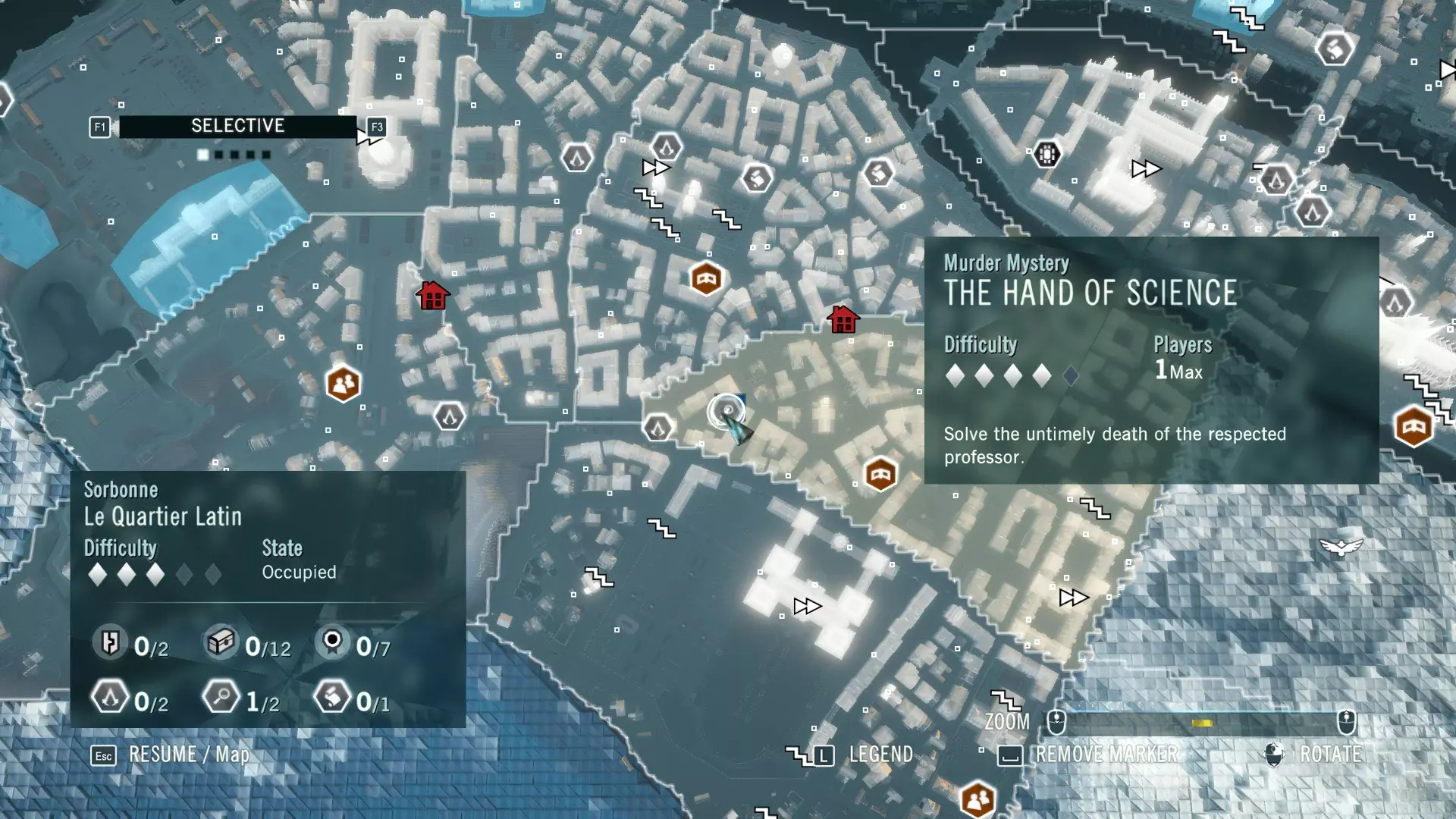 谋杀之谜是游戏中的众多支线活动之一,但与其他许多活动不同的是,这些活动不会仅通过同步鸟瞰点就显示在地图上。教学关卡【谋杀预言】位于地图中心、巴黎圣母院附近,它会显示在你的地图上,但其他谋杀之谜活动则不会,这正是本指南的制作原因。