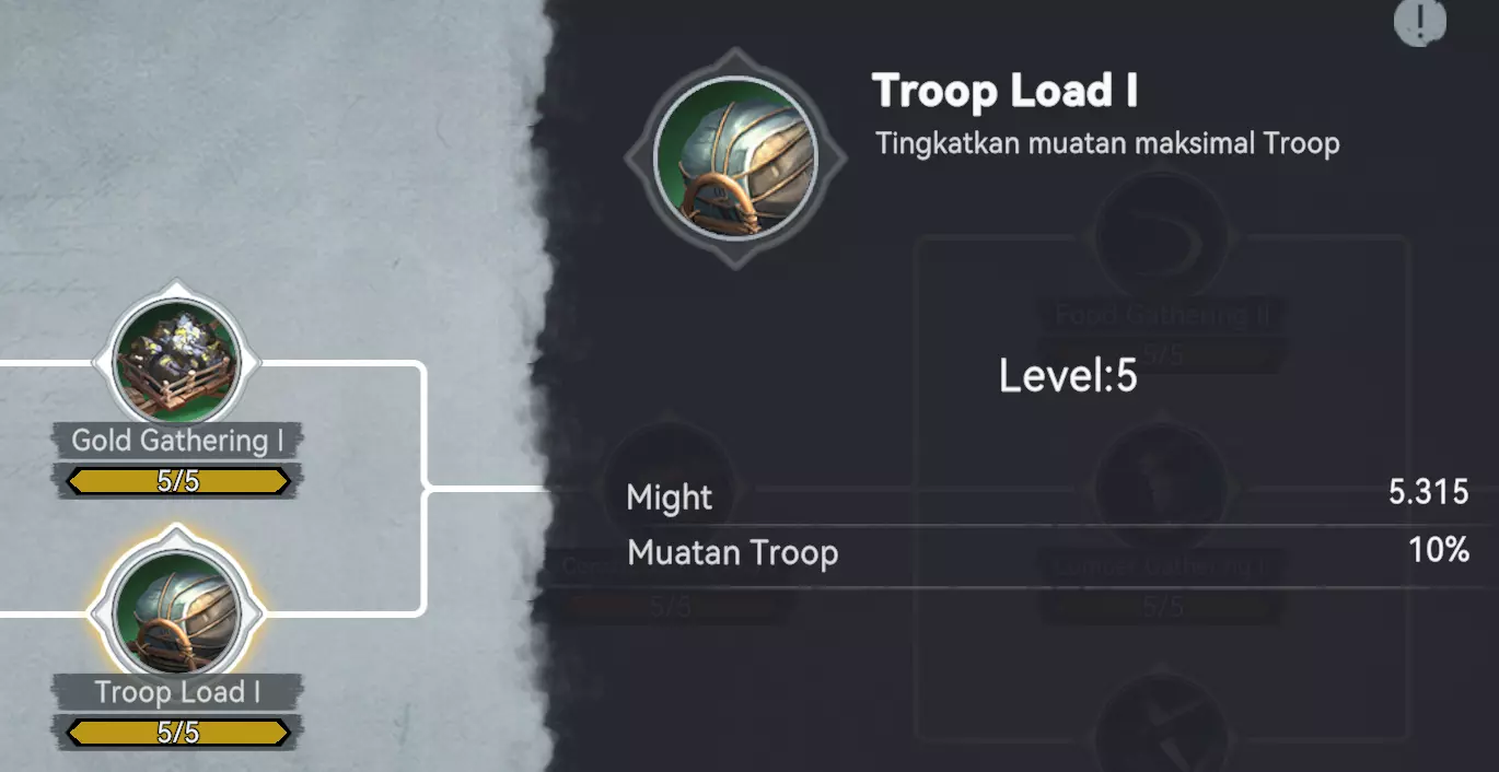 5. 重要事项 在部落领地内采集 务必在部落领地内进行采集。 在领地内采集可使采集速度提升至少25%,并且资源会存入部落仓库(例如用于建造旗帜)。 部落资源中心 每个部落可建造一种资源中心(部落农场/部落锯木厂/部落采石场/部落金矿)。 部落资源中心是100%安全的(不会受到攻击)。 提及这点是因为在某些王国的维京统治活动第六阶段——掠夺者盛宴期间,存在只能攻击其他采集者的规则(不同王国规则可能不同)。 此外,在王国对战(KVK)期间,你可以在此安心采集。 不要做令人反感的人 完成你正在采集的资源点。如果你让一个未完成的节点处于未处理状态,会阻止其他节点刷新。此外,这对其他玩家来说非常令人不快。因此,请确保你的部队携带足够的兵力来完全攻占该节点。如果兵力不足,请务必再次派遣部队去获取剩余资源。如果你需要暂时离开,在召回部队之前,请务必为该节点添加书签,这样你就不会找不到它了。如果你无法在一次进攻中攻占高等级节点,最好还是寻找低等级节点。或者,你也可以提升英雄等级来增加部队的携带量。