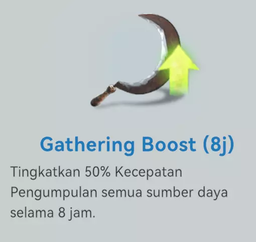 4. 增益效果类 物品增益:始终保持采集效率提升50%的增益效果。完成每日任务后,很容易找到该物品。 该物品位于你的【背包】>【增益】中,寻找【采集加成】,分为8小时增益或24小时增益(只能使用1个,不可叠加)。