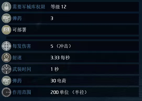 单次总伤:1(+0.3) 单发威力:每1点伤害加成技能提供0.3的额外伤害 装弹速度:每1点换弹速度加成技能减少0.3的装弹时间 电弧效果:武器命中敌人必定造成硬直,电弧会溅射到附近的虫子 额外效果:该武器不会对友方造成伤害
