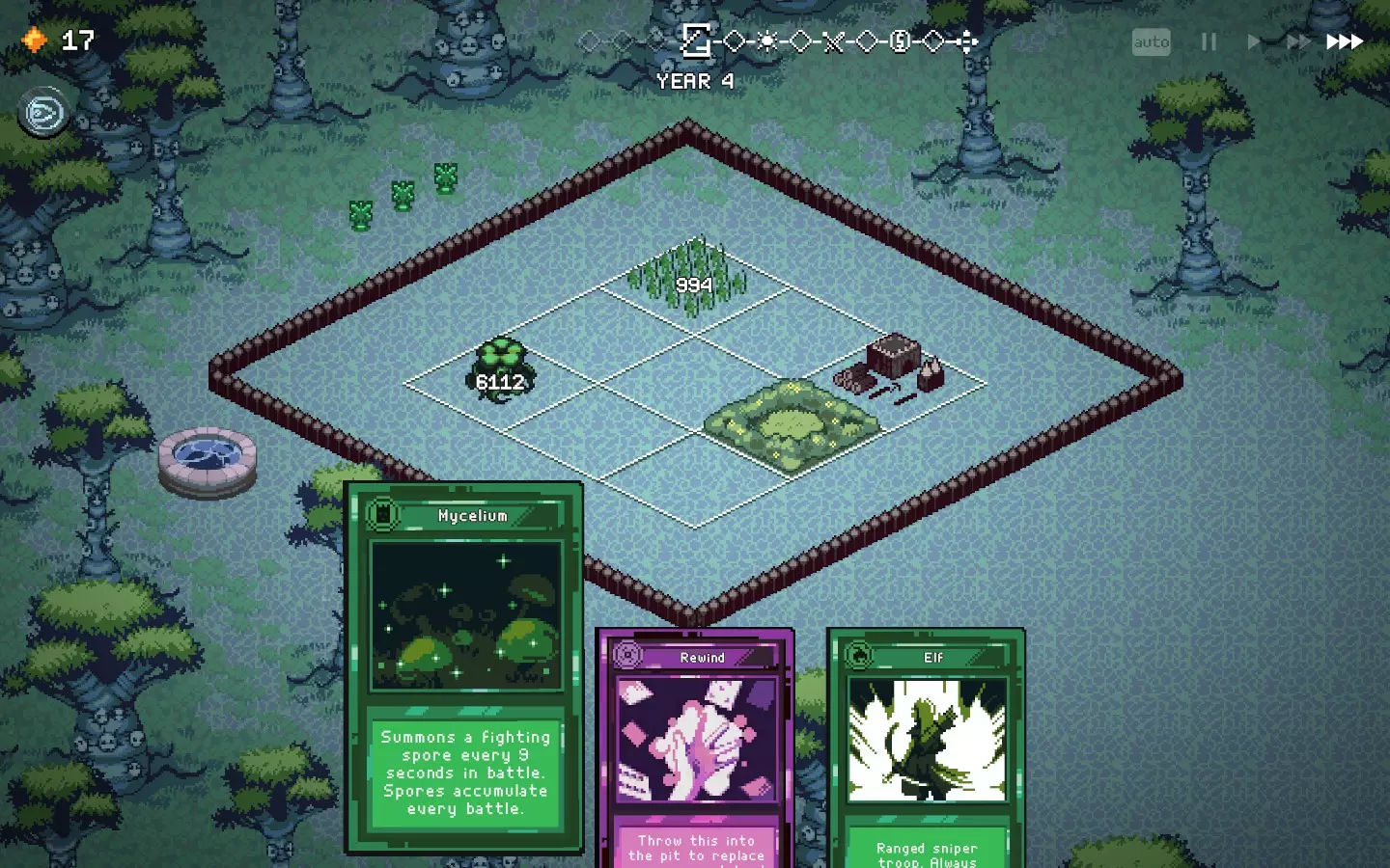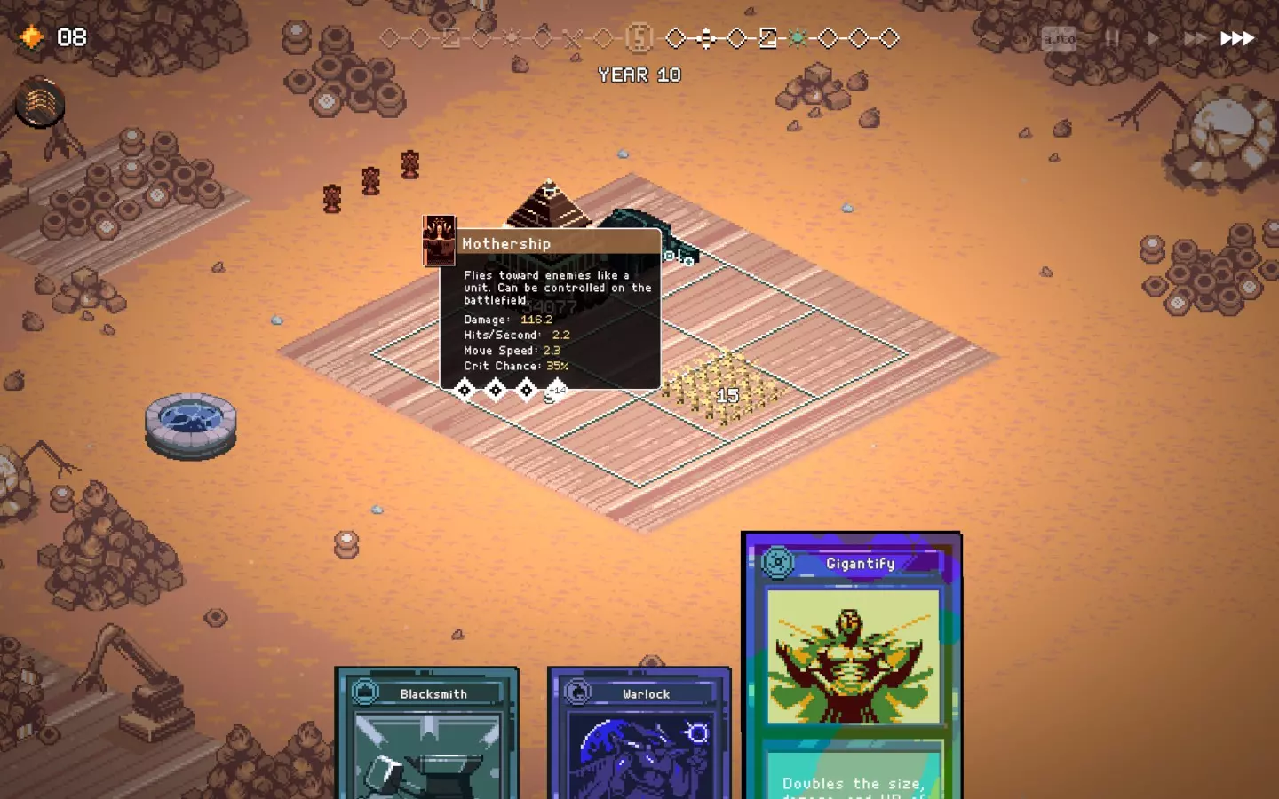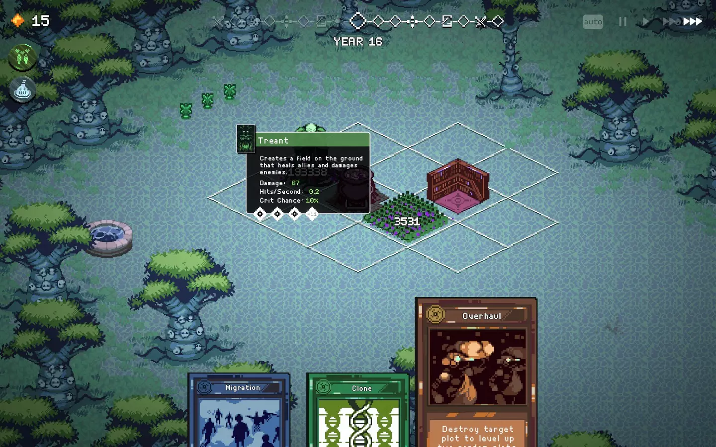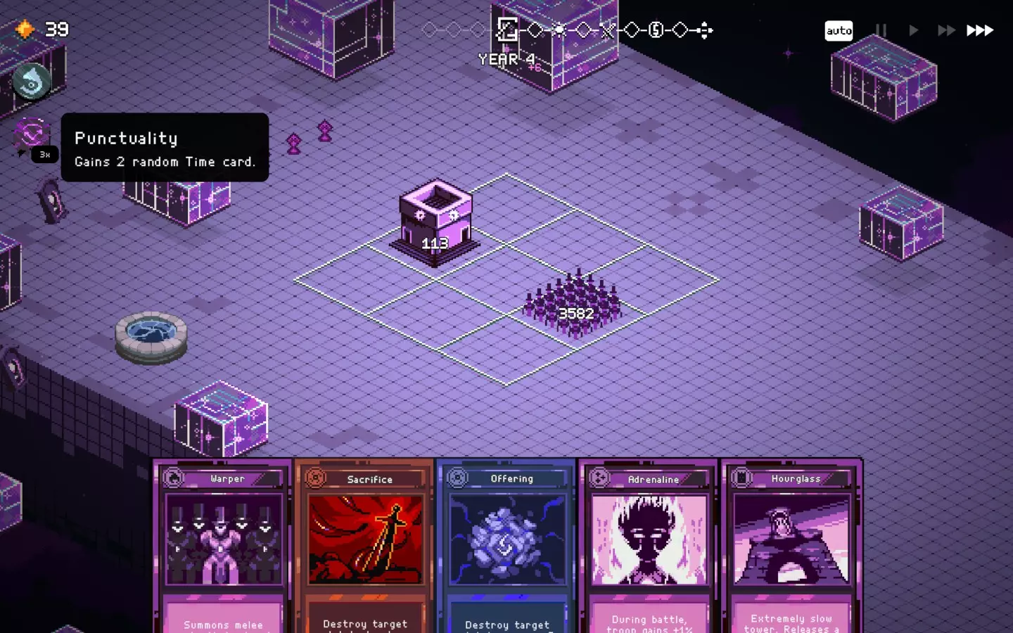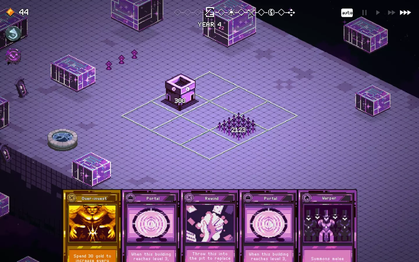 如果你以额外的可部署卡牌开始游戏,或许可以选择【法术之王】作为第一年的敌人。部署一些建筑或单位,战斗结束后你可以重新刷新,并使用“奉献”卡牌来获得最多3次城堡/地格升级(当然,这需要一点运气)。这能让一些原本难以实现的操作成为可能,总体上让你的开局更加顺利。这个技巧在整个游戏过程中都能使用,帮助你处理无用卡牌和糟糕的随机数生成情况。