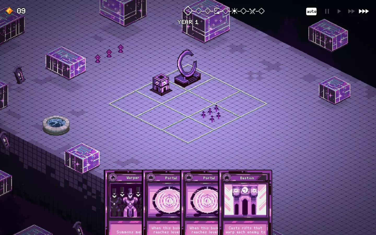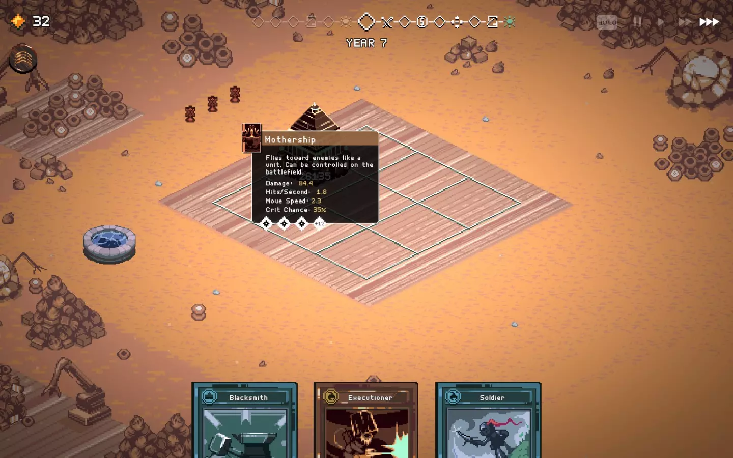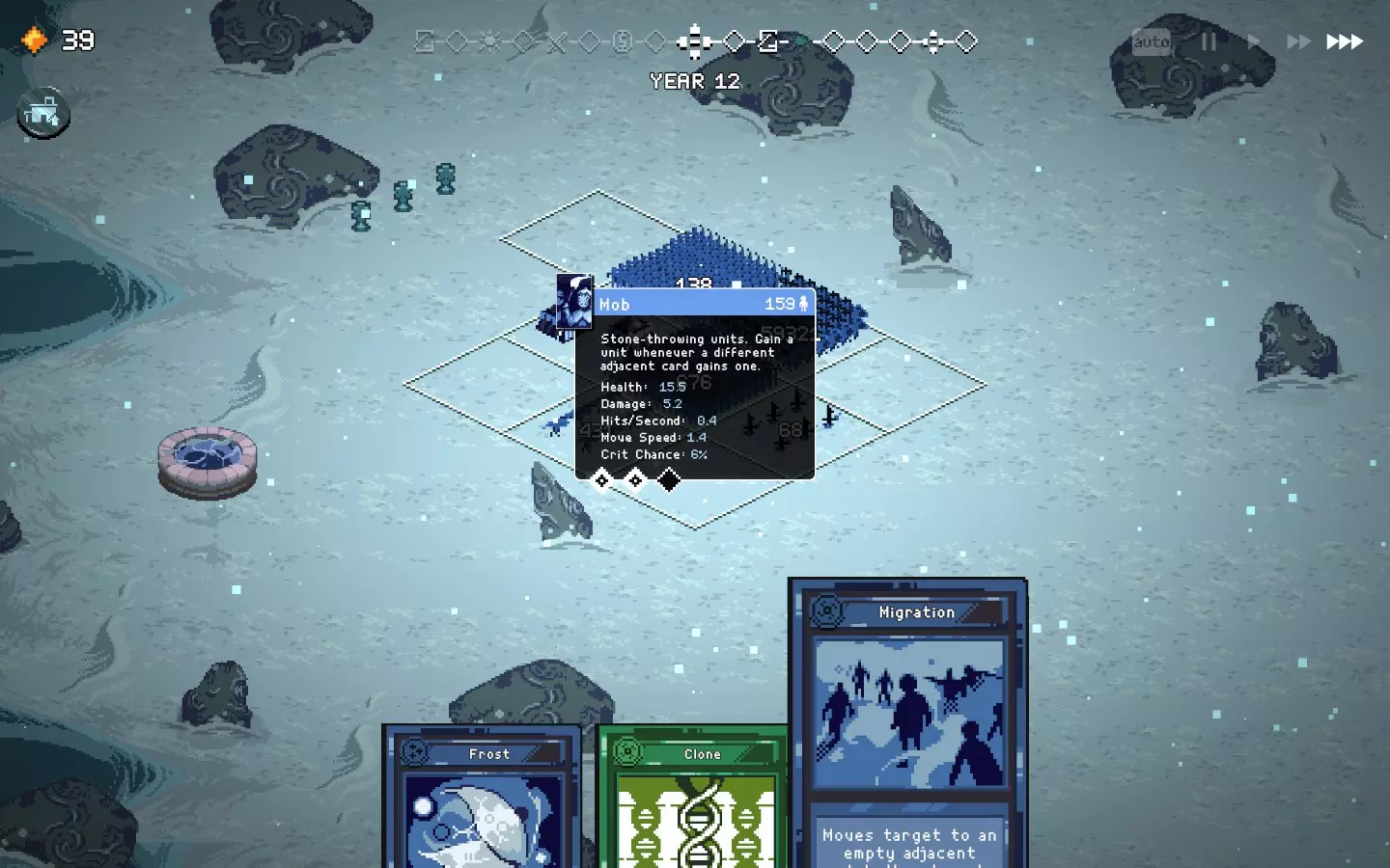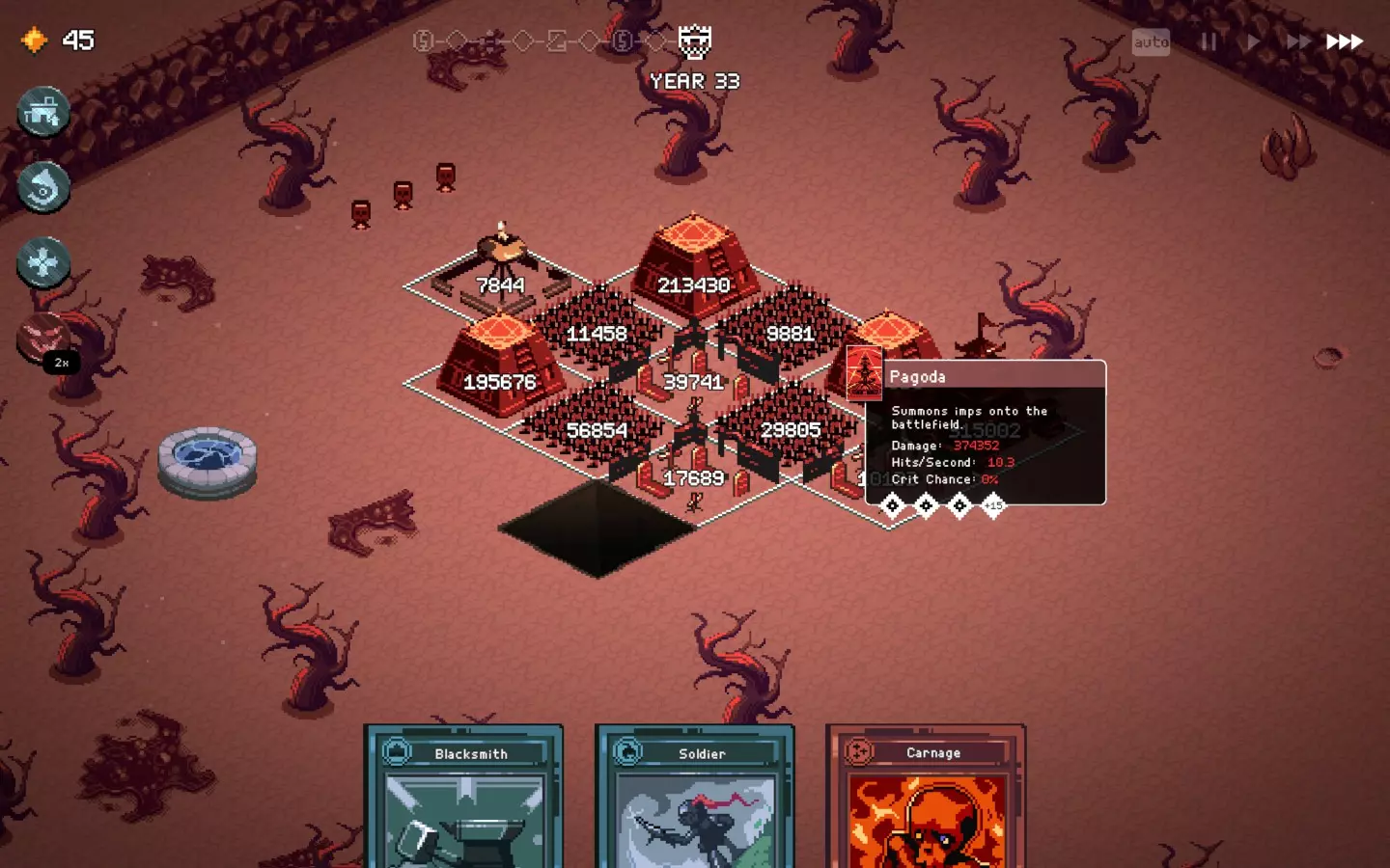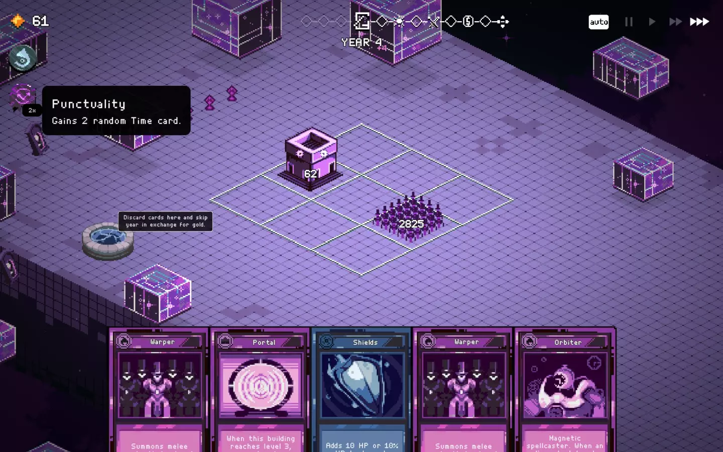如果你以额外的可部署卡牌开始游戏,或许可以选择【法术之王】作为第一年的敌人。部署一些建筑或单位,战斗结束后你可以重新刷新,并使用“奉献”卡牌来获得最多3次城堡/地格升级(当然,这需要一点运气)。这能让一些原本难以实现的操作成为可能,总体上让你的开局更加顺利。这个技巧在整个游戏过程中都能使用,帮助你处理无用卡牌和糟糕的随机数生成情况。