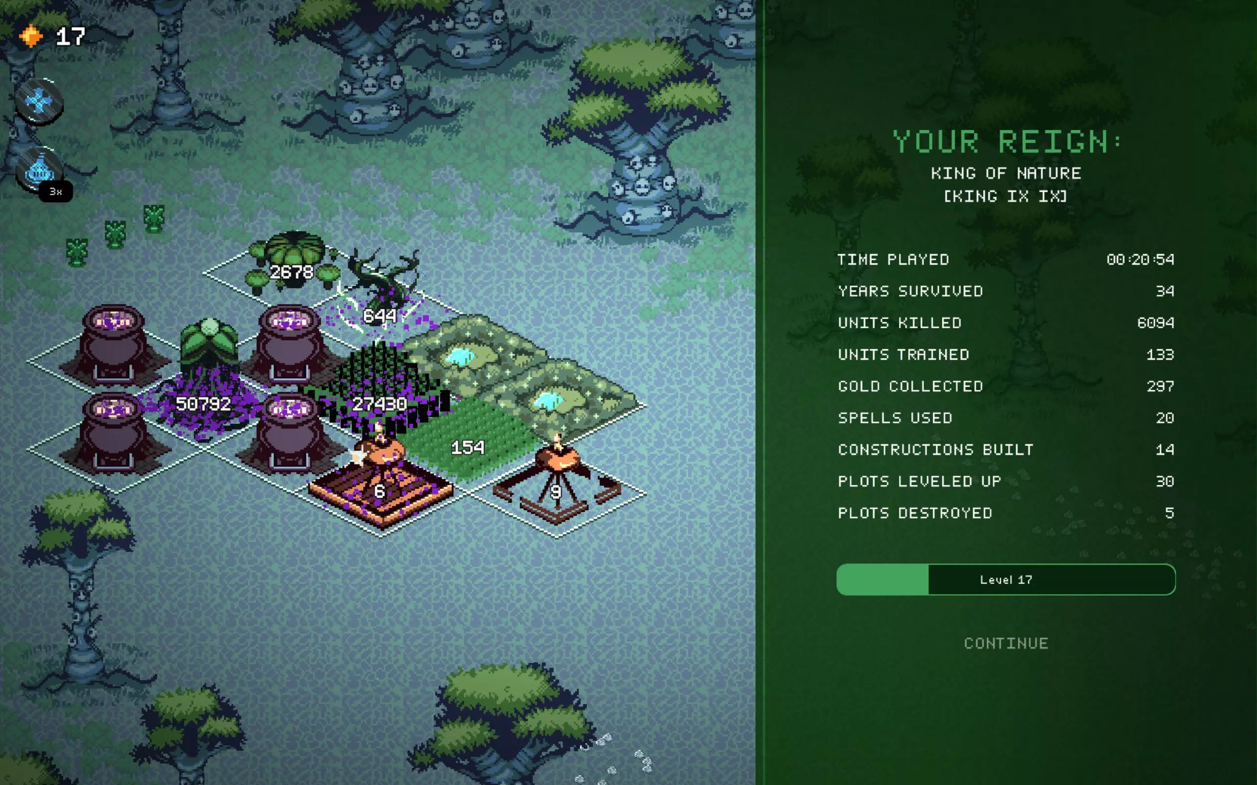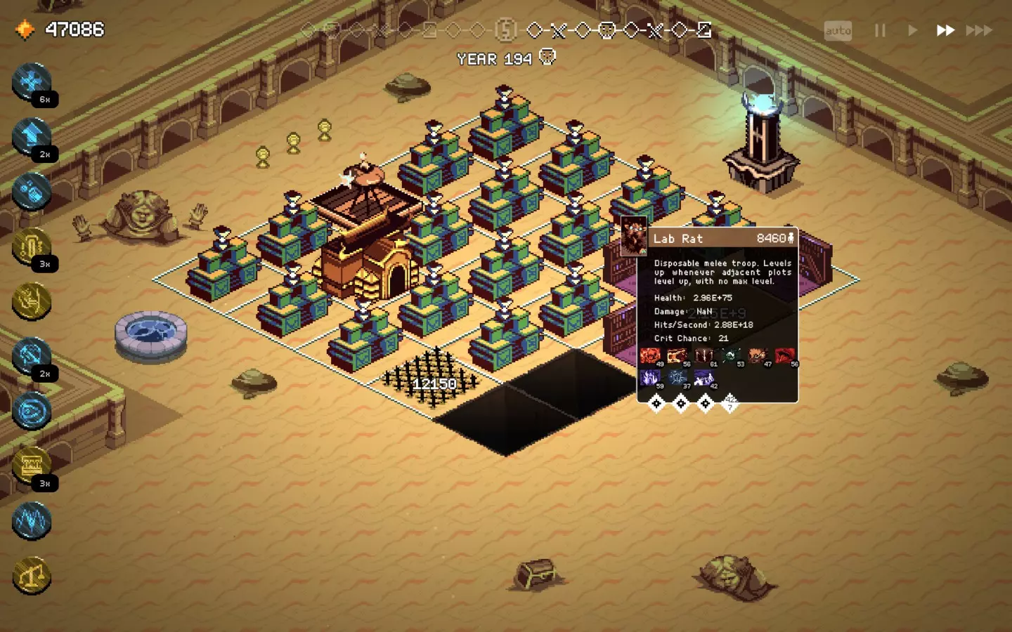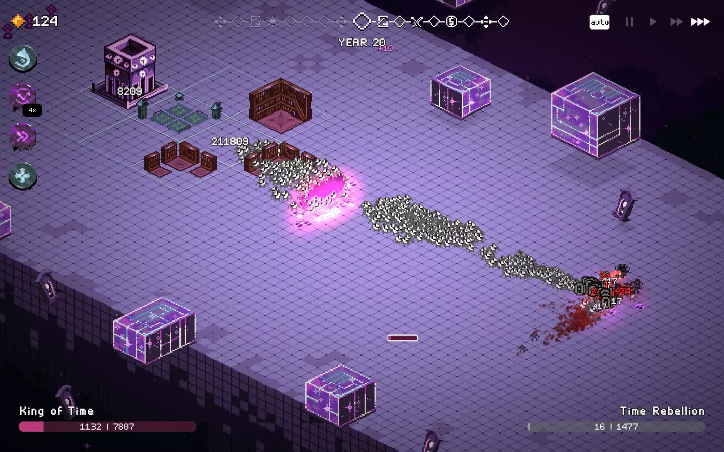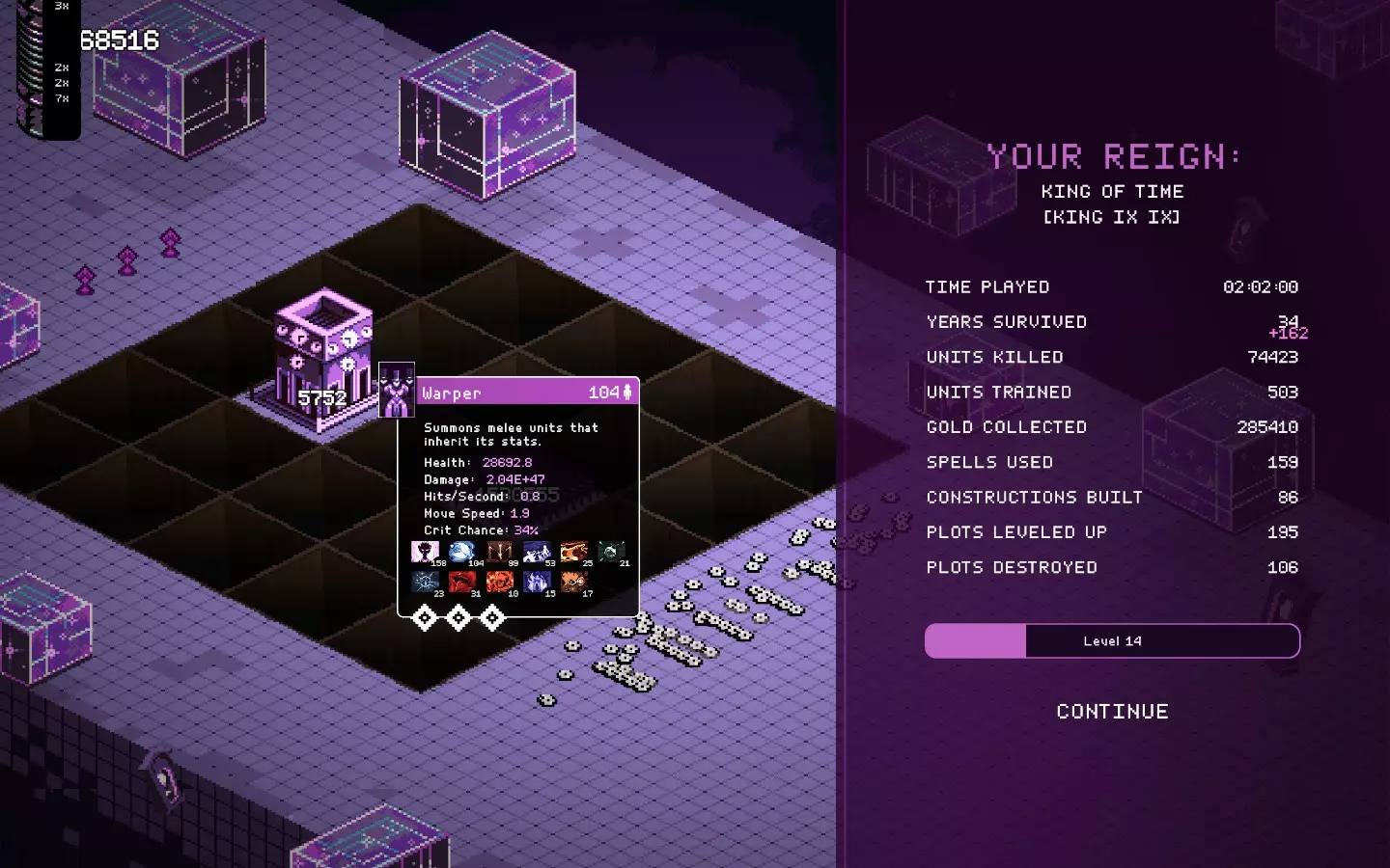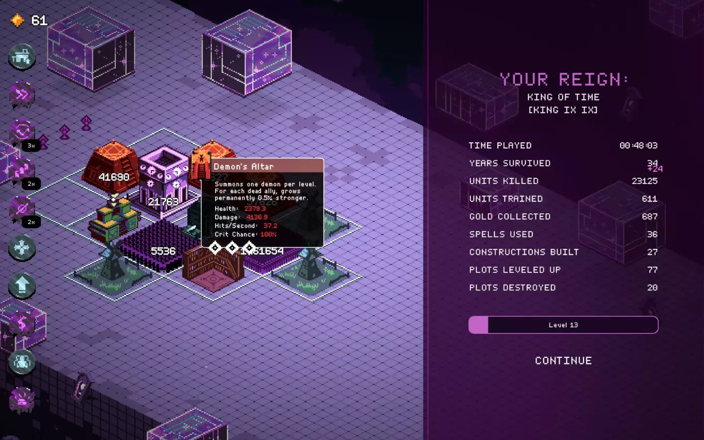而且还卡得要死,在人口少很多的坦克上使用增益效果——结果还是一样,不卡的时间更长了。 不管怎么说,现在的无尽模式有点没意义,因为你可以比敌人发展得更快,但在某个时候你还是会遇到第一个漏洞或故障。 时间又出问题了……