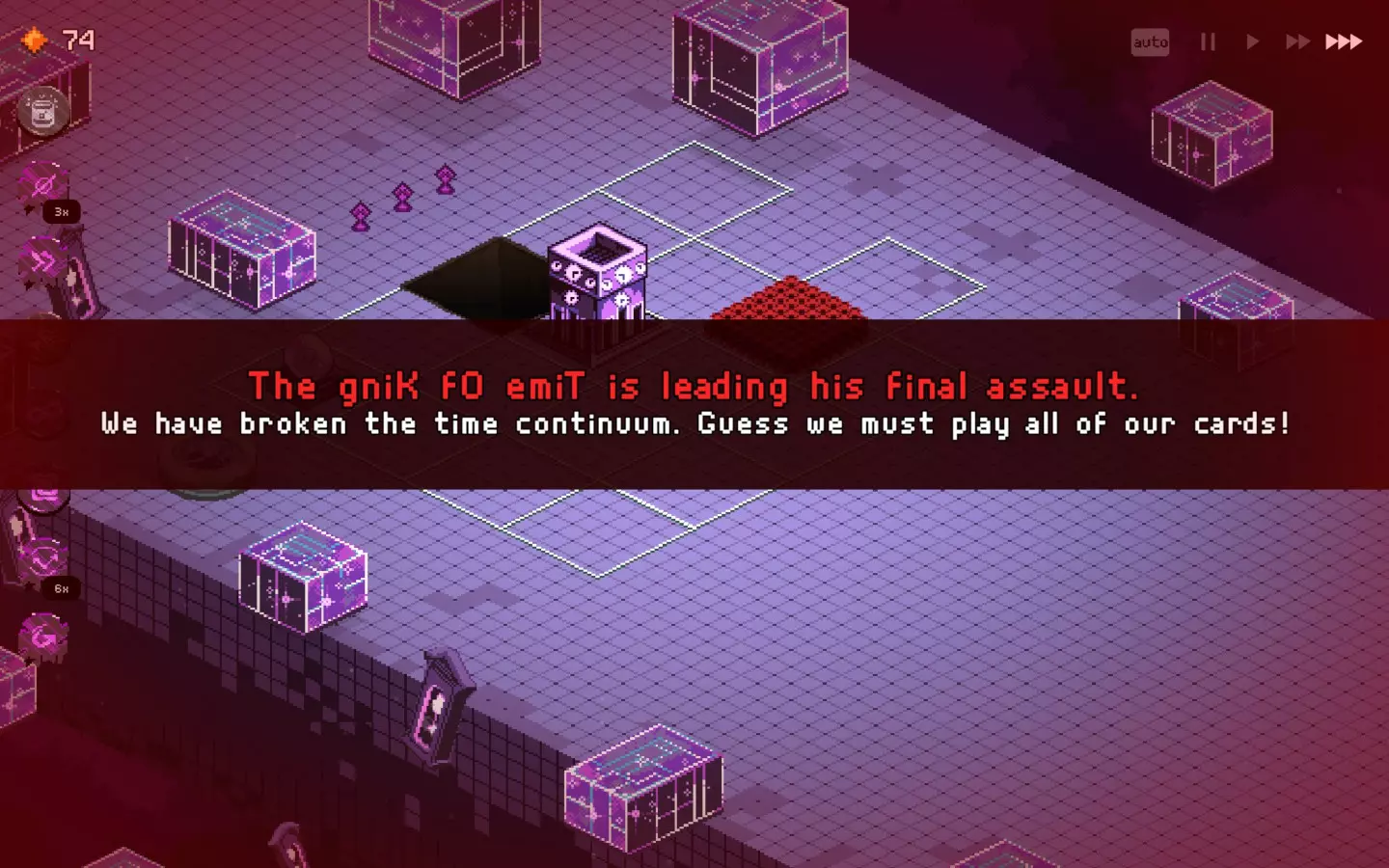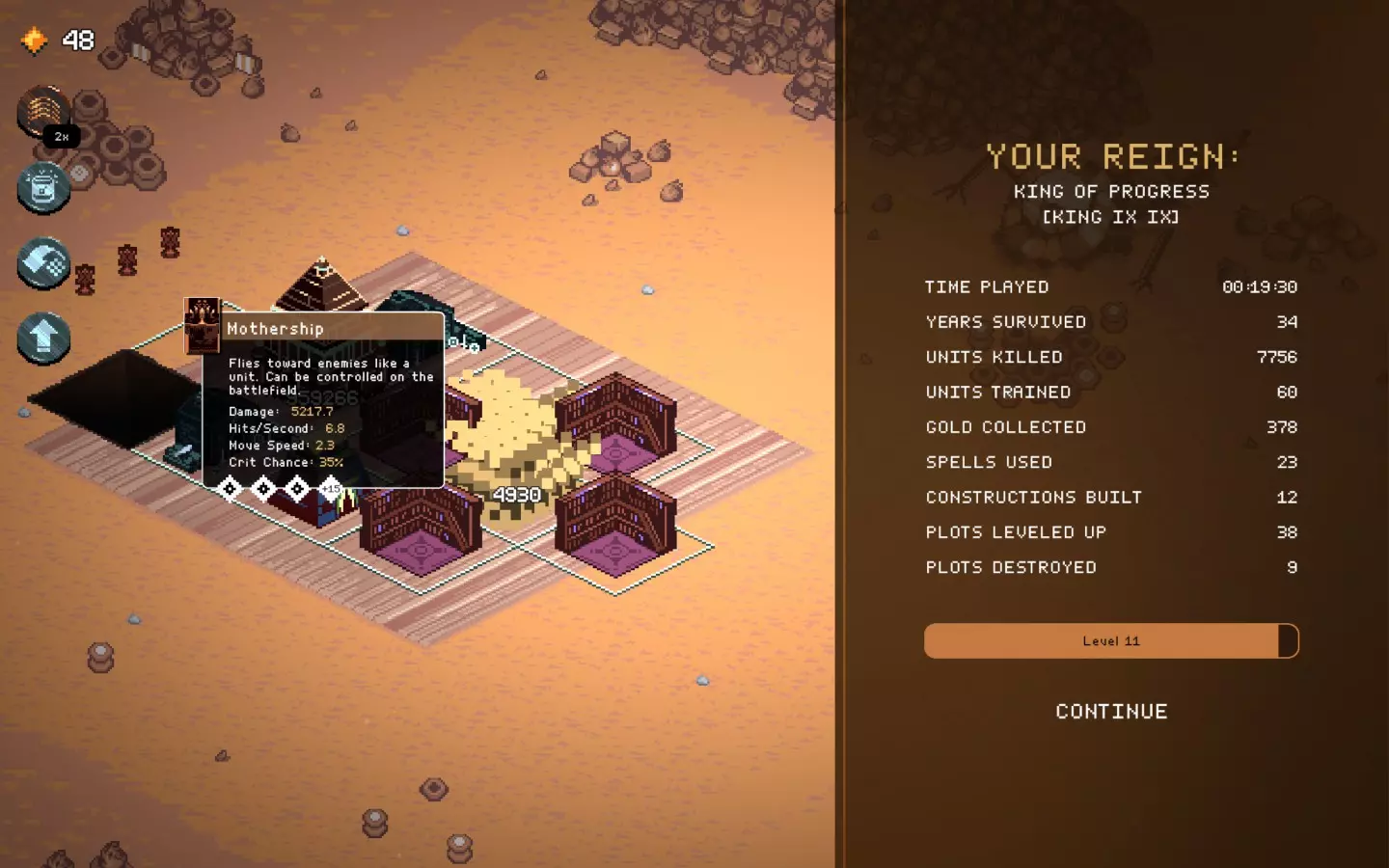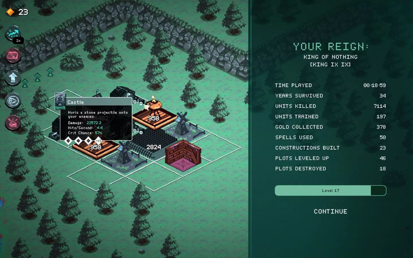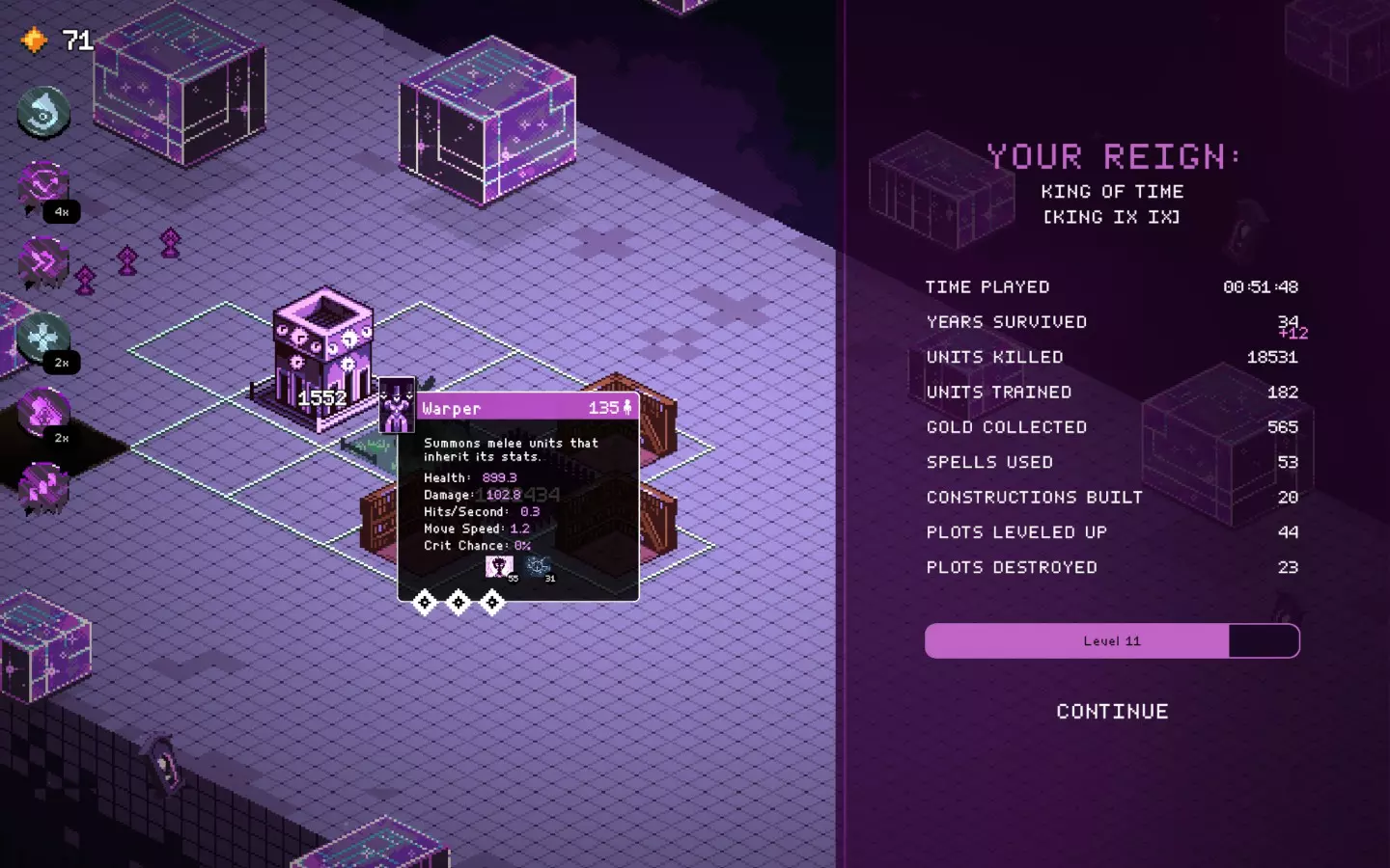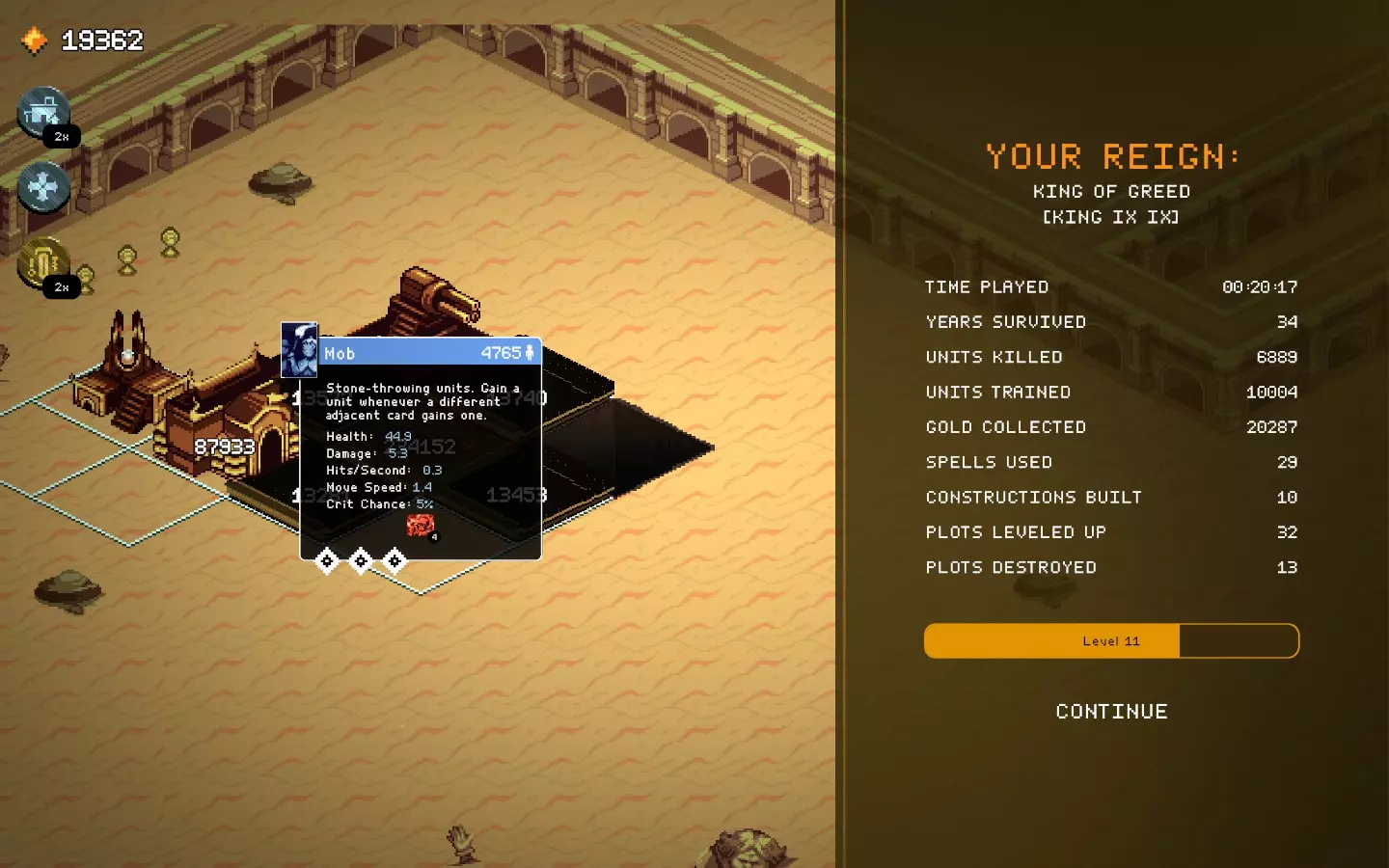 而且还卡得要死,在人口少很多的坦克上使用增益效果——结果还是一样,不卡的时间更长了。 不管怎么说,现在的无尽模式有点没意义,因为你可以比敌人发展得更快,但在某个时候你还是会遇到第一个漏洞或故障。 时间又出问题了……