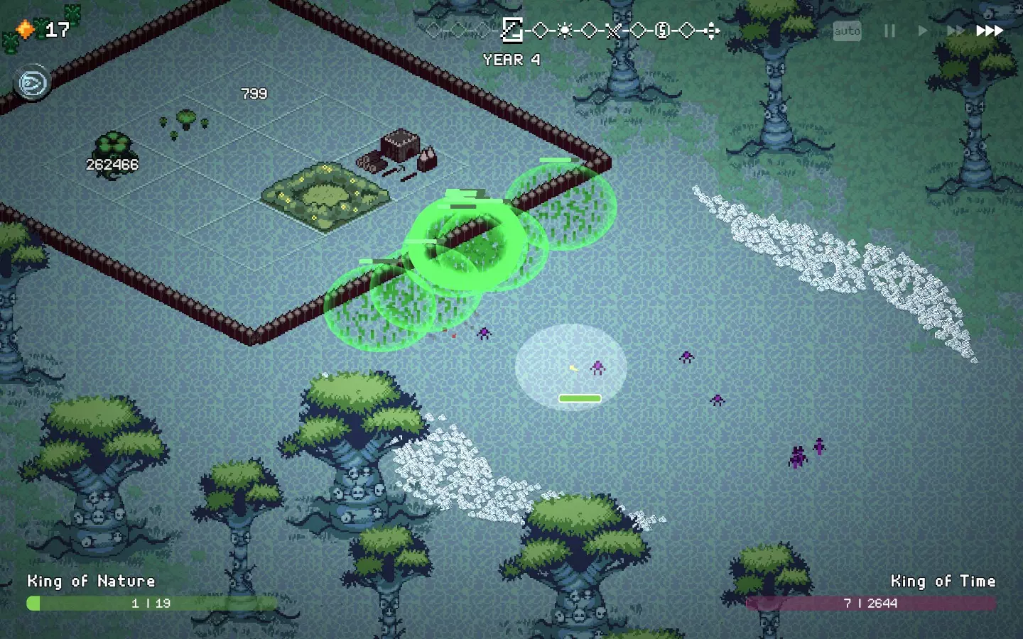 自然之王“破坏生态”。 首先,部署并升级你的坦克单位,推荐圣骑士,但你也可以尝试其他单位。 然后专注于使用“全面改造”或“献祭”快速升级城堡。之后,用一些“钢铁外壳”增益 buff 强化你的坦克,或提升生命值上限,添加一些坩埚,或通过神庙进一步强化你的坦克。 最后,通过和平宣言将霍格沃茨或任何范围伤害敌人驱逐出去。如果你想完美通关且不损失任何生命,这可能会相当耗时。你可以使用因失去生命而获得生育卡片的技能来节省时间。 尝试从霍格沃茨或垃圾佬开始,在所有多余卡片上使用“献祭”或“全面改造”。更多信息请查看【基本技巧】部分。“大锅”“毒液”法令和“神殿”为可选内容,但强烈推荐。如果你想找点乐子,可以尝试“无限孢子”玩法,该玩法胜率100%,但会产生高额能源费用。不过,若“僵局”机制正常生效并触发,此玩法目前将无法使用。可查看下方截图。