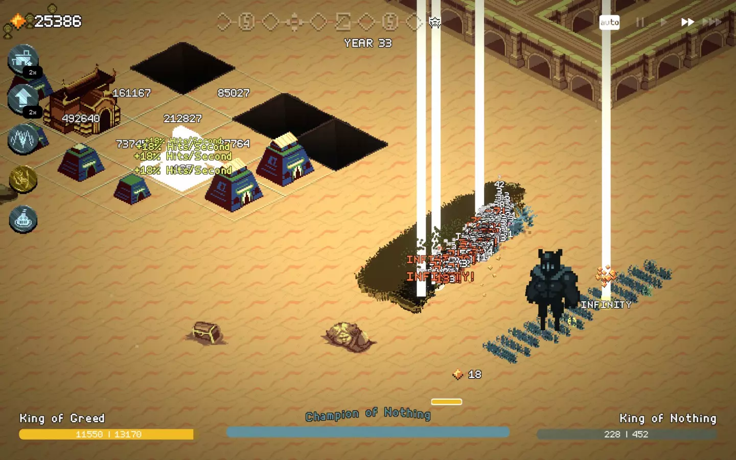 更多信息截图。梦想购物,不是那种春梦。 第11年激光达到1,820,327次/秒的点击量。可惜在游戏后期毫无用处(已修复)。 有几乎花不完的钱去购买一些好东西。 第16年有2300个单位,到第33年增长到13000个单位。