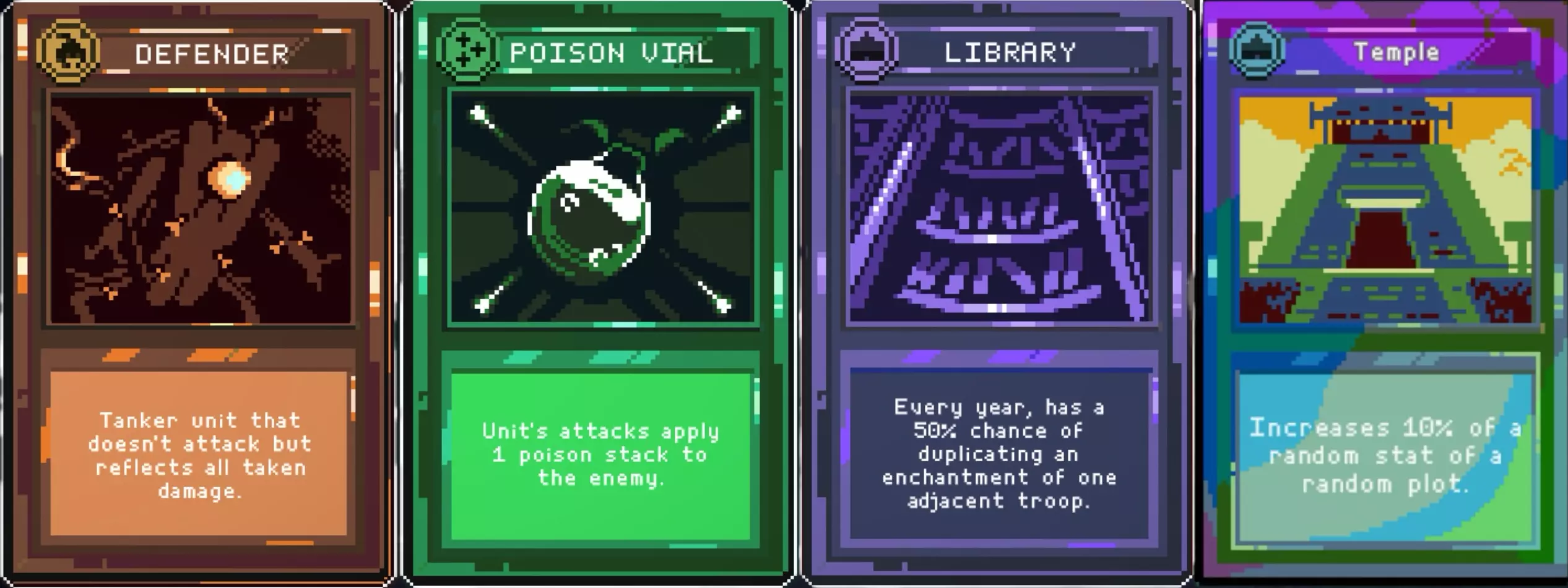 “防御者”在选择更高难度时,它在某个阶段会变得至关重要。根据你游玩的国王不同,我认为在K7-10+阶段需要它。在此之前,你可以用任何坦克单位替代,但成功的几率未知。“毒药瓶”是主要的协同卡牌。有了这个 buff,我们的坦克单位在攻击时会使所有目标中毒,结合“毒液”法令和/或中毒 perks,30-50 层的中毒效果实际上能在几秒内杀死所有敌人。“图书馆”是主要的增益卡牌,需要它来最大化 buff 效果。“神庙”是主要的强力增益卡牌。10%,真的吗?它和“过度工作”法令能形成荒谬的组合。一年增加 60%生命值怎么样?哦,你可以大量建造神庙来使其达到 200%以上,为什么不呢?当然不算强力。以生命值为核心的思路使其非常高效。彩虹军队或特定商店并非理论上的必需品。大幅扩展可挑战的难度。 备用协同卡牌。