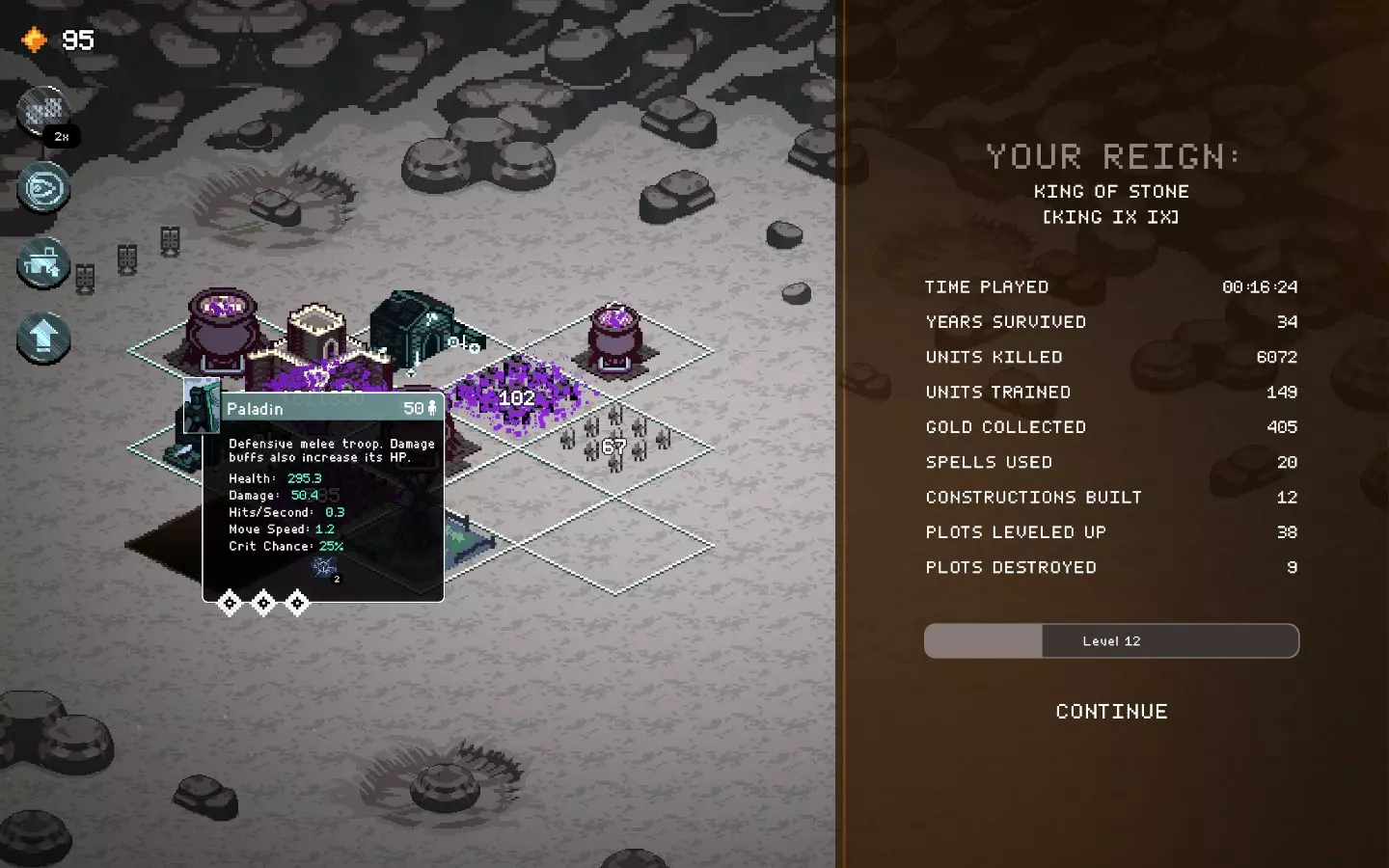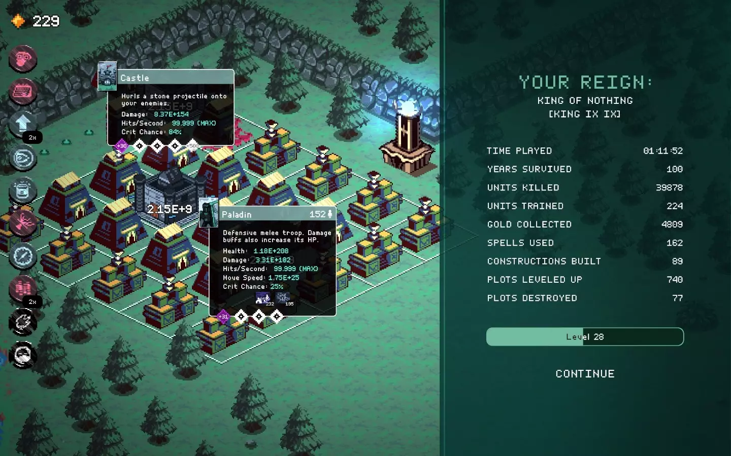 遗产!*已过时,在彩虹特权或游牧民族更新之前。* 好的,这其实非常简单。像某些第三世界的国王一样,疯狂招募雇佣兵。 他通过城堡攻击赚取大量黄金。石油?谁知道呢,但他肯定能买下其他所有国王。疯狂招募雇佣兵,使用墓地,你的王国人口会比中国还多。 “盛宴”法令在游戏早期某个阶段会变得至关重要。 你可以选择一些国王专属法令来赚取更多黄金。 尽量跳过石之国王,因为他会摧毁你人口过剩的烂摊子。我相信你能从这张高难度101年的截图中明白这个思路。
