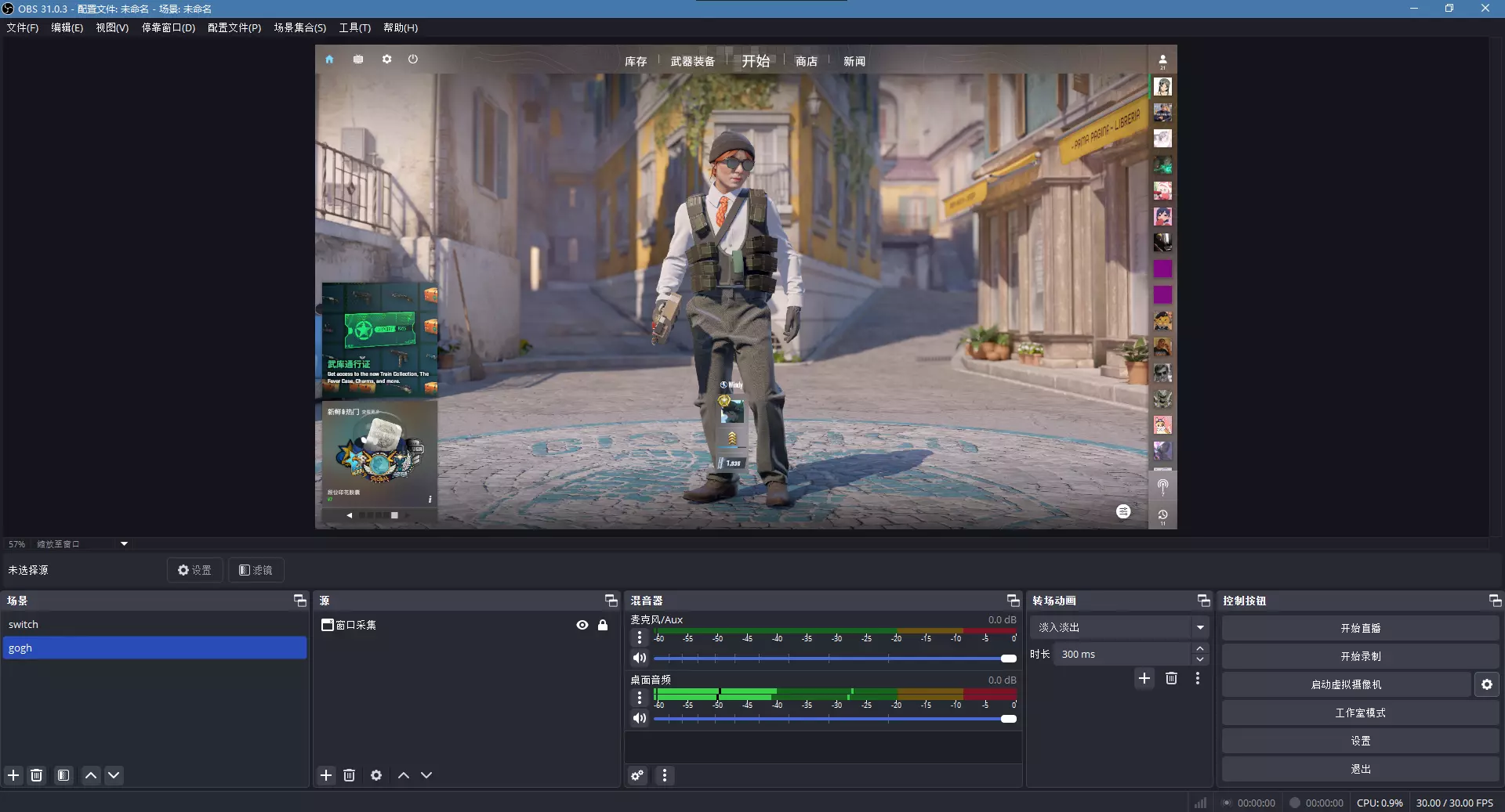 打开OBS、gogh以及需要投屏的程序,选中OBS,在默认界面找到【场景】,进行添加。