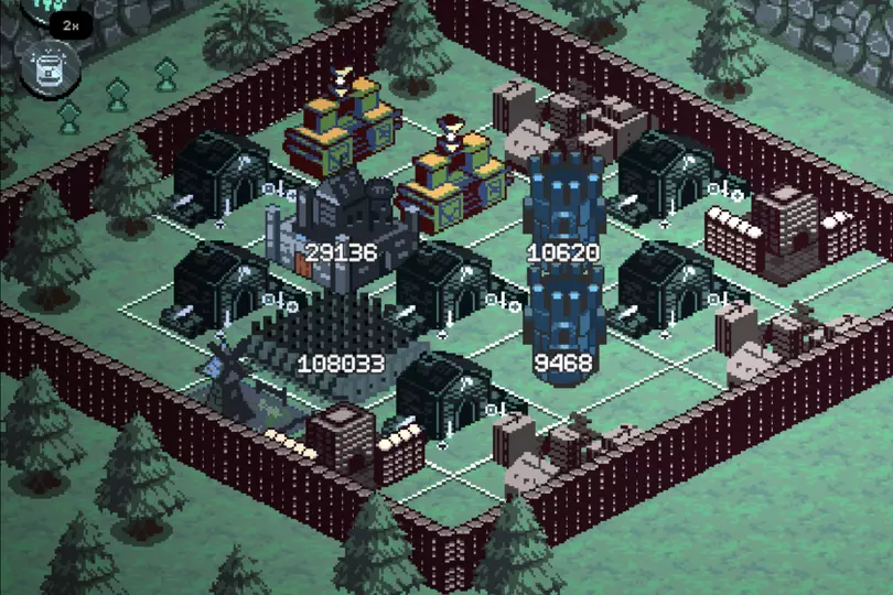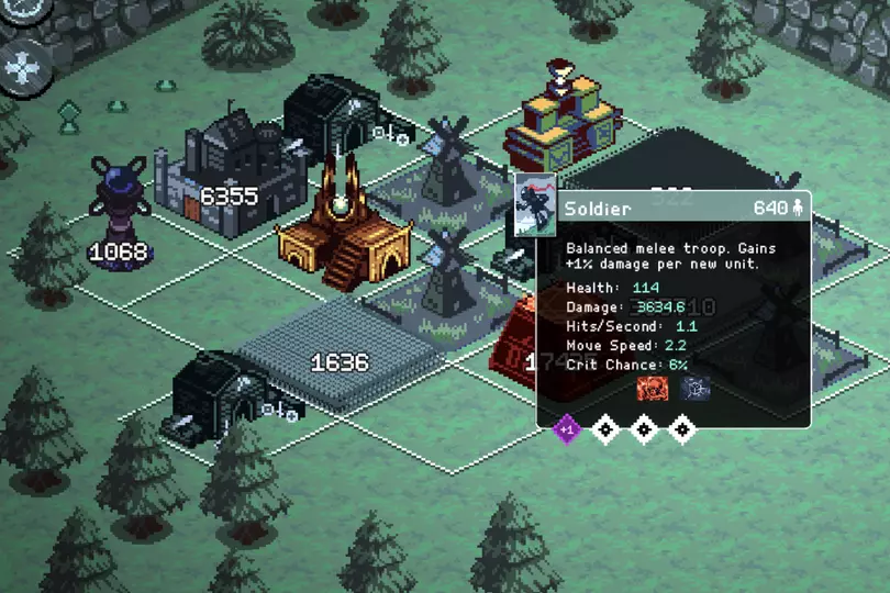 我只放置了2种部队(士兵和圣骑士)来利用所有给定的农田地块。士兵地块在数量上能够形成强大的滚雪球效应,从而以数量优势淹没敌人,当然前提是它们不会被范围攻击一击消灭。熔炉