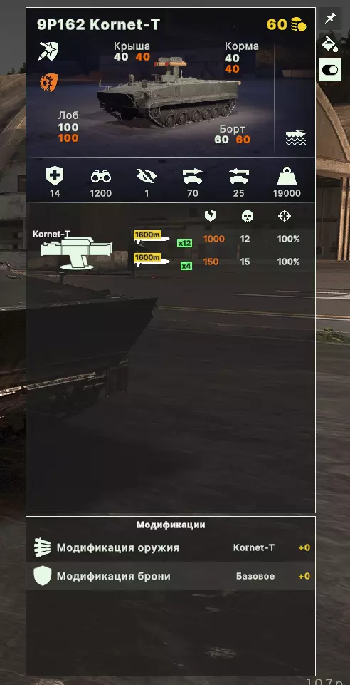 重型坦克,顶配220+点数。它们可能配备也可能不配备主动防护系统。其用途是最大限度吸收伤害和进行火力压制,对敌方载具造成最大伤害,并从远处对步兵进行火力压制。 它们在装甲和穿甲能力方面与顶级坦克没有太大差异,但在所有性能指标上仍略逊一筹。 3. 反坦克导弹发射车