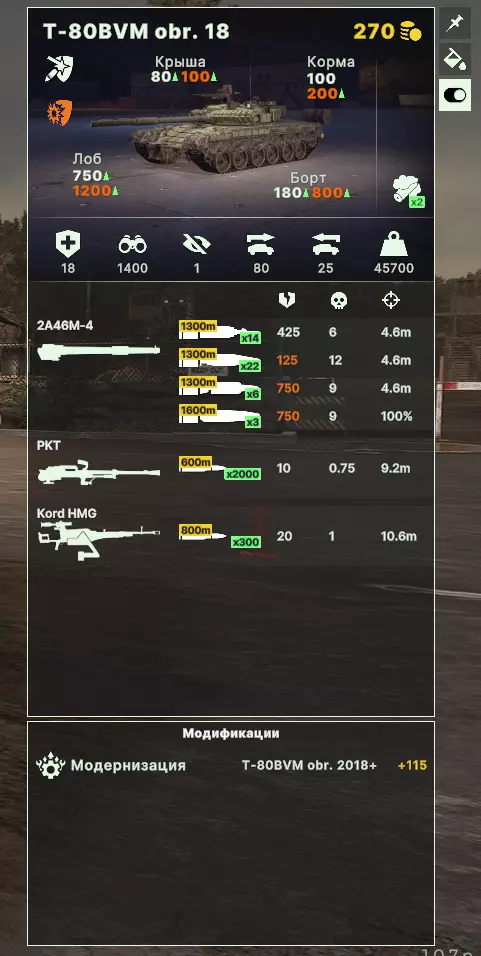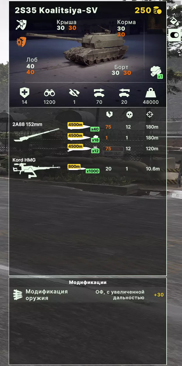 重型顶级坦克是指评分达到330+的满配坦克。这类坦克必须配备主动防护系统(КАЗ),用于拦截反坦克导弹和火箭筒弹药。 这些坦克在所有坦克中拥有最佳的生存能力、装甲和穿甲性能。它们需要被用于坦克突击的先锋部队以发挥最大作用,并且要注意爱惜,因为其价值相当于数个步兵排。 2. 重型坦克