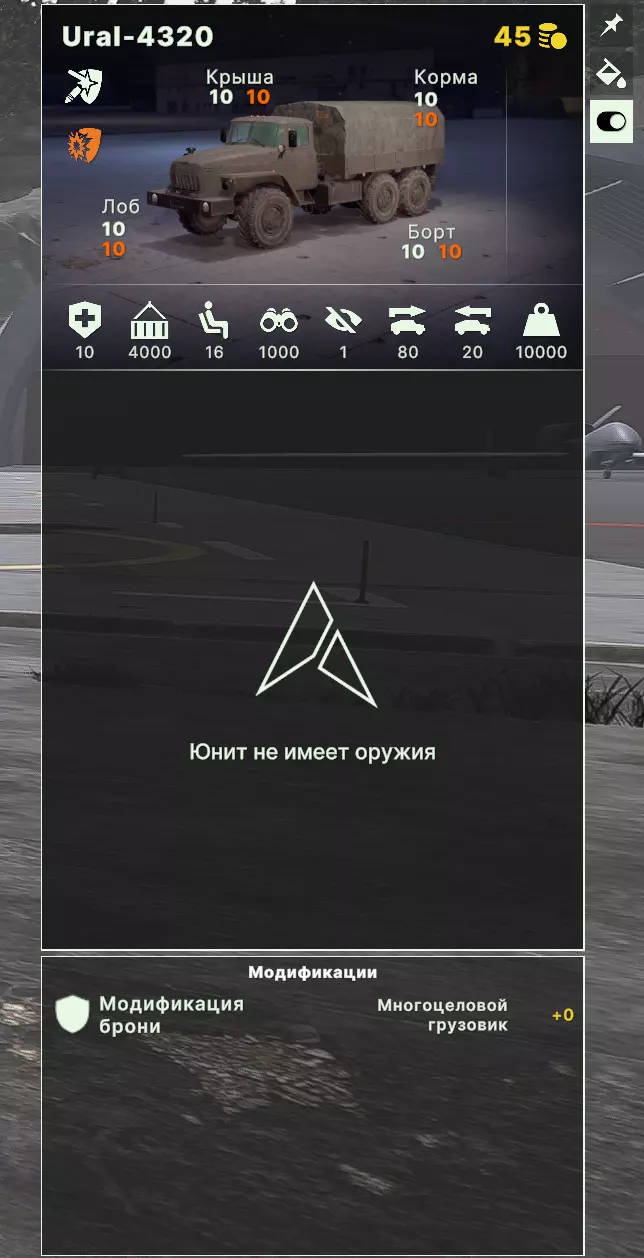 防空单位(ПВО)是指防空武器。没有这个单位,就会不断遭受敌方嚣张的飞机和直升机的攻击,这使得该单位成为联合作战中最必要的单位之一。 防空单位分为重型和轻型: 重型防空单位用于对抗敌方航空兵——战斗机、轰炸机和攻击机。尽管轻型防空武器可以轻松击落它们,因为它们速度慢、生命值低,但重型防空武器也能在远距离锁定它们并进行预防性打击。建议要么将它们两两部署在相距50-100米的位置,要么配备拥有大量导弹的防空武器。请注意,开启雷达会增加防空武器的锁定和射程,但这样敌方雷达预警接收器可能会锁定你的防空武器。需要持续监控天空以便及时关闭雷达。 轻型防空武器旨在对抗敌方直升机,但也能够攻击低空飞行和低速的飞机。轻型防空武器不仅配备导弹武器,还装有火炮,这非常适合对抗直升机,因为火炮火力可以压制直升机。被压制的直升机瞄准精度下降,机动性也会降低。 轻型防空武器也配备雷达,能够在超出其标称数值的距离外进行瞄准和射击,因此容易受到雷达告警接收机的探测。建议始终携带多辆以覆盖整个前线区域,但需要注意的是,由于靠近前线,它们很可能会不断损失(敌方炮火、敌方侦察以及靠近【PRR】)。 6. 补给车辆