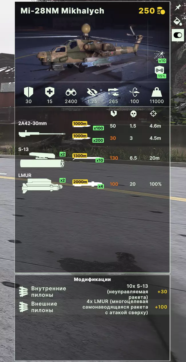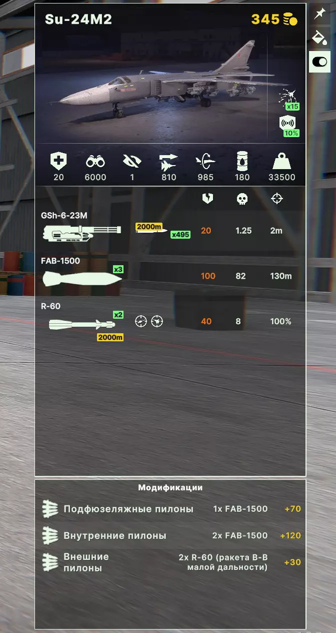新手轰炸机玩家建议严格搭配用于摧毁进攻冲锋和已构筑阵地敌人的炸弹组合。为此,像FAB-1500这类超重型炸弹是理想选择。这种轰炸机配置使用起来最不挑剔,非常适合新手。在剩余的额外发射架上,可以使用近程导弹摧毁附近的直升机。除了超重型炸弹外,还有激光制导炸弹。使用它们需要配备激光制导装置的单位协同,或者飞机自身携带激光指示器。激光制导、投弹和脱离战场的微操作需要一定的飞机驾驶技巧,可能不适合新手。不过,本指南不涉及这方面内容。 在《破箭》中还有空射巡航导弹,也可以挂载到轰炸机上。对于新手来说,如果突破敌方防空系统,或许能找到它的有效用途,但在其他情况下,在经验不足的人手中(尤其是在轰炸机上),它们不会有什么用处。 3. 攻击机
