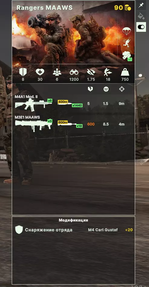 这种单位与未激活武器的组合非常适合潜入敌后,为己方行军纵队提供持续视野,并牵制敌方的炮兵和防空单位。 最好携带反器材武器,因为它能击穿轻型载具(即补给车、防空单位、炮兵),并且可以独立消灭敌方单位后迅速撤离阵地。理想的解决方案是游骑兵狙击手,他们配备有反坦克武器和反物质步枪。 当然,狙击手也可以直接在前线而非仅在后方进行进一步侦察,但这取决于个人决定。 2. 重型侦察——特种部队及其他。