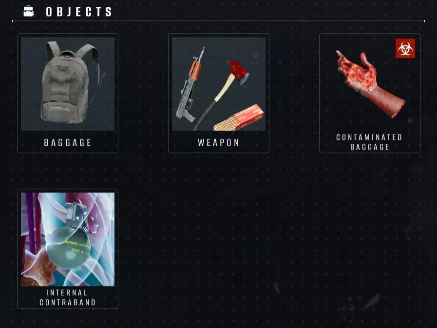 所有功能默认开启,但最后一个功能需要在开启X光扫描后才能获得。遇到“行李”“武器”或“体内违禁品”症状时,无需选择它们,这些不会计入检查结果评分。 关于违禁品本身——所有武器或毒品(香烟除外)都被视为违禁品。步枪、斧头、刀、火焰喷射器(但不包括丙烷罐或燃料罐)、“白色”块状物——所有这些都可以安全没收。此外,无需没收僵尸身体部位。锤子