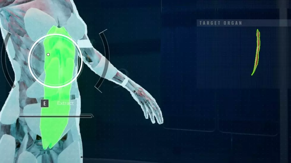 小游戏玩法说明 当有人被送到实验室后,你可以与旁边的显示器互动,启动【器官摘取】小游戏。该小游戏的玩法如下: 你需要按住【E键】移除被绿色高亮显示的器官。这个器官是有用的,而你需要移除的器官也会显示在右侧。