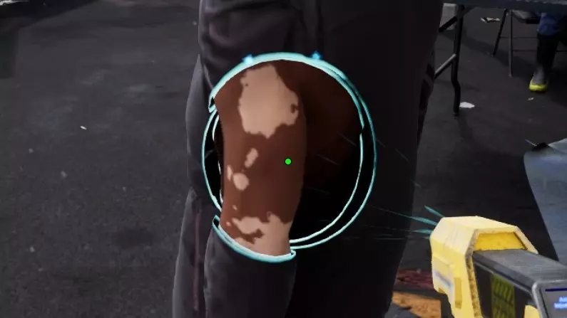 所有症状默认全部开放。【紫外线症状】不一定是咬伤——它是指任何只能在紫外线下看到的皮肤症状。简而言之,如果你在紫外线下看到皮肤上有任何绿色痕迹,那就是【紫外线症状】。 行为标记 如前所述,有时患者会给你提示其确切存在症状的部位。值得注意的是,患者仍可能在某些区域存在症状,但没有这种【行为标记】。但例如,如果患者的眼睛微微闭着,那其眼睛里肯定有异物(即使是不太严重的情况)。所有这些标记都列在游戏内的百科全书中,但这里有一些例子可以帮助你入门: 某人的下巴微微下垂——查看【锤子】部分的症状 某人时不时地捂着肚子——查看【X光】部分的症状 某人在咳嗽——很可能是【热脉冲计】或【听诊器】部分的症状 等等。 非症状 游戏中存在一些症状,但无法在症状列表中选择,也无法在实验室中研究。它们会被游戏识别,并且可能是某些任务的一部分(例如,我曾接到过一个任务,要求杀死一名患有白癜风和肥胖症的人)。 以下是一些例子: - 肥胖症(但不包括营养不良或消瘦) - 白癜风——皮肤上出现没有任何颜色的区域(白色) - 痣或胎记——通常看起来是相同的棕色斑点,经常出现在手上。原来这是【锤子】留下的印记(见下方截图)