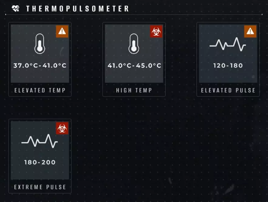 所有症状默认已解锁,只需将【热脉仪】读数与列表进行匹配。实际患者的脉搏几乎会立即显示,而体温则需要5-7秒才能测量完成(体温越高,所需时间越长)。听诊器