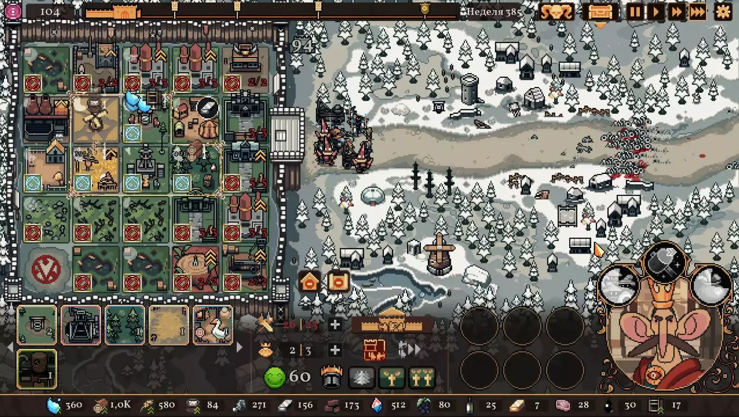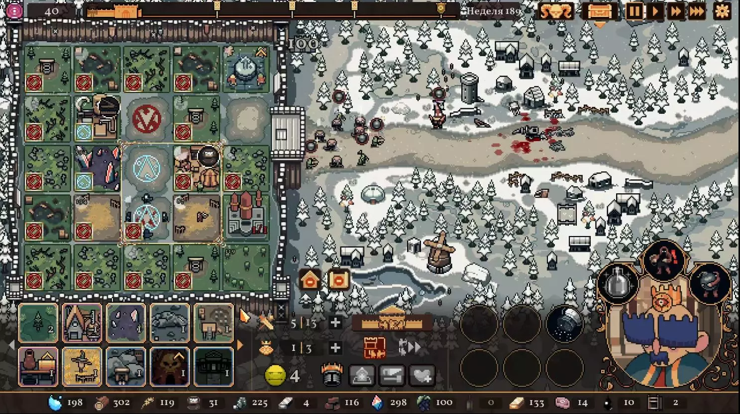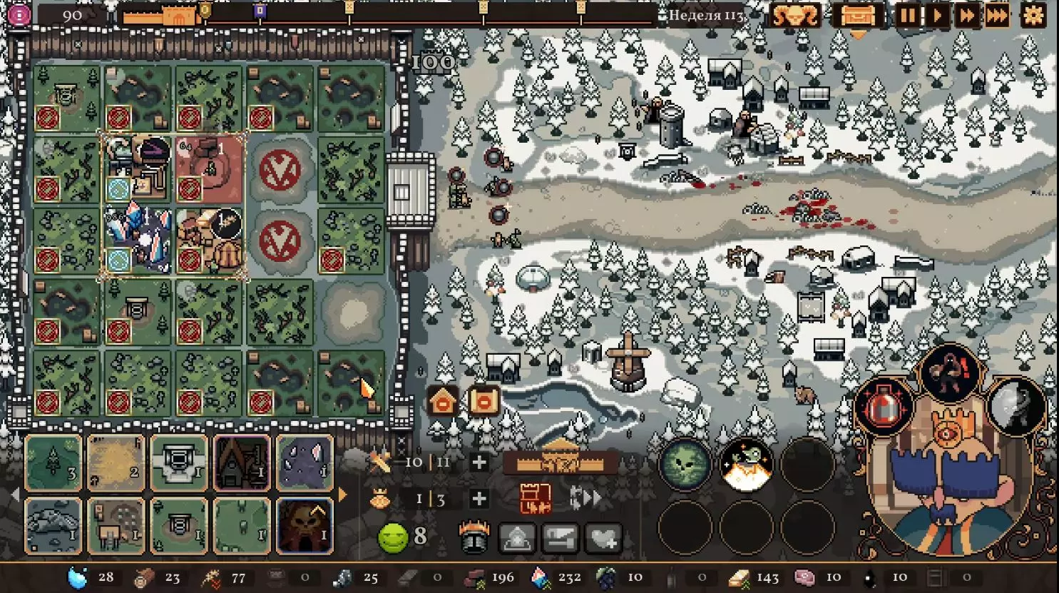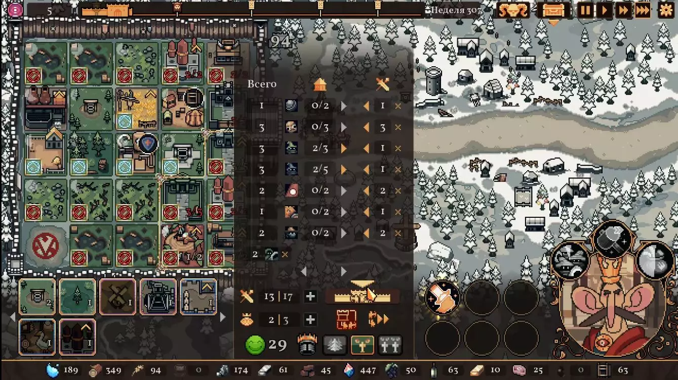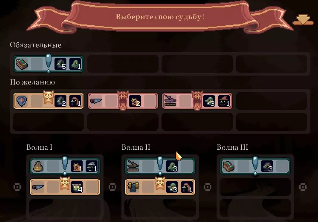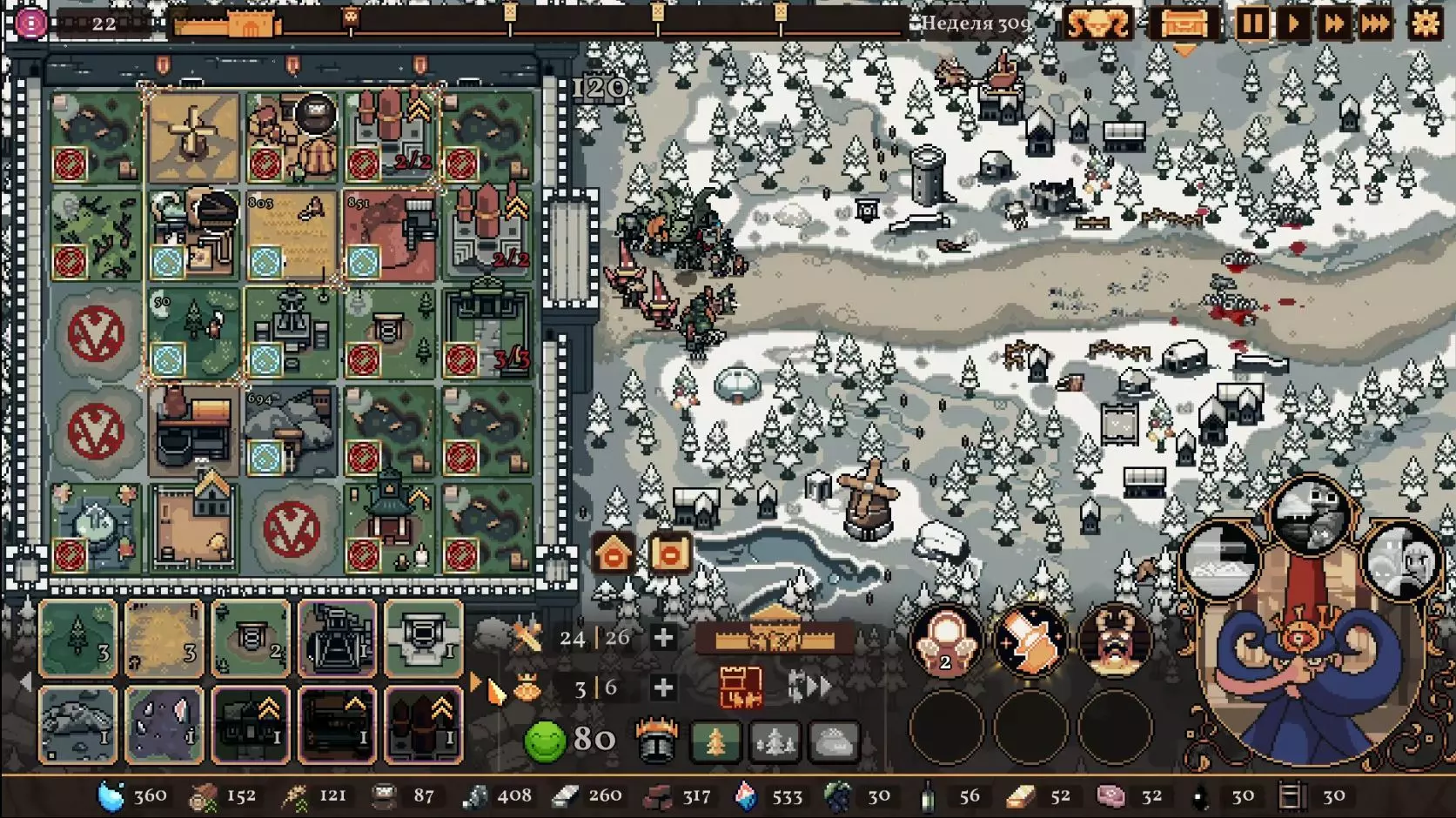 清理带有蓝色符文的格子。建造水井,然后种植小麦和树木。在旁边的空地或红色格子上建造市场并出售小麦。目标是快速积攒资源建造研究中心,并开始研究以下其中一种类型的部队:初级部队(刺客)或精英部队(水晶战士)。之后再根据游戏进展来决定是补充现有单位还是寻找其他单位。无论如何,一定要研究高级生产——面粉和铸锭。也就是说,如果对军队有信心,就研究生产;如果没有信心,就研究单位。 局势在任何情况下都很大程度上取决于随机因素。有时就是不顺利,找不到所需的资源,得不到神器,甚至在第五回合后都抽不到需要的单位。 所需资源(参考): 对于水晶单位——3-4个200单位的水晶(或1个1000单位的水晶),2-3个200单位的黏土。之后——2-3个铁矿,每个200单位资源,或者1个铁矿1000单位资源;1-2块麦田;1-2个锯木厂。 对于流民来说,大体上也是如此,只是需要更多的铁矿,以及1单位的水晶和1单位的黏土。 如果在大约第120周时,你还没有强力单位,那么在规划敌人波次时,最好只选择一种类型的敌人。不要贪心。 对付第一个 boss,有1个水晶战士、初始的2个火枪手,再加上一些流民作为支援就足够了。我的选择是狂徒。它们由黏土建造而成,生命力顽强,能够提升士气并对敌人造成伤害。 第二个首领战如果遇到龙就很糟糕。这家伙会把所有远程单位都烧成灰烬。战术是:先把法师藏在城堡里,开始时只留1个单位。每完成一个阶段,再放出一个。 到这个时候,需要用强大的单位来加强军队,并且一定要添加治疗师。要开始生产锭和面粉,通过采集木材来增加军队上限。第三个首领 通常此时资源已经足够,单位数量应该会受限于人口上限。如果所有科技都已研究完成,研究中心可以拆除;否则应研究基础设施科技,以建造竞技场、医院和/或国王雕像。有时建造精灵井和佛教寺庙会很有用。非常重要的是建造英雄雕像,并持续升级单位(冠军+法师或新兵)。 1. 博杜安