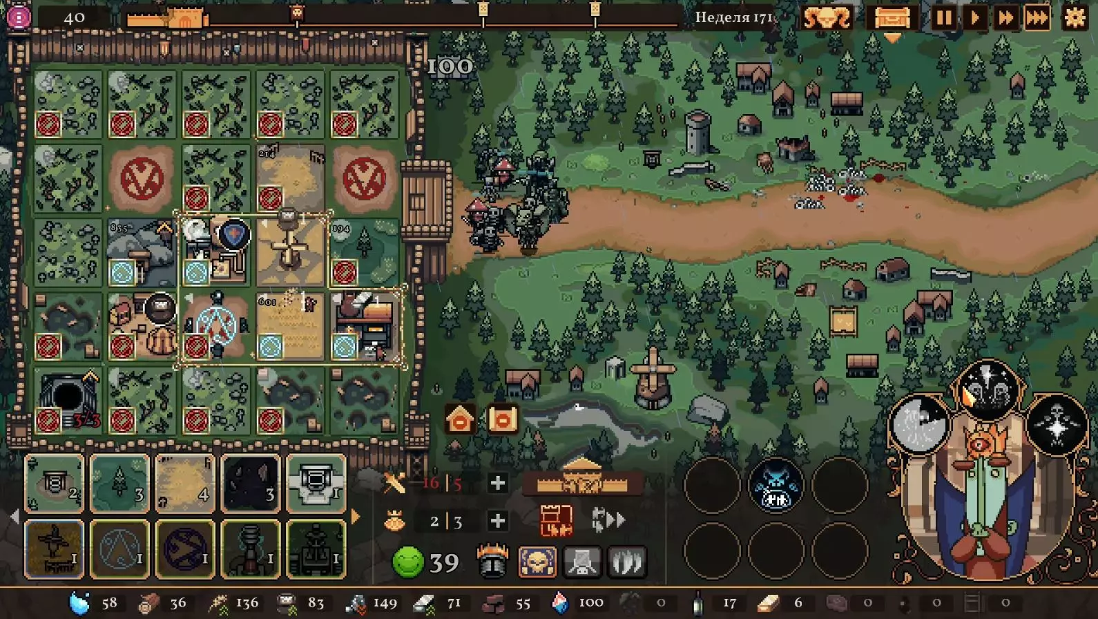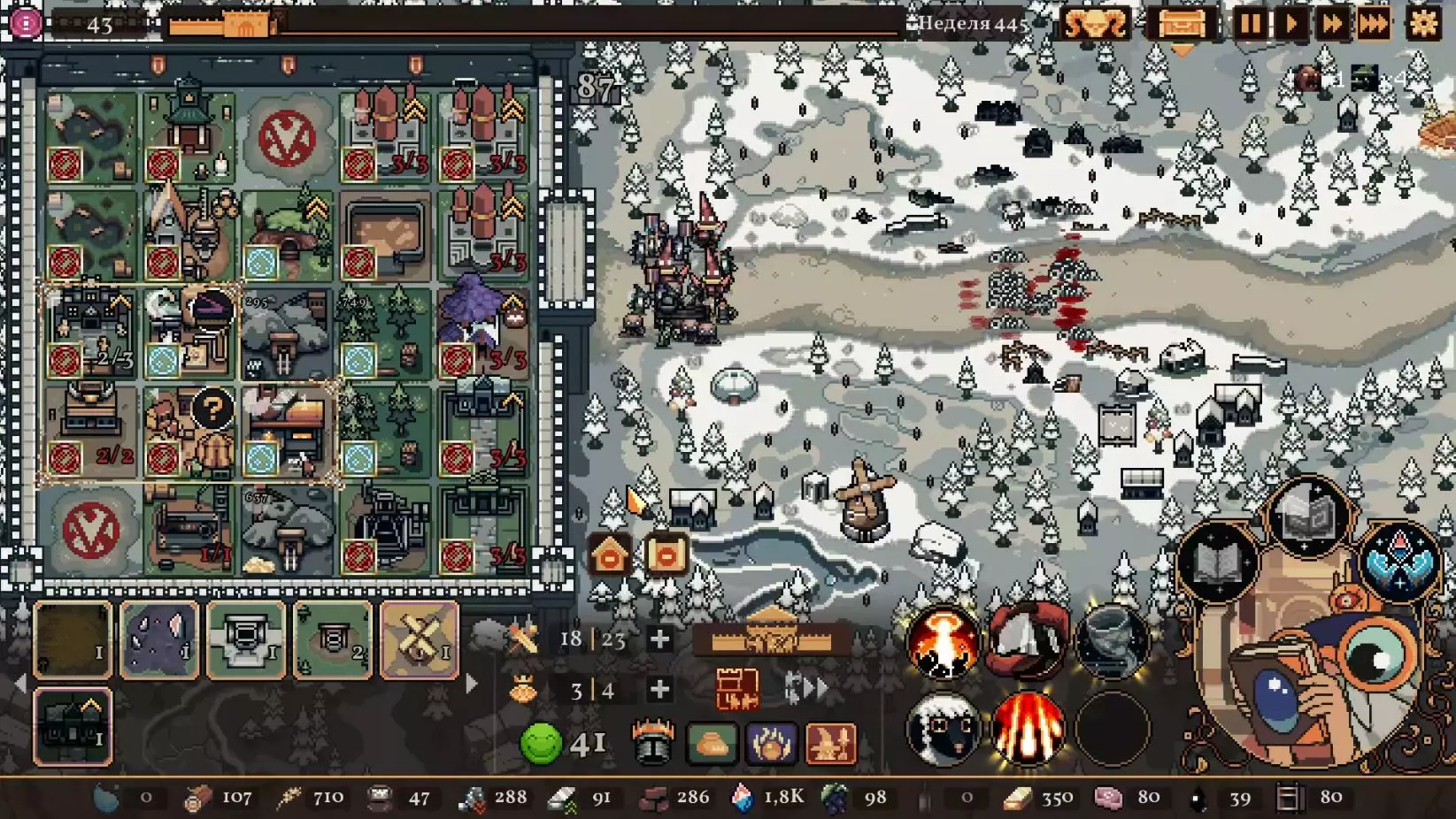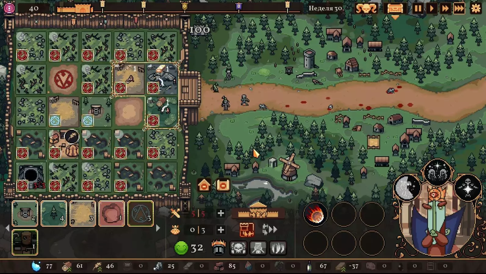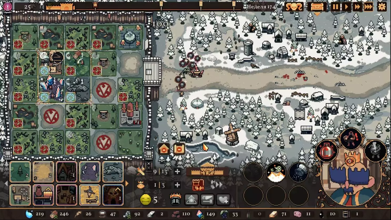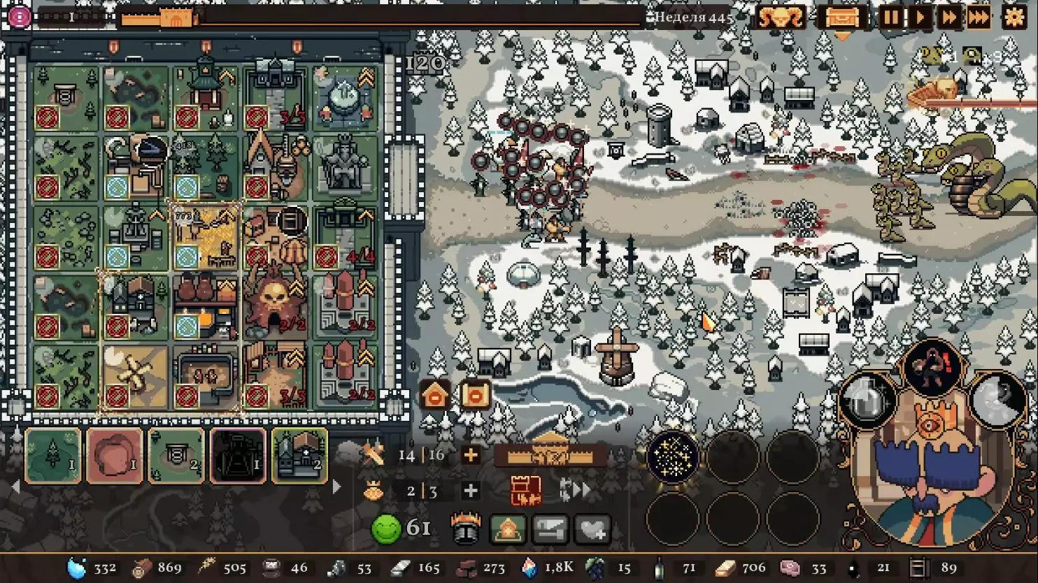 清理带有蓝色符文的格子。建造水井,然后种植小麦和树木。在旁边的空地或红色格子上建造市场并出售小麦。目标是快速积攒资源建造研究中心,并开始研究以下其中一种类型的部队:初级部队(刺客)或精英部队(水晶战士)。之后再根据游戏进展来决定是补充现有单位还是寻找其他单位。无论如何,一定要研究高级生产——面粉和铸锭。也就是说,如果对军队有信心,就研究生产;如果没有信心,就研究单位。 局势在任何情况下都很大程度上取决于随机因素。有时就是不顺利,找不到所需的资源,得不到神器,甚至在第五回合后都抽不到需要的单位。 所需资源(参考): 对于水晶单位——3-4个200单位的水晶(或1个1000单位的水晶),2-3个200单位的黏土。之后——2-3个铁矿,每个200单位资源,或者1个铁矿1000单位资源;1-2块麦田;1-2个锯木厂。 对于流民来说,大体上也是如此,只是需要更多的铁矿,以及1单位的水晶和1单位的黏土。 如果在大约第120周时,你还没有强力单位,那么在规划敌人波次时,最好只选择一种类型的敌人。不要贪心。 对付第一个 boss,有1个水晶战士、初始的2个火枪手,再加上一些流民作为支援就足够了。我的选择是狂徒。它们由黏土建造而成,生命力顽强,能够提升士气并对敌人造成伤害。 第二个首领战如果遇到龙就很糟糕。这家伙会把所有远程单位都烧成灰烬。战术是:先把法师藏在城堡里,开始时只留1个单位。每完成一个阶段,再放出一个。 到这个时候,需要用强大的单位来加强军队,并且一定要添加治疗师。要开始生产锭和面粉,通过采集木材来增加军队上限。第三个首领 通常此时资源已经足够,单位数量应该会受限于人口上限。如果所有科技都已研究完成,研究中心可以拆除;否则应研究基础设施科技,以建造竞技场、医院和/或国王雕像。有时建造精灵井和佛教寺庙会很有用。非常重要的是建造英雄雕像,并持续升级单位(冠军+法师或新兵)。 1. 博杜安