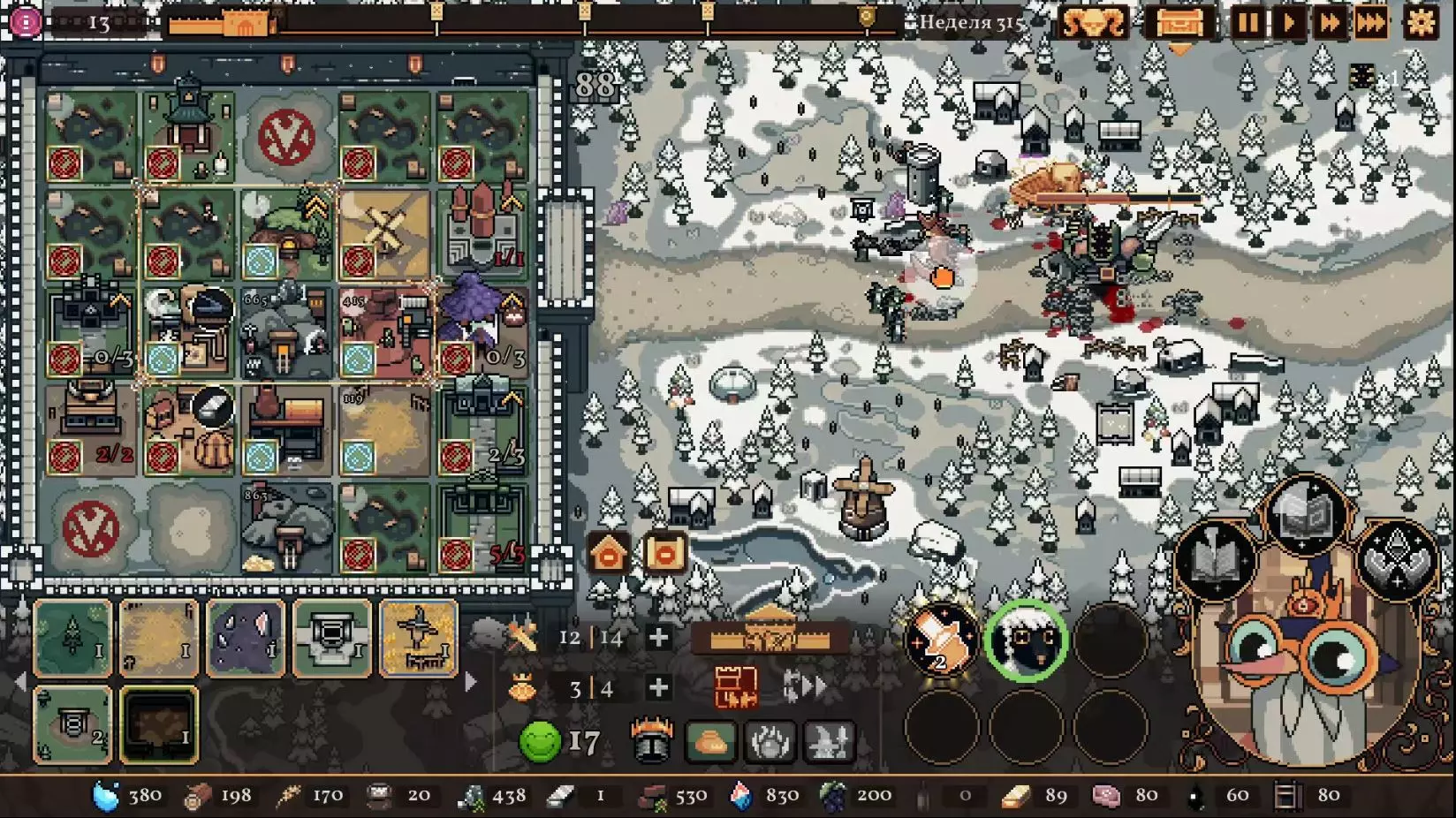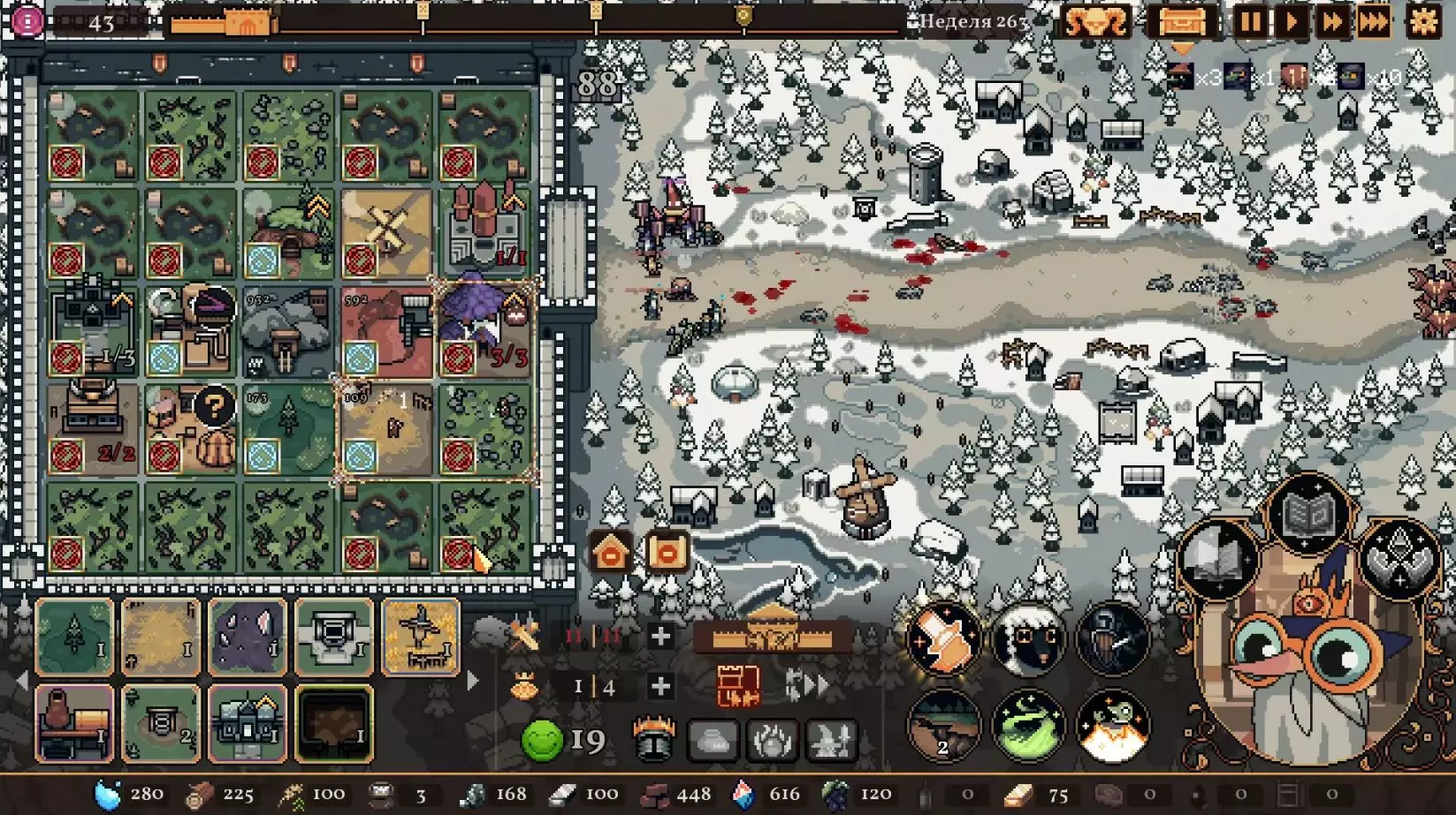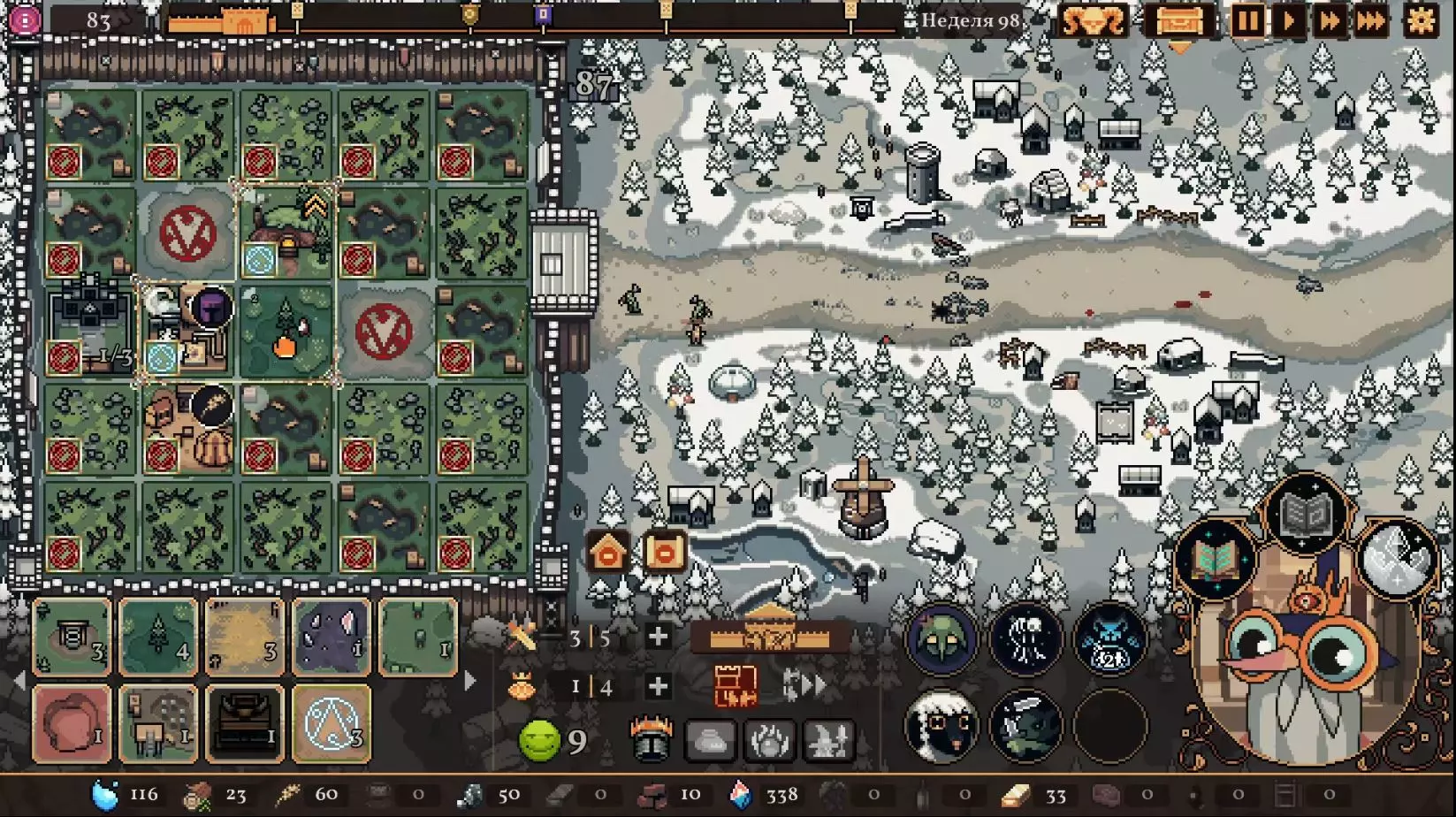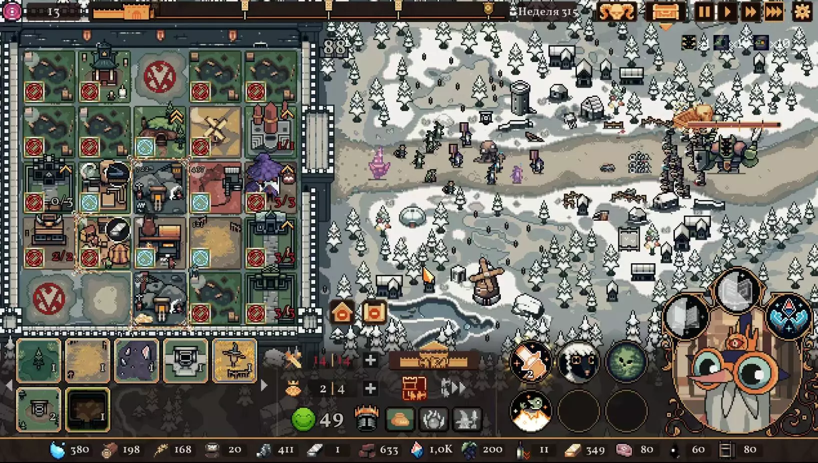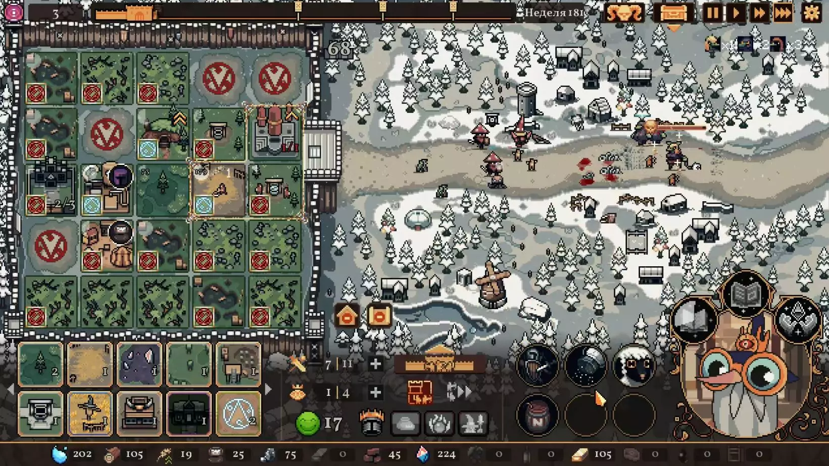 清理带有蓝色符文的格子。建造水井,然后种植小麦和树木。在旁边的空地或红色格子上建造市场并出售小麦。目标是快速积攒资源建造研究中心,并开始研究以下其中一种类型的部队:初级部队(刺客)或精英部队(水晶战士)。之后再根据游戏进展来决定是补充现有单位还是寻找其他单位。无论如何,一定要研究高级生产——面粉和铸锭。也就是说,如果对军队有信心,就研究生产;如果没有信心,就研究单位。 局势在任何情况下都很大程度上取决于随机因素。有时就是不顺利,找不到所需的资源,得不到神器,甚至在第五回合后都抽不到需要的单位。 所需资源(参考): 对于水晶单位——3-4个200单位的水晶(或1个1000单位的水晶),2-3个200单位的黏土。之后——2-3个铁矿,每个200单位资源,或者1个铁矿1000单位资源;1-2块麦田;1-2个锯木厂。 对于流民来说,大体上也是如此,只是需要更多的铁矿,以及1单位的水晶和1单位的黏土。 如果在大约第120周时,你还没有强力单位,那么在规划敌人波次时,最好只选择一种类型的敌人。不要贪心。 对付第一个 boss,有1个水晶战士、初始的2个火枪手,再加上一些流民作为支援就足够了。我的选择是狂徒。它们由黏土建造而成,生命力顽强,能够提升士气并对敌人造成伤害。 第二个首领战如果遇到龙就很糟糕。这家伙会把所有远程单位都烧成灰烬。战术是:先把法师藏在城堡里,开始时只留1个单位。每完成一个阶段,再放出一个。 到这个时候,需要用强大的单位来加强军队,并且一定要添加治疗师。要开始生产锭和面粉,通过采集木材来增加军队上限。第三个首领 通常此时资源已经足够,单位数量应该会受限于人口上限。如果所有科技都已研究完成,研究中心可以拆除;否则应研究基础设施科技,以建造竞技场、医院和/或国王雕像。有时建造精灵井和佛教寺庙会很有用。非常重要的是建造英雄雕像,并持续升级单位(冠军+法师或新兵)。 1. 博杜安