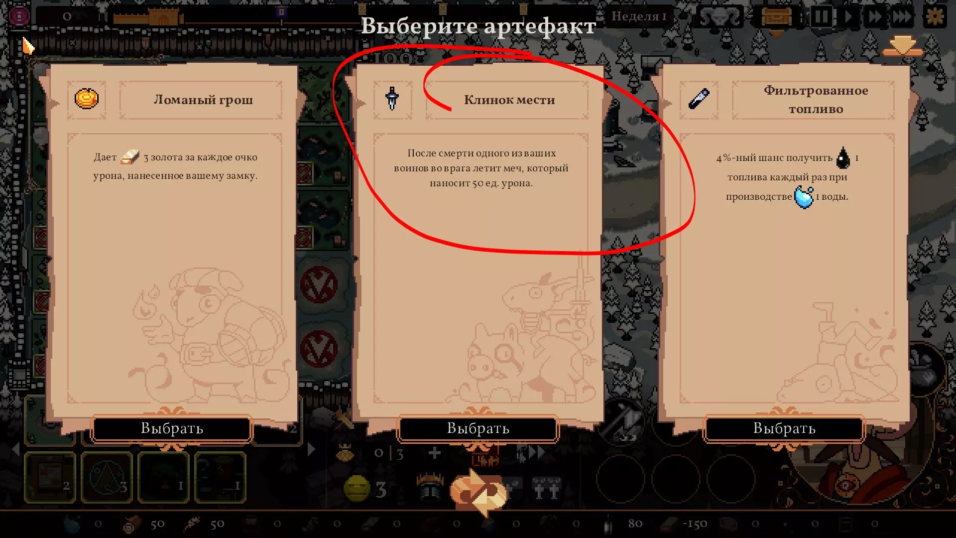 那我们就选匕首!凭借大量农民,每人造成50点伤害,这效果很可观。或者治疗旗帜也会很有用!