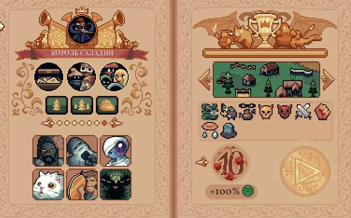 准备 顾问 - 扬塔留斯、宙斯、索菲、黑豹、菲利克斯、寻金者。 第六位选择寻金者(用于开局)或鹰身女妖(有助于查看首领阵容并在必要时重新开始关卡)。 国王 玩法风格类似博杜安,但侧重于军队多样性。拥有最大的7级洞察。 战斗精神:每有一个独特单位在场,获得+3战斗精神。战斗精神使伤害提高1%。核心机制:你的军队种类越多样化,实力就越强。 技能: - 图纸:随机图纸。按冷却时间使用。 - 召唤普通单位:获得单位,按冷却时间使用。 - 召唤强力单位:获得强力单位,同样按冷却时间使用,需要消耗肉类资源。单位会受到数量限制,因此需要不断提升上限。 策略/单位基础:水晶战士(和其他地方一样,这是最可靠的基础单位)。萨拉丁的特性:尽量在战场上保持不同单位(即使是弱小单位)或临时生物各1个。 升级与波次:优先为水晶单位寻找强化,以及装备。 装备: 【重要】:提升2号和3号技能的使用次数上限并缩短冷却时间。 多样性:临时单位(弓箭手、鹅、青蛙、章鱼)——它们被视为独特单位,可提升全军伤害。资源:150份肉(可让你尽早召唤强力单位),击杀敌人获得葡萄酒/水晶,水井产出葡萄酒 特性:治愈旗帜,单位生命值 游戏初期,第一个 Boss 开始: 选择带有资源的单位。按标准流程行动(水井→小麦) 目标:快速解锁实验室以寻找水晶战士 重要:至少升级一次洞察 同时进行水晶和黏土的采集打 Boss 时尽量安排 1 个水晶战士。 第二个 Boss 阶段要加强军队。争取再培养一个水晶战士,寻找闪电法师和治疗者的配方。之后需要肉类、钢铁的配方,最后才是面粉的配方。有了肉类可以召唤强大的战士。总体来说,即使只有 1 个水晶战士,也能抵御到第二波 Boss。如果拥有所有战士和高级建筑的配方,就可以刷英雄雕像和国王雕像了。先升级单位,再更频繁地召唤它们。