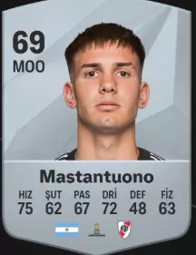 年龄:21 潜力:82 市场价值:800万 薪资:2万 即使是半成品也像维埃拉一样出色,希望别出问题。买的时候手别抖,找到中场球员是件难事 Franco Mastantuono