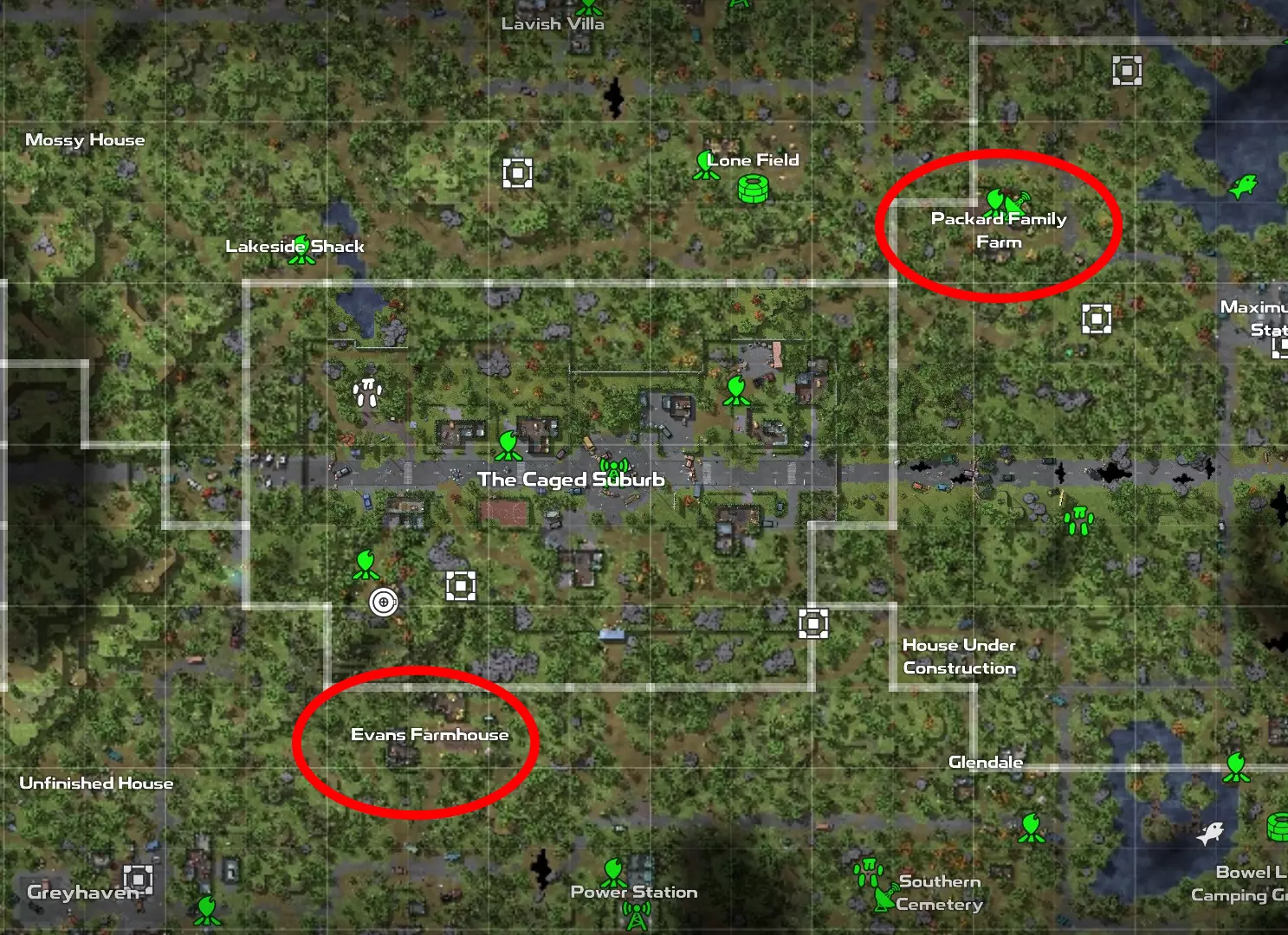先耕种再制作 我建议不要立刻用完所有材料,而是最好利用农田地块,在耗尽材料前获取更多资源。像帕卡德家族农场和埃文斯农舍这类地方有田地,你可以在那里轻松大量种植作物。地图南部可以找到热带农场(坐标1596° 814°),但它位于高温区域,前往前你需要准备一些装备。