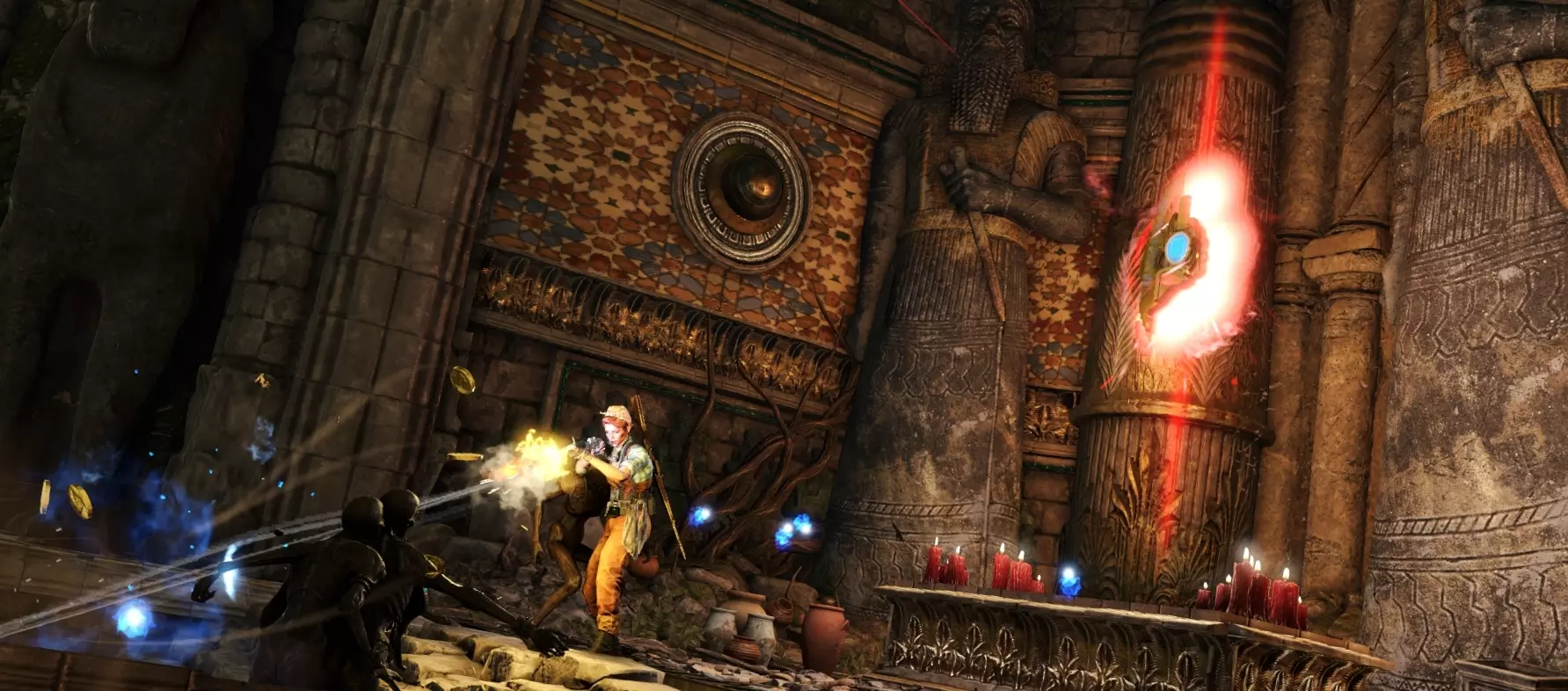 本区域可收集物品: 1只猫 1本日记 隐藏区域:诱人的宝藏... 如果这次你没有足够敏锐的眼光找到所有猫雕像,你只能俯视着这些耀眼的财富,一边哭泣一边想着本可以拥有的一切... 本区域可收集物品: 1本日记 寂静圣所 当你进入神庙内殿时,你会遇到埃及的守护者贝斯,他告诉你有人杀死了吞噬者阿米特。现在,生者与死者领域之间的大门无人看守。 你必须重铸他盾牌的碎片,这样他才能阻挡不受欢迎的亡灵。这只是解决一个谜题的问题,只不过... 你能在恶魔围攻中幸存下来吗!?