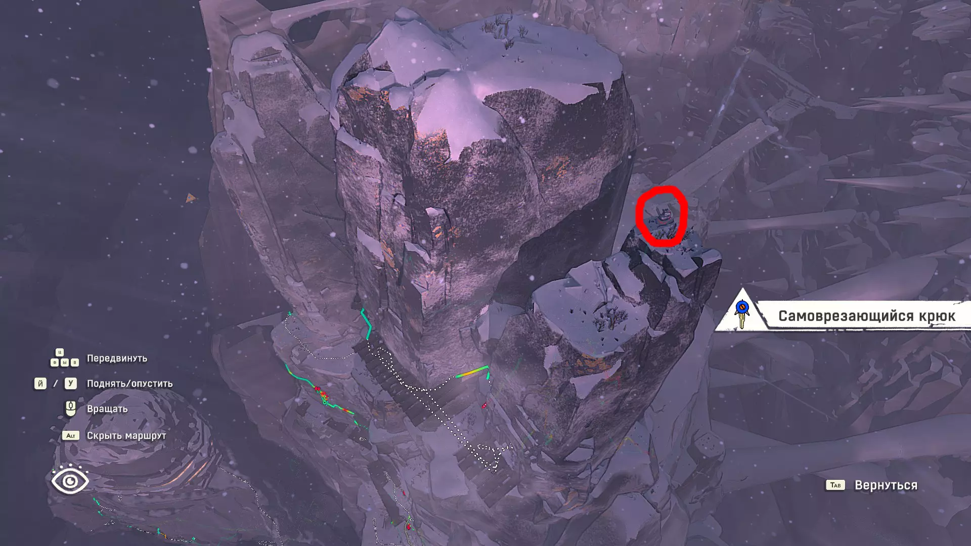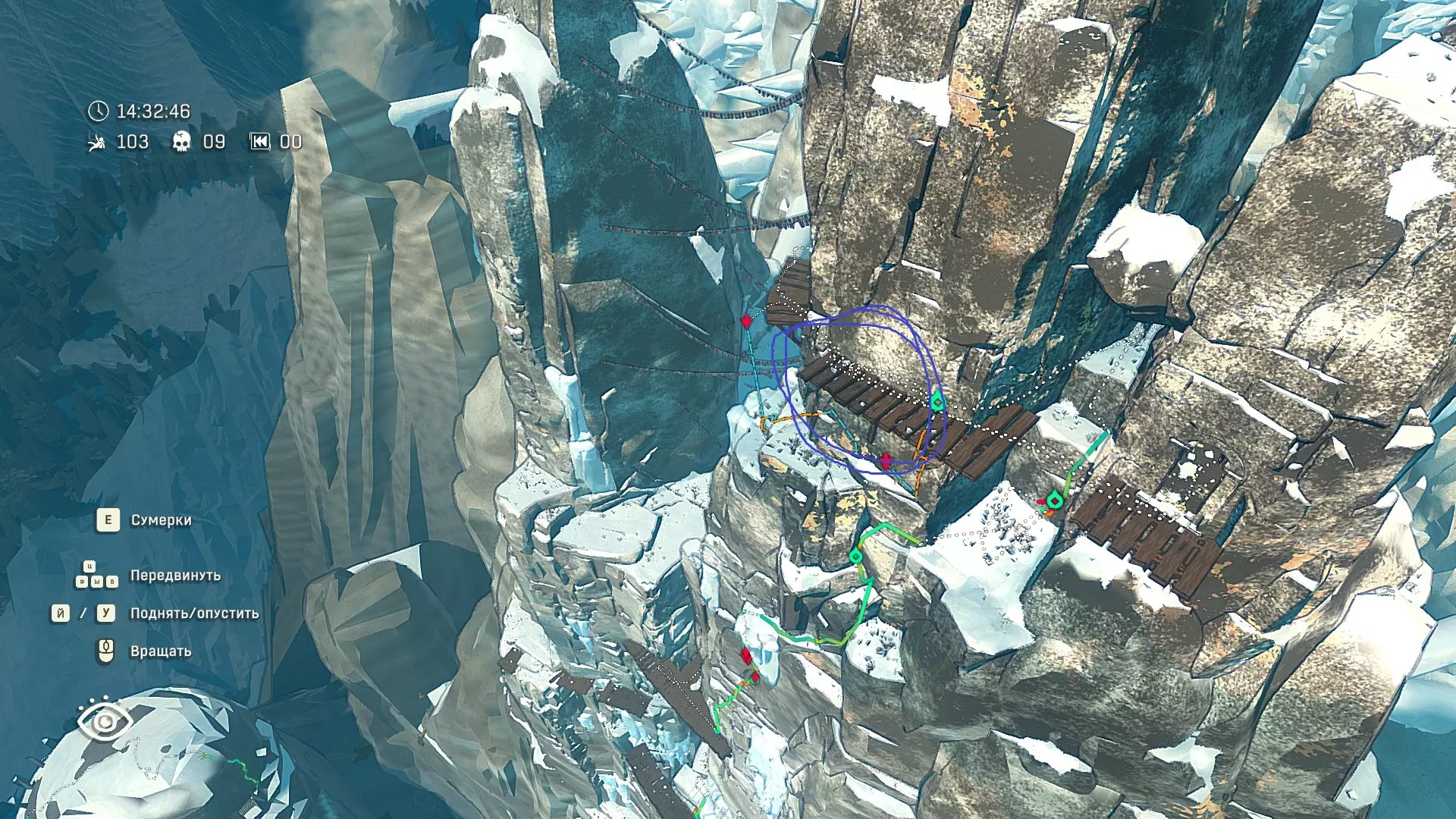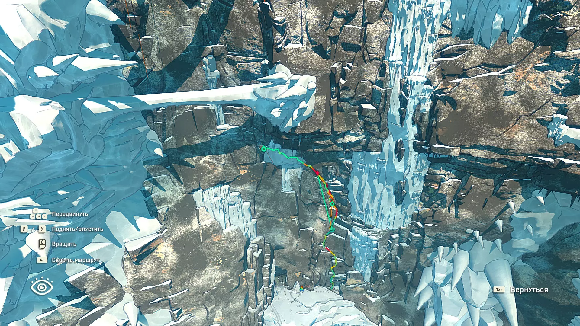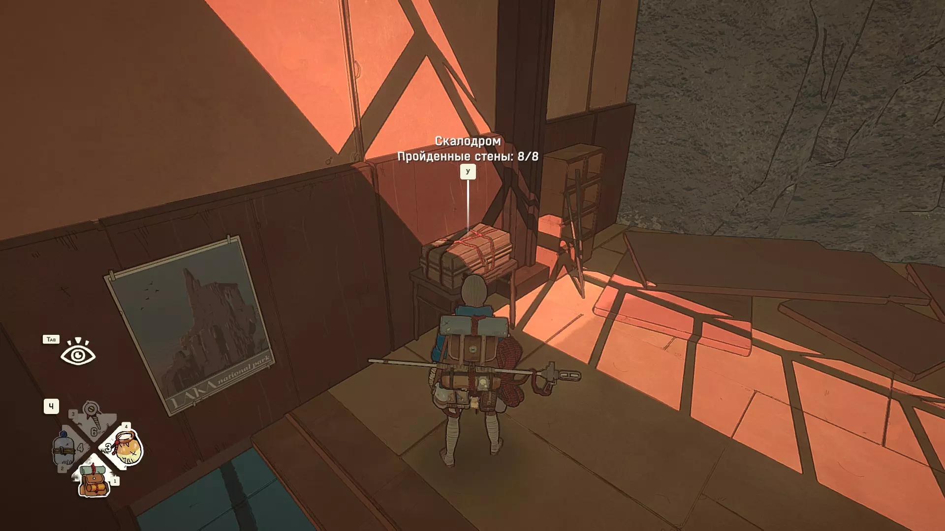 Полное руководство со скринами. Можно завершить за 1 заход (главное выбирайте концовку с уходом с горы, иначе придётся начинать всё сначала) Основные моменты перед началом сбора ачивок Игру можно проходить на любой сложности, на получение достижений это не влияет В идеале изучить либо все разделы руководства до начала игры, либо все разделы до «Достижения по порядку от низа до верха Ками» и начать игру, параллельно ориентируясь на указанный выше раздел Ближе к концу игры будет возможность либо спуститься с Марко, либо продолжить восхождение на Ками. Выбирайте сначала спуск, смотрите концовку, а только потом возвращайтесь в точку сохранения и выбирайте подъем. Иначе игру придется проходить во второй раз 10 лайфхаков Лайфхаки и советы по прохождению (их всего 10, дальше все ачивки со скриншотами): 1. Можно смотреть маршрут выше/ниже, изучать нужные места либо с помощью Esc — Фоторежим, либо через Tab — Alt (он же Esc — Загрузить). В фоторежиме на третьей вкладке есть управление временем суток и погодой. Если управление погодой заедает, то просто поменяйте его еще раз. Tab сам по себе дает небольшой кругозор, а Alt уже позволяет летать намного дальше. Q (Й) и E (У) меняет высоту. 2. Когда хотите спуститься вниз, стоя у склона, игра выдает два варианта: спуститься через английскую Е (русскую У), либо через левую кнопку мыши. При первом варианте вбивается крюк, при втором нет. Но если во время вбивания крюка нажимать одну или несколько любых кнопок, то крюк ломается. 3. Максимально экономьте крюки. Они никогда не бывают лишними. Поэтому если после одного участка сломалось сразу крюка три, то это хороший повод откатиться к предыдущему сохранению (если позволяет сложность игры). Вообще, в любой ситуации откат к сохранению помогает. Например, его можно использовать после получения затратной по ресурсам ачивки. 4. Сломанный фотоаппарат, который дается после прохождения карты из демки и выбора «Начать восхождение» в начале игры, нужно утилизировать на Q (Й). Это необязательное, но сюжетное действие, о котором упоминается в монологе Аавы после звонка Криса. 5. Вставать на автостраховку можно несколько раз. Например, если крюк вбит перед сложным моментом, на котором Аава сама бы упала, то можно встать на автостраховку, пролезть до момента, когда она вот-вот упадет, встать на автостраховку, а потом снова лезть. 6. Если долезли до ровной поверхности, но Аава не становится на нее, а продолжает якобы лезть, то спрыгнуть можно на правую кнопку мыши. Главное убедиться, что точно есть, куда спрыгивать, и Аава от этого не улетит в пропасть. 7. На скалодроме можно найти много крюков и монет как внизу, так и забравшись наверх после касания финиша и побродив там. Сверху или с любого места на скалодроме можно просто спрыгнуть на правую кнопку мыши: неприятно, да, но хп не снимет. 8. Смотрите на соотношение размера и пользы. Например, если большой предмет в рюкзаке дает мало еды, то проще его съесть и занять чем-то полезнее. 9. За монеты на скалодроме можно купить из еды: - Злаковый батончик: +40 еды - Бодрящий мармелад: +10 еды - Фруктовый батончик: +30 еды, -10 воды - Изюм: +20 еды Из питья: - Желтый як: +20 воды, 1 минута хватки - Горная кола: +20 воды, 2 минуты выдержки Я каждый раз беру 1 желтый як, 1 горную колу и на остальные монеты закупаюсь злаковыми батончиками. Можете делать по-другому, теперь список со все