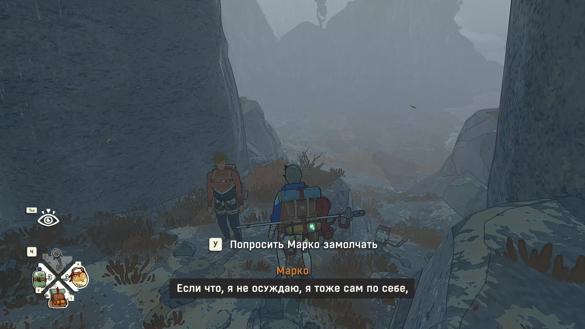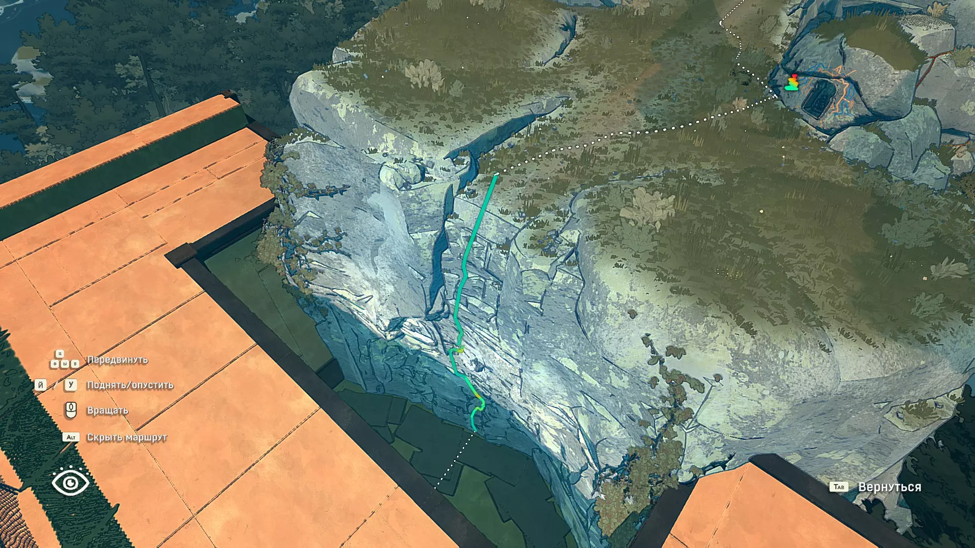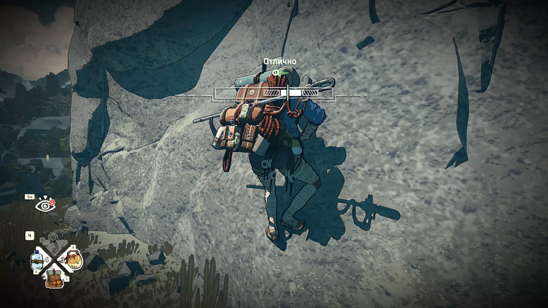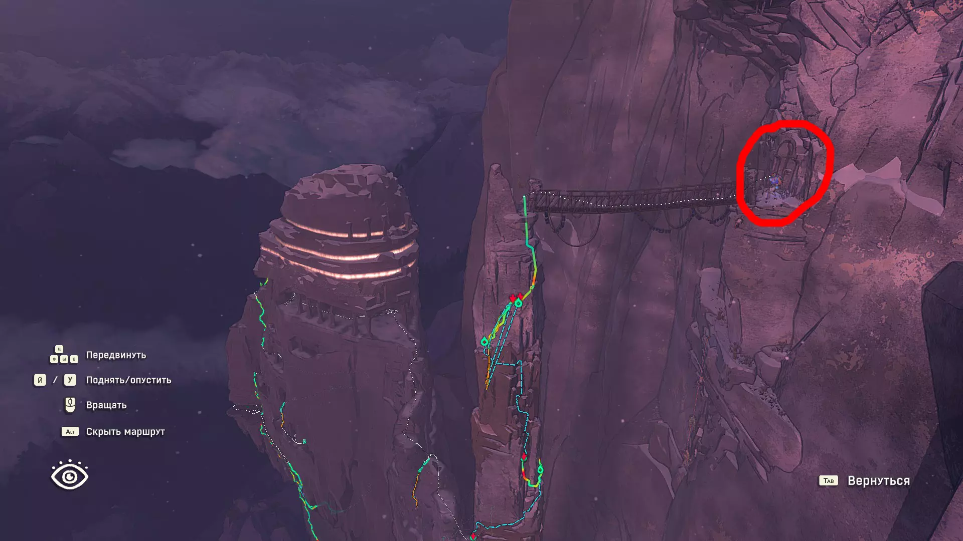 Полное руководство со скринами. Можно завершить за 1 заход (главное выбирайте концовку с уходом с горы, иначе придётся начинать всё сначала) Основные моменты перед началом сбора ачивок Игру можно проходить на любой сложности, на получение достижений это не влияет В идеале изучить либо все разделы руководства до начала игры, либо все разделы до «Достижения по порядку от низа до верха Ками» и начать игру, параллельно ориентируясь на указанный выше раздел Ближе к концу игры будет возможность либо спуститься с Марко, либо продолжить восхождение на Ками. Выбирайте сначала спуск, смотрите концовку, а только потом возвращайтесь в точку сохранения и выбирайте подъем. Иначе игру придется проходить во второй раз 10 лайфхаков Лайфхаки и советы по прохождению (их всего 10, дальше все ачивки со скриншотами): 1. Можно смотреть маршрут выше/ниже, изучать нужные места либо с помощью Esc — Фоторежим, либо через Tab — Alt (он же Esc — Загрузить). В фоторежиме на третьей вкладке есть управление временем суток и погодой. Если управление погодой заедает, то просто поменяйте его еще раз. Tab сам по себе дает небольшой кругозор, а Alt уже позволяет летать намного дальше. Q (Й) и E (У) меняет высоту. 2. Когда хотите спуститься вниз, стоя у склона, игра выдает два варианта: спуститься через английскую Е (русскую У), либо через левую кнопку мыши. При первом варианте вбивается крюк, при втором нет. Но если во время вбивания крюка нажимать одну или несколько любых кнопок, то крюк ломается. 3. Максимально экономьте крюки. Они никогда не бывают лишними. Поэтому если после одного участка сломалось сразу крюка три, то это хороший повод откатиться к предыдущему сохранению (если позволяет сложность игры). Вообще, в любой ситуации откат к сохранению помогает. Например, его можно использовать после получения затратной по ресурсам ачивки. 4. Сломанный фотоаппарат, который дается после прохождения карты из демки и выбора «Начать восхождение» в начале игры, нужно утилизировать на Q (Й). Это необязательное, но сюжетное действие, о котором упоминается в монологе Аавы после звонка Криса. 5. Вставать на автостраховку можно несколько раз. Например, если крюк вбит перед сложным моментом, на котором Аава сама бы упала, то можно встать на автостраховку, пролезть до момента, когда она вот-вот упадет, встать на автостраховку, а потом снова лезть. 6. Если долезли до ровной поверхности, но Аава не становится на нее, а продолжает якобы лезть, то спрыгнуть можно на правую кнопку мыши. Главное убедиться, что точно есть, куда спрыгивать, и Аава от этого не улетит в пропасть. 7. На скалодроме можно найти много крюков и монет как внизу, так и забравшись наверх после касания финиша и побродив там. Сверху или с любого места на скалодроме можно просто спрыгнуть на правую кнопку мыши: неприятно, да, но хп не снимет. 8. Смотрите на соотношение размера и пользы. Например, если большой предмет в рюкзаке дает мало еды, то проще его съесть и занять чем-то полезнее. 9. За монеты на скалодроме можно купить из еды: - Злаковый батончик: +40 еды - Бодрящий мармелад: +10 еды - Фруктовый батончик: +30 еды, -10 воды - Изюм: +20 еды Из питья: - Желтый як: +20 воды, 1 минута хватки - Горная кола: +20 воды, 2 минуты выдержки Я каждый раз беру 1 желтый як, 1 горную колу и на остальные монеты закупаюсь злаковыми батончиками. Можете делать по-другому, теперь список со все