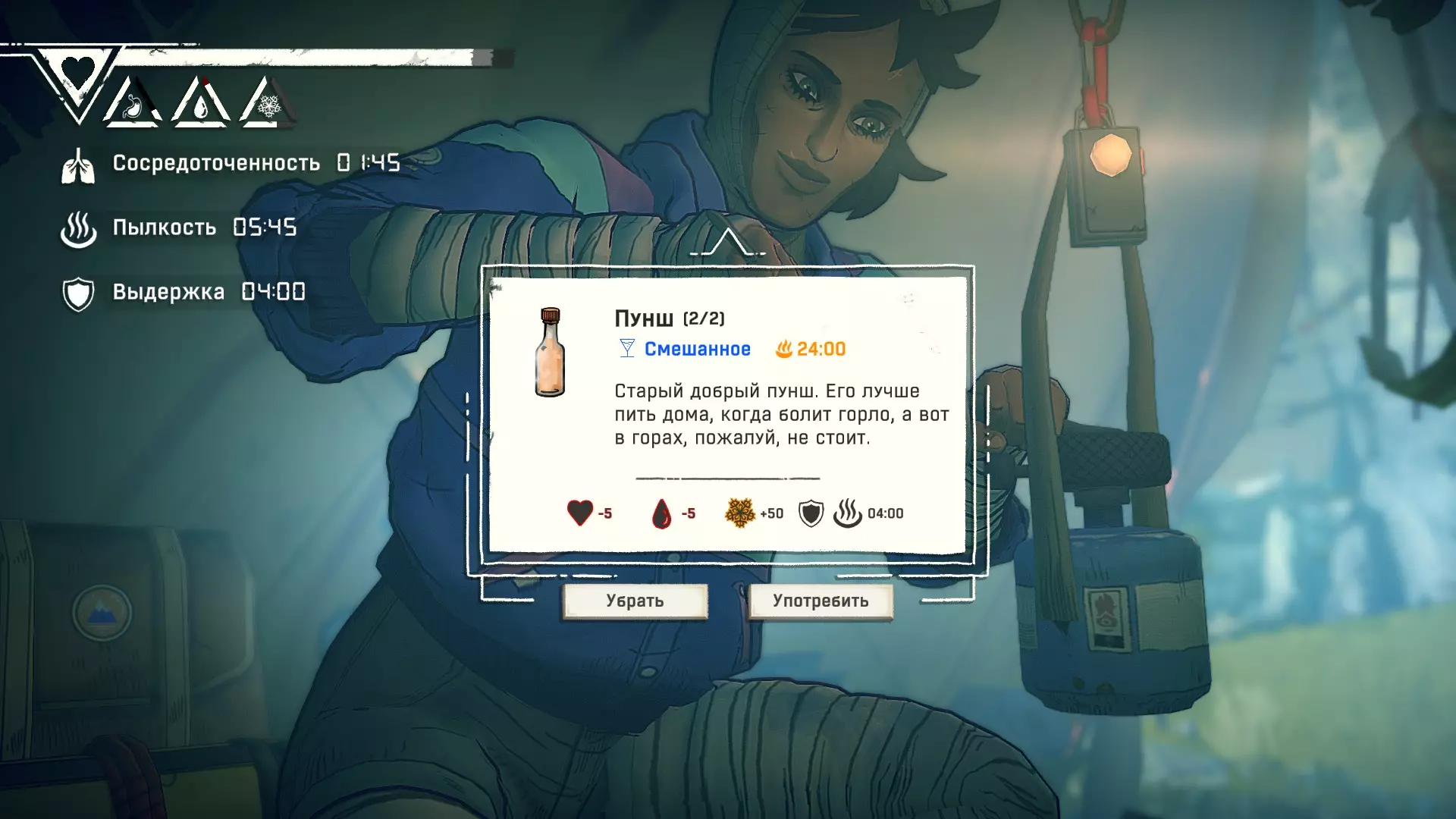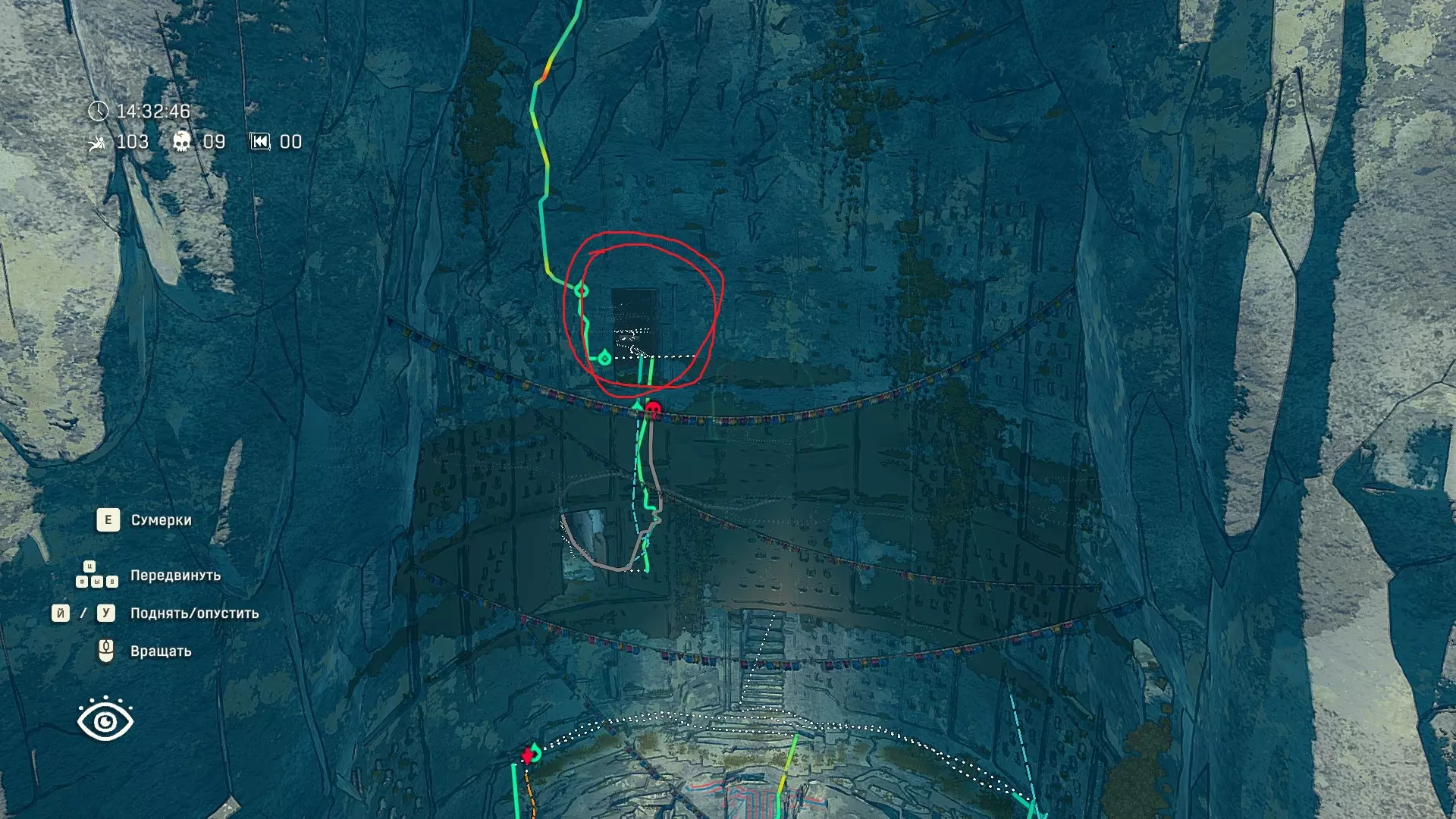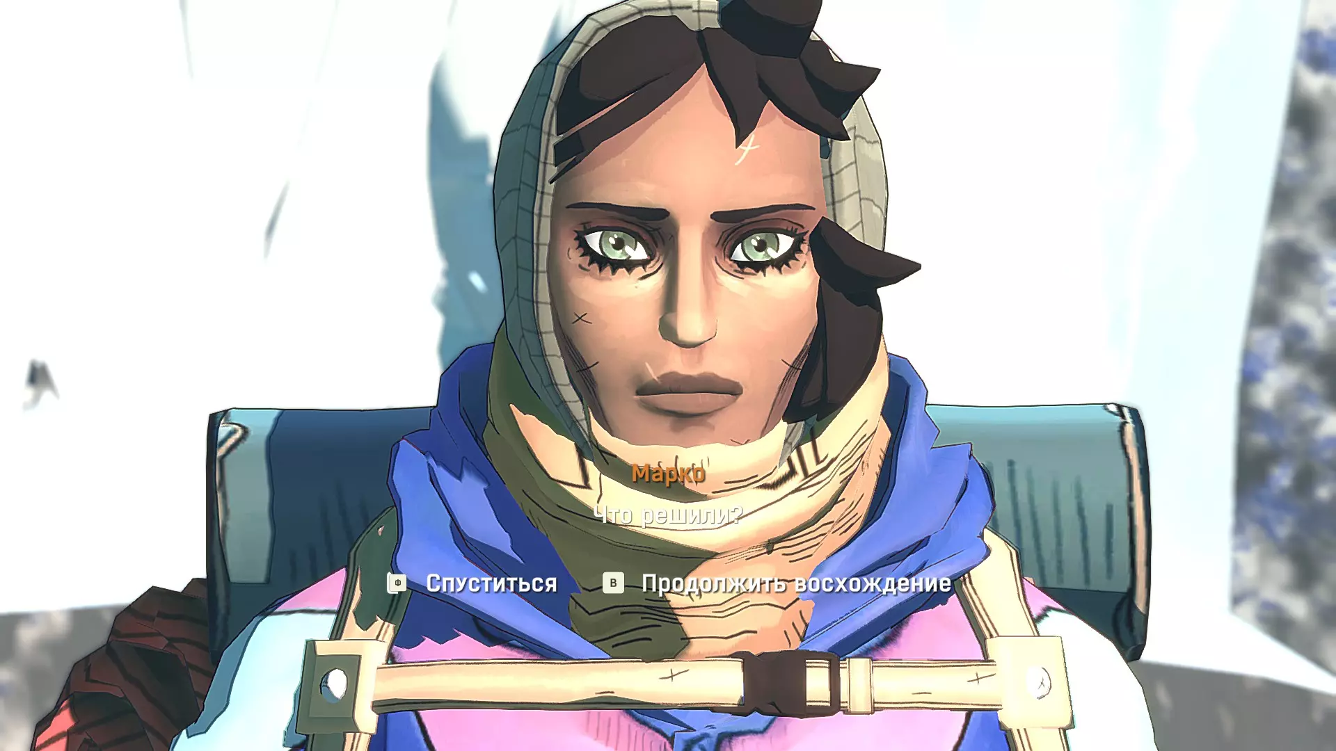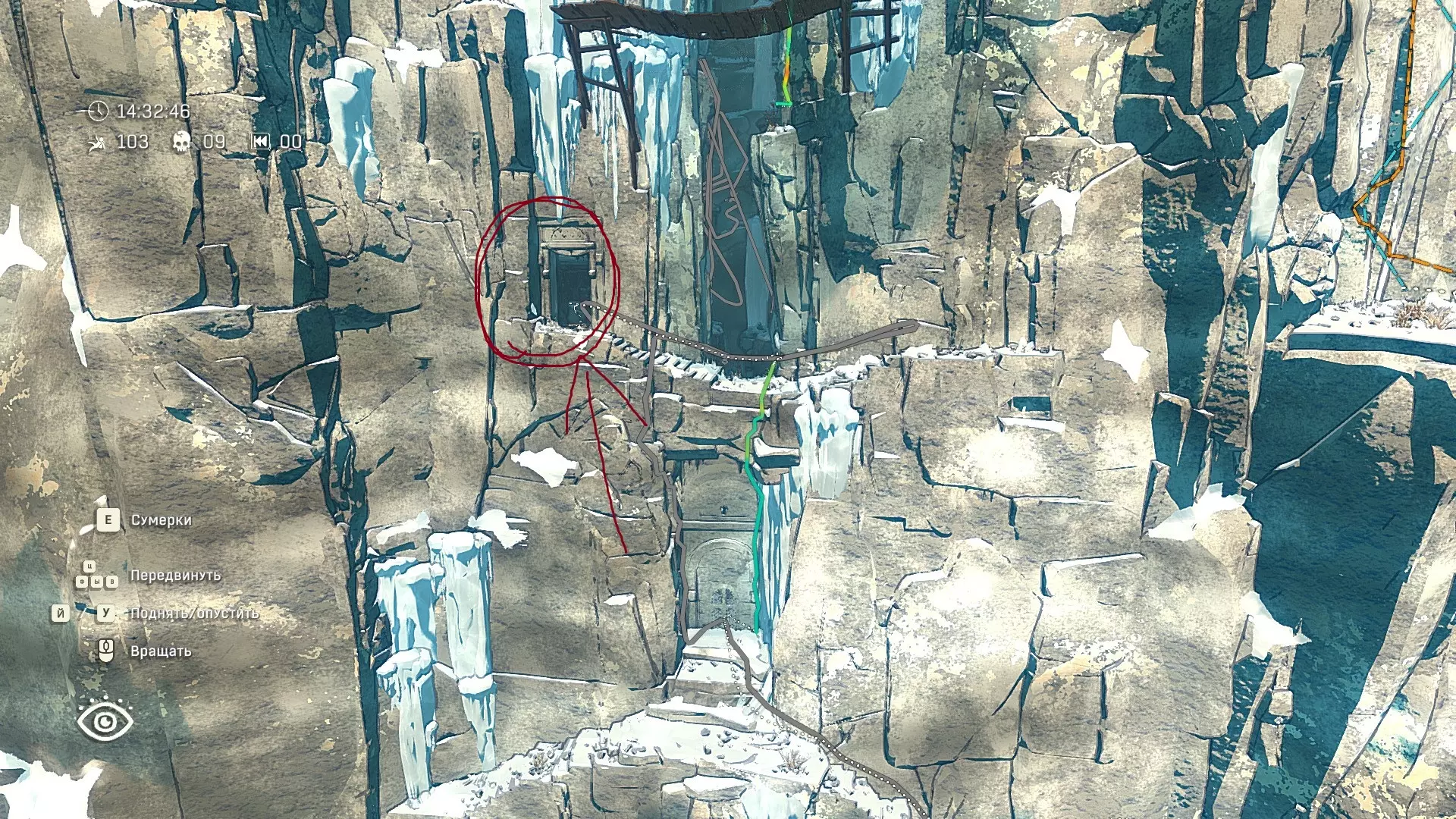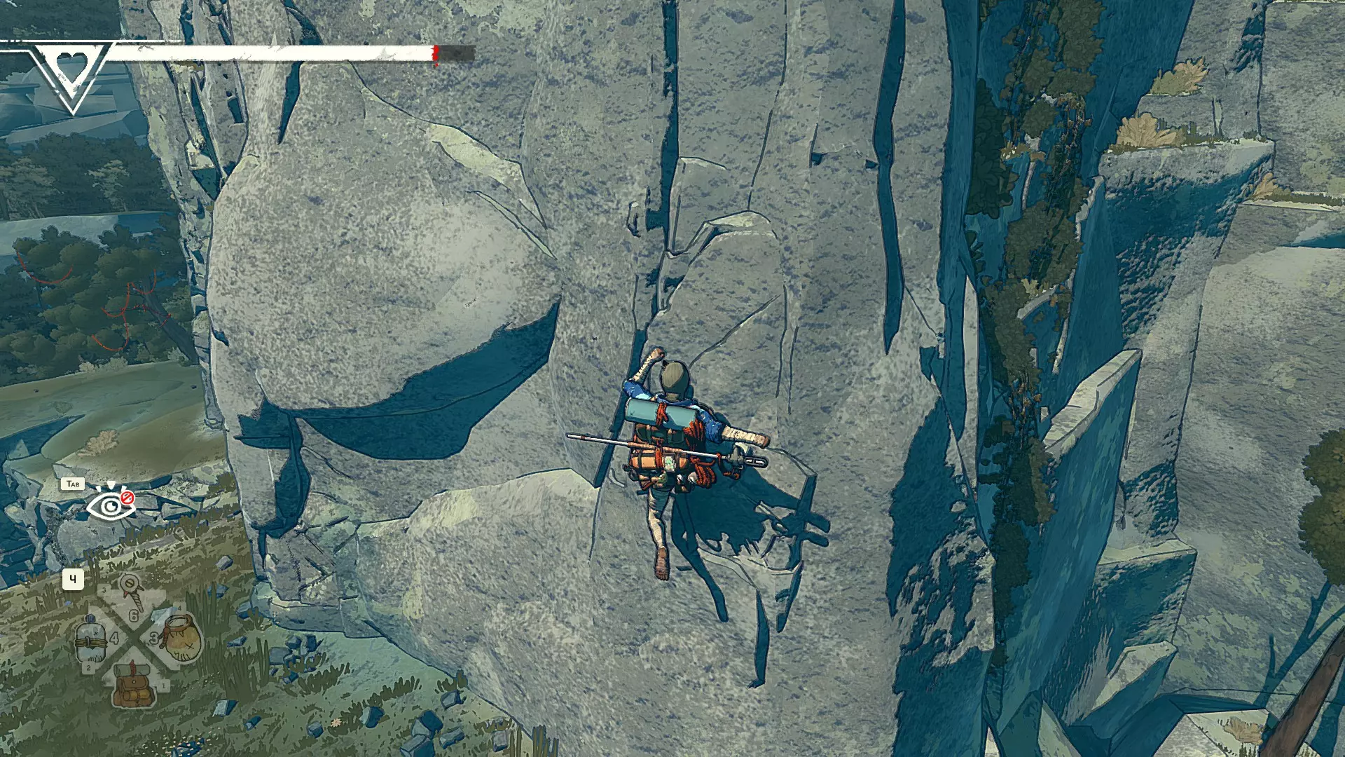 Полное руководство со скринами. Можно завершить за 1 заход (главное выбирайте концовку с уходом с горы, иначе придётся начинать всё сначала) Основные моменты перед началом сбора ачивок Игру можно проходить на любой сложности, на получение достижений это не влияет В идеале изучить либо все разделы руководства до начала игры, либо все разделы до «Достижения по порядку от низа до верха Ками» и начать игру, параллельно ориентируясь на указанный выше раздел Ближе к концу игры будет возможность либо спуститься с Марко, либо продолжить восхождение на Ками. Выбирайте сначала спуск, смотрите концовку, а только потом возвращайтесь в точку сохранения и выбирайте подъем. Иначе игру придется проходить во второй раз 10 лайфхаков Лайфхаки и советы по прохождению (их всего 10, дальше все ачивки со скриншотами): 1. Можно смотреть маршрут выше/ниже, изучать нужные места либо с помощью Esc — Фоторежим, либо через Tab — Alt (он же Esc — Загрузить). В фоторежиме на третьей вкладке есть управление временем суток и погодой. Если управление погодой заедает, то просто поменяйте его еще раз. Tab сам по себе дает небольшой кругозор, а Alt уже позволяет летать намного дальше. Q (Й) и E (У) меняет высоту. 2. Когда хотите спуститься вниз, стоя у склона, игра выдает два варианта: спуститься через английскую Е (русскую У), либо через левую кнопку мыши. При первом варианте вбивается крюк, при втором нет. Но если во время вбивания крюка нажимать одну или несколько любых кнопок, то крюк ломается. 3. Максимально экономьте крюки. Они никогда не бывают лишними. Поэтому если после одного участка сломалось сразу крюка три, то это хороший повод откатиться к предыдущему сохранению (если позволяет сложность игры). Вообще, в любой ситуации откат к сохранению помогает. Например, его можно использовать после получения затратной по ресурсам ачивки. 4. Сломанный фотоаппарат, который дается после прохождения карты из демки и выбора «Начать восхождение» в начале игры, нужно утилизировать на Q (Й). Это необязательное, но сюжетное действие, о котором упоминается в монологе Аавы после звонка Криса. 5. Вставать на автостраховку можно несколько раз. Например, если крюк вбит перед сложным моментом, на котором Аава сама бы упала, то можно встать на автостраховку, пролезть до момента, когда она вот-вот упадет, встать на автостраховку, а потом снова лезть. 6. Если долезли до ровной поверхности, но Аава не становится на нее, а продолжает якобы лезть, то спрыгнуть можно на правую кнопку мыши. Главное убедиться, что точно есть, куда спрыгивать, и Аава от этого не улетит в пропасть. 7. На скалодроме можно найти много крюков и монет как внизу, так и забравшись наверх после касания финиша и побродив там. Сверху или с любого места на скалодроме можно просто спрыгнуть на правую кнопку мыши: неприятно, да, но хп не снимет. 8. Смотрите на соотношение размера и пользы. Например, если большой предмет в рюкзаке дает мало еды, то проще его съесть и занять чем-то полезнее. 9. За монеты на скалодроме можно купить из еды: - Злаковый батончик: +40 еды - Бодрящий мармелад: +10 еды - Фруктовый батончик: +30 еды, -10 воды - Изюм: +20 еды Из питья: - Желтый як: +20 воды, 1 минута хватки - Горная кола: +20 воды, 2 минуты выдержки Я каждый раз беру 1 желтый як, 1 горную колу и на остальные монеты закупаюсь злаковыми батончиками. Можете делать по-другому, теперь список со все