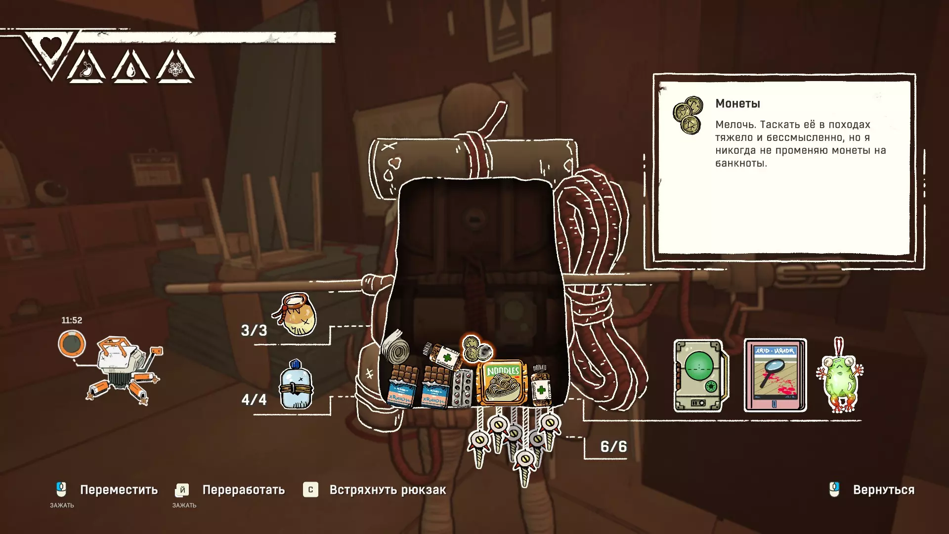 细致整理: 尝试整理背包 可以通过按C键或用鼠标拖动物品。如果无法操作,可以尝试将背包填满。另外,在背包几乎满的情况下,按C键并开始将物品从背包的一个部分移到另一个部分,可能会奏效。