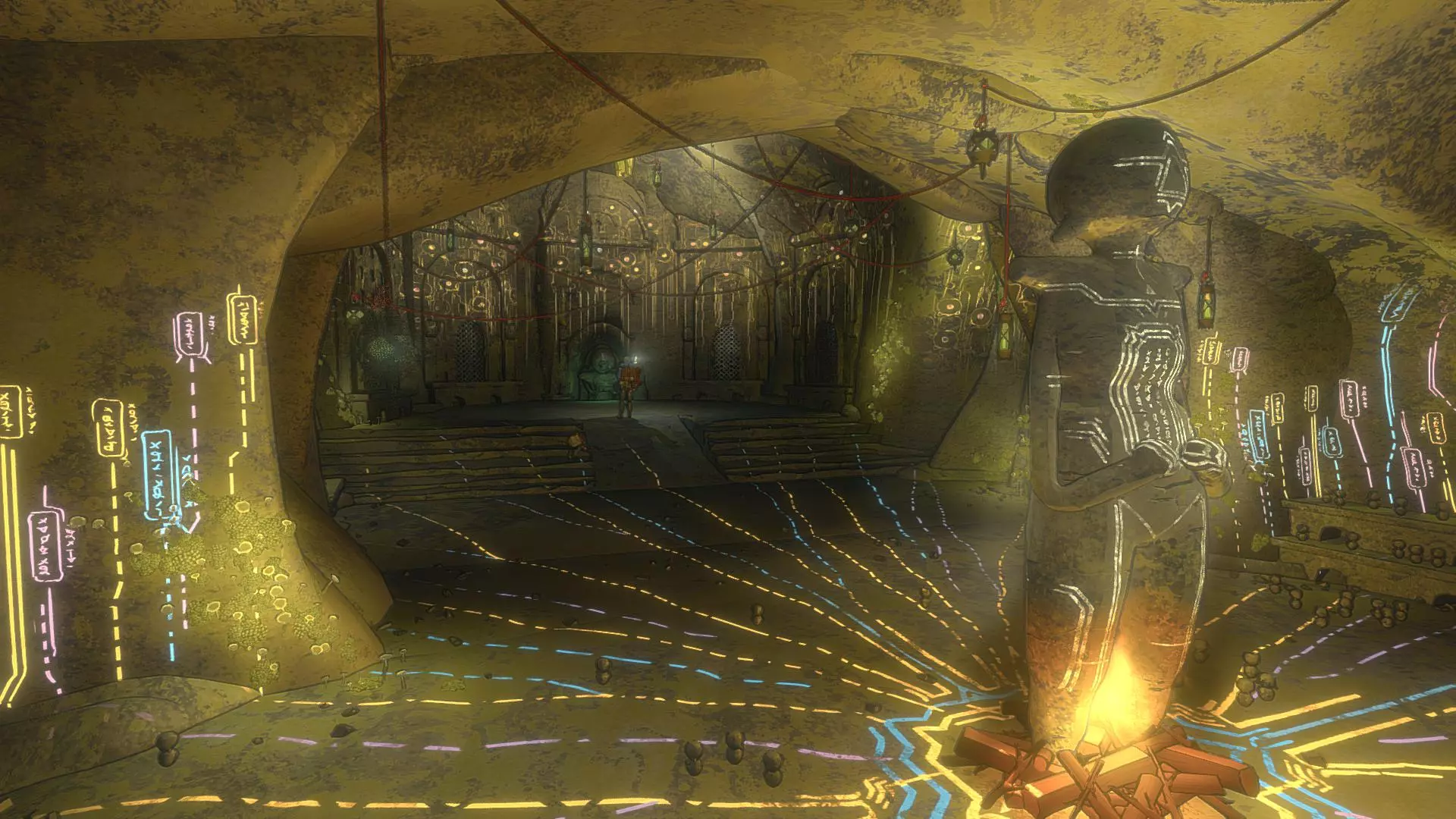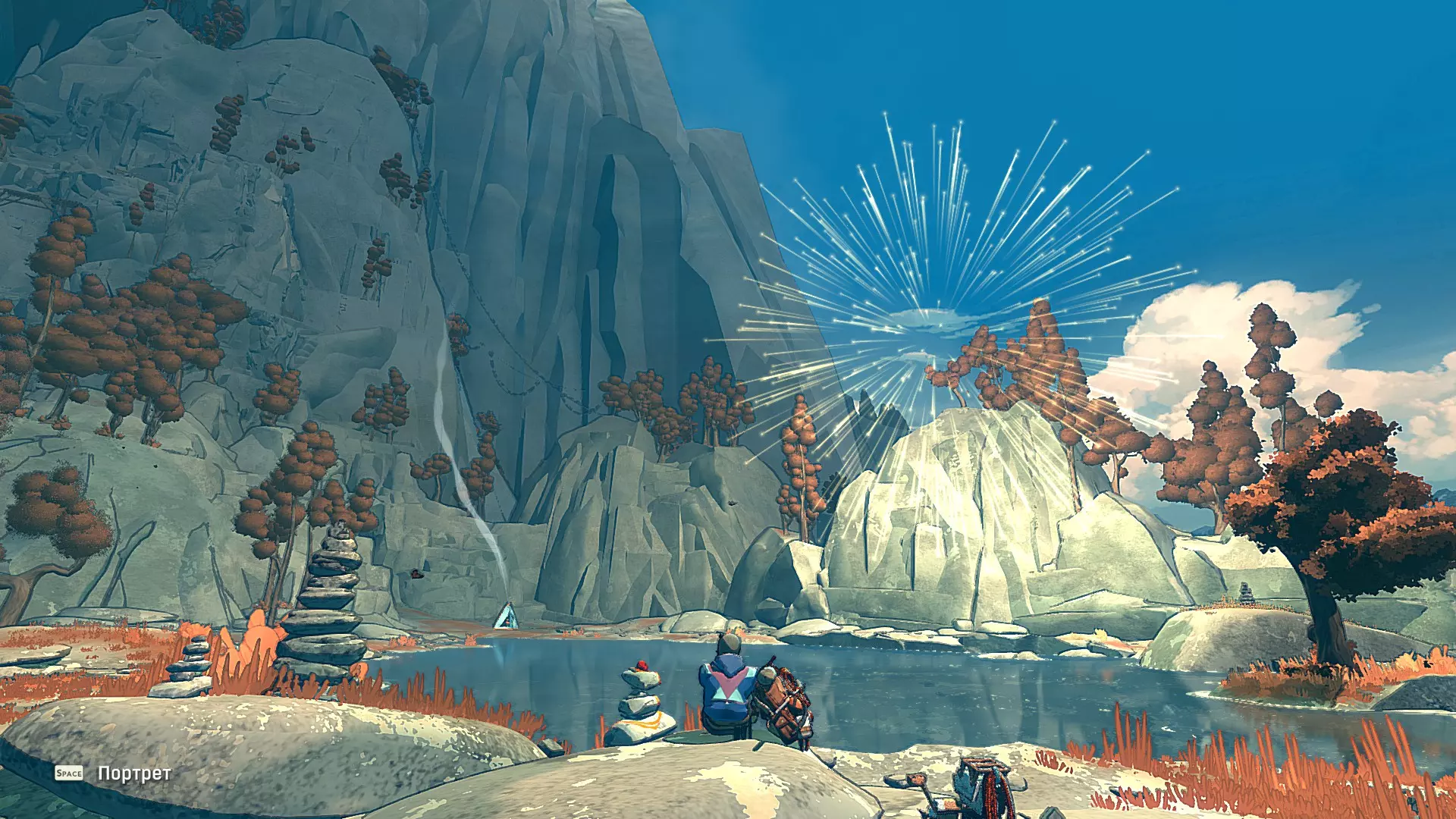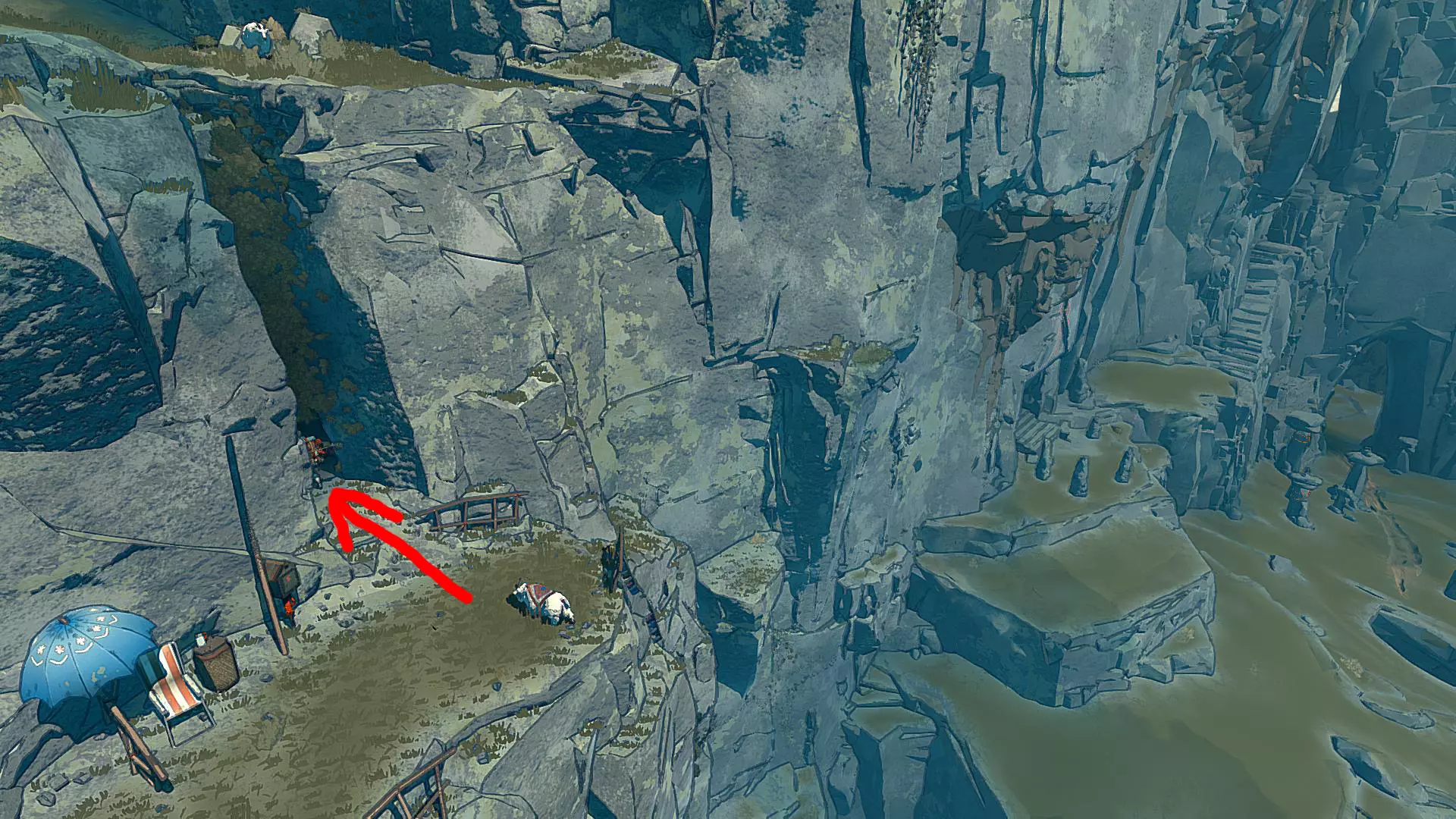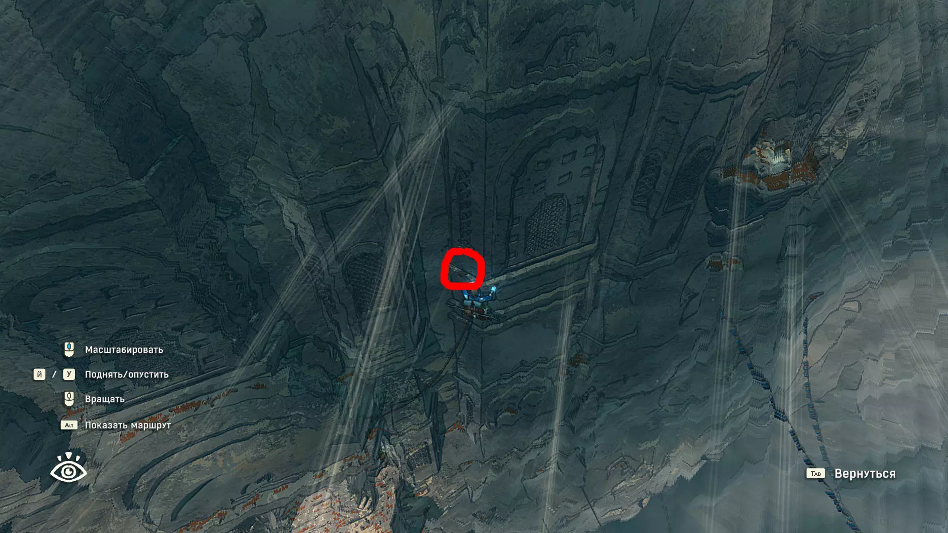 这好像是与马可的第四次相遇。 在这里可以最后一次完成成就Rukотворные звезды。 回归本源: 捕捉特殊的火蜥蜴 可以在带有钩子的第三座雕像所在的同一区域找到。只需前往裂缝的最左侧部分 (这里有对开发商上一款游戏Haven的致敬)