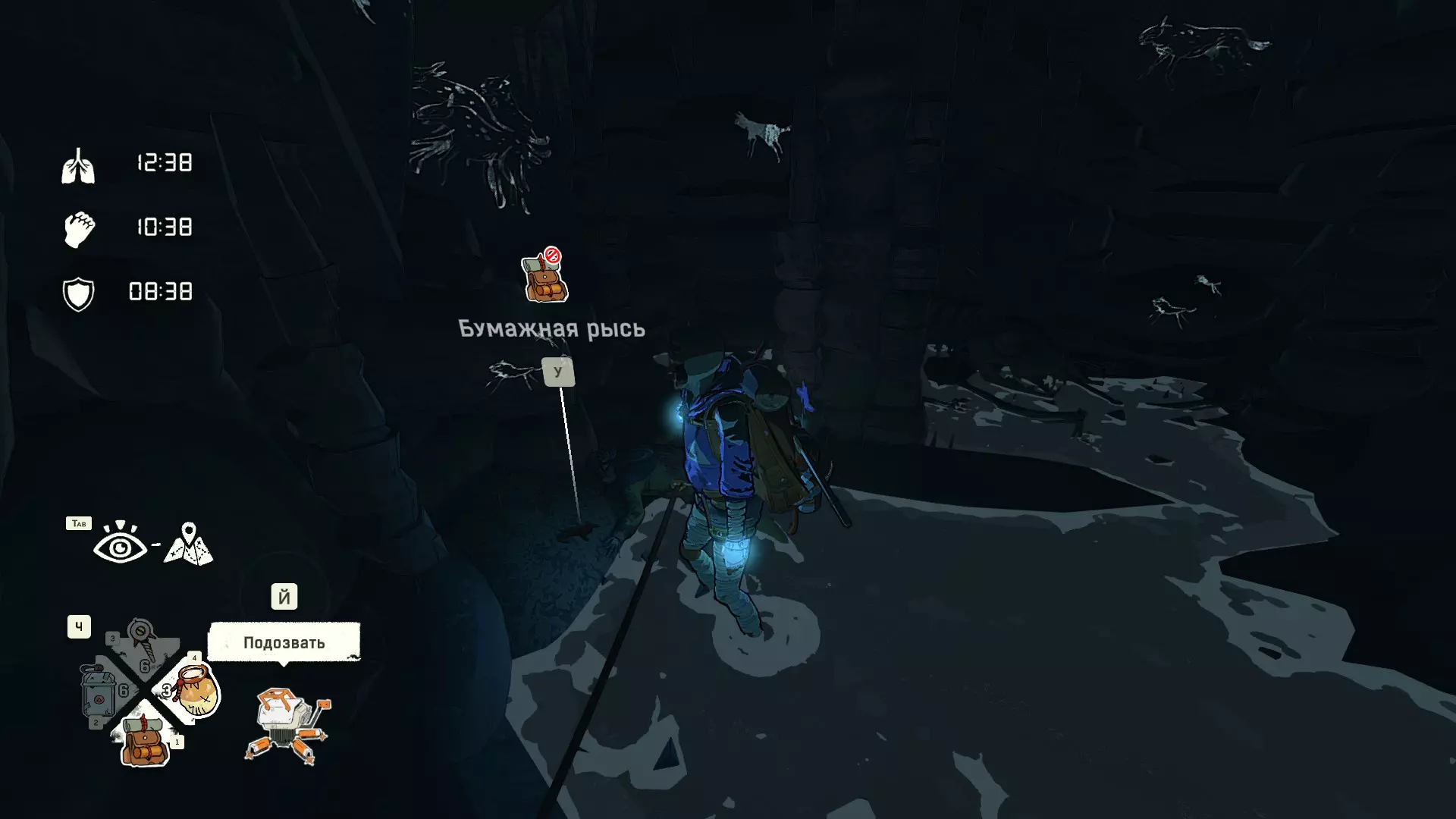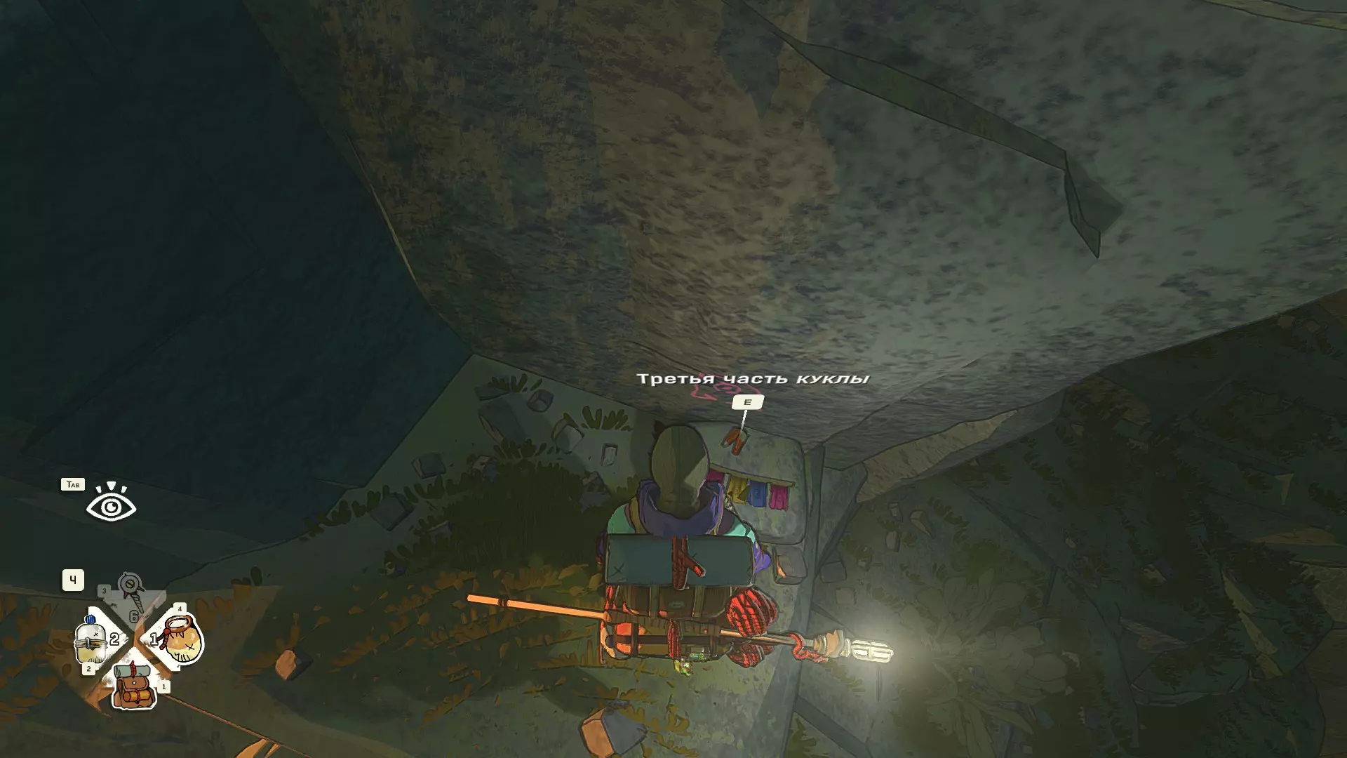 隐士: 找到第三个守卫处的穴居人钩子 位于获得破冰斧后的雕像中。在裂缝里。在雕像的头部 穴居人钩子可以挂在背包上(以便能够立即使用),方法是打开背包(按键1),将鼠标对准钩子并按下E键。这样最多可以挂3个穴居人钩子