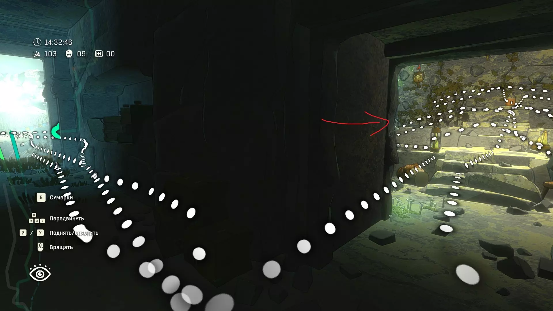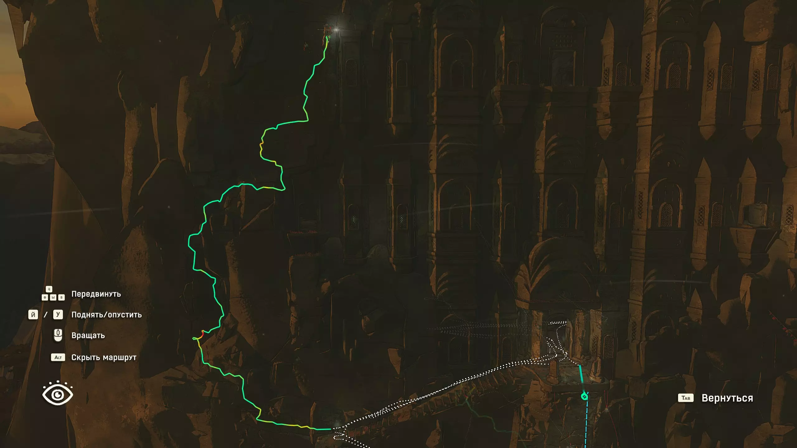 你的故事: 查看自己登顶的道路 在游戏结束后,或是在与马可一同向下走的“家”结局中,又或是在登上神峰后的主菜单(适用于任何结局)里,选择存档时可以查看自己的路线。只需按E键(俄语键盘按У键)向上飞即可。